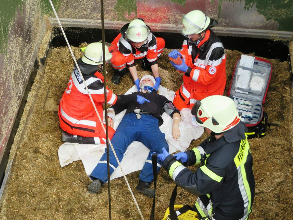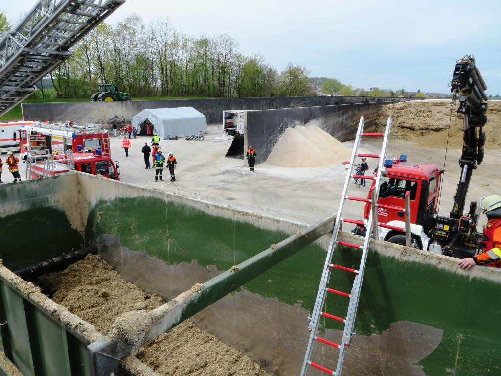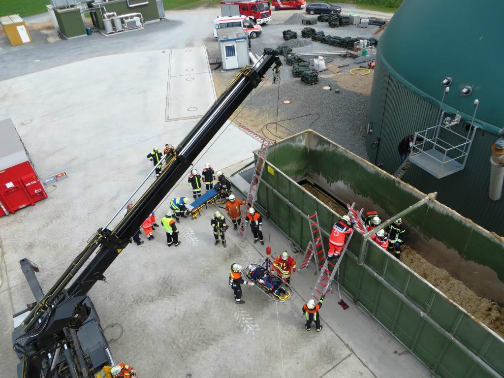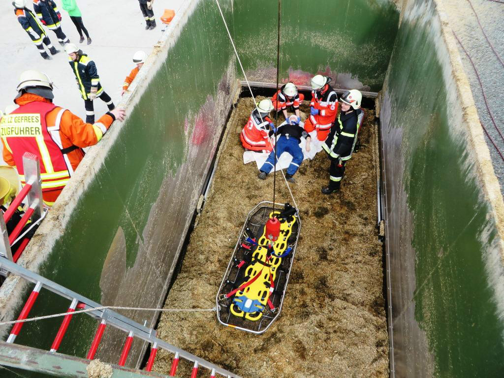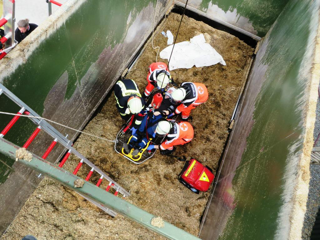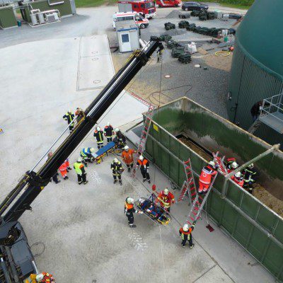 – Eine vermisste Person, welche im Silo verschüttet wurde, eine verletzte Person im exgeschützten Bereich der Biogasanlage und eine abgestürzte Person in einem Container vor der Biogasanlage.