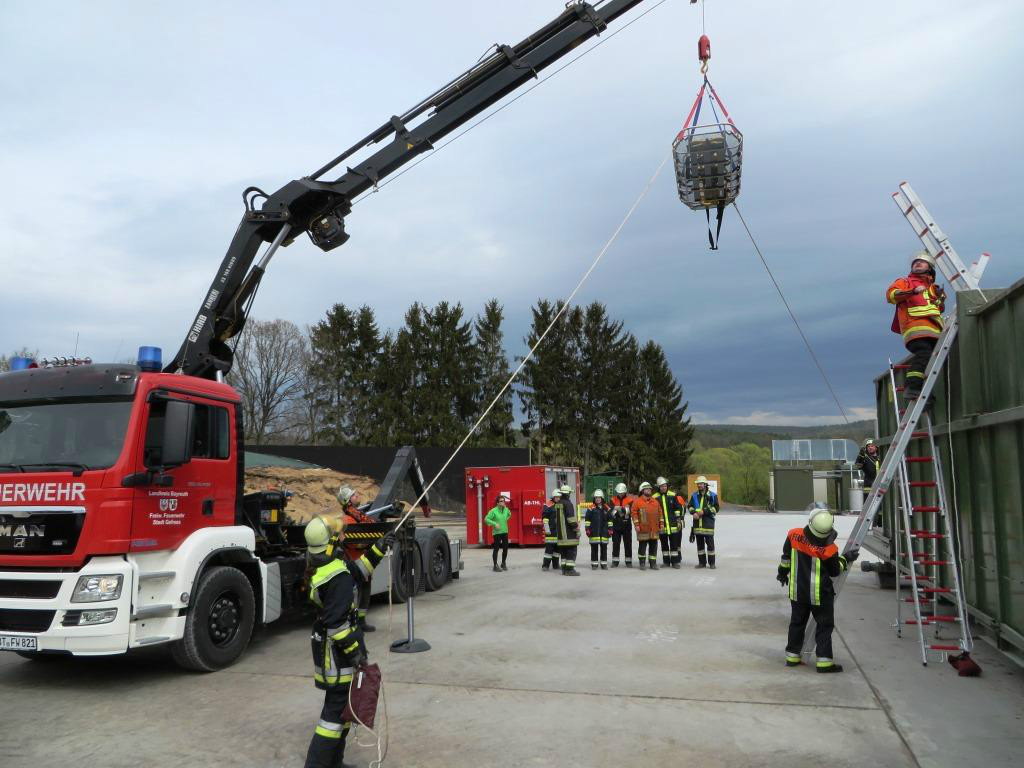 Herzlichen Dank für den gelungenen Tag gilt dem BRK Bayreuth, Dr. Stefan Eigl, der FF Altenplos, der FF Gefrees für die Bereitstellung der Sondergeräte wie Drehleiter und dem Wechsellader Kran mit dem Abrollbehälter THL und Familie Fischer für die Nutzung der Biogasanlage als Übungsobjekt.