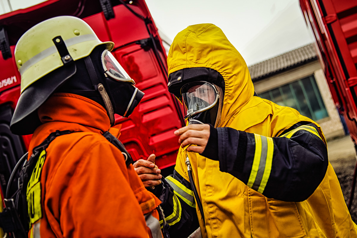 Da das Training in dem Brandübungscontainer nicht ungefährlich ist, erhielten die Teilnehmer eine detaillierte Sicherheitseinweisung. Zudem wurden bei jedem Teilnehmer der Zustand sowie der korrekten Sitz der persönlichen Schutzausrüstung geprüft.