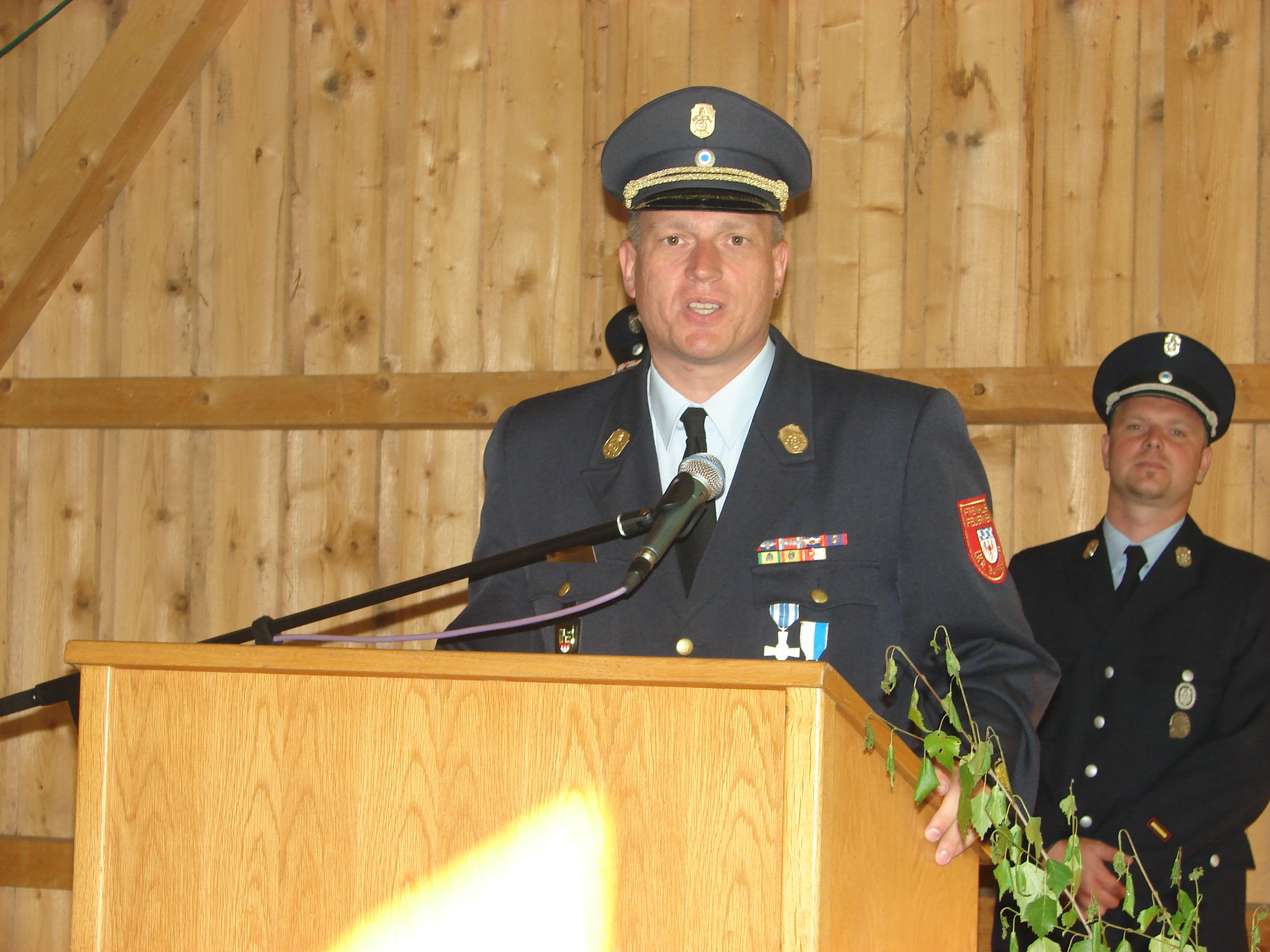 Kreisbrandinspektor Harald Schöberl überbrachte die Grüße der in Hannover bei der Interschutz befindeten Kreisbrandinspektorin Kerstin Schmidt und des Kreisbrandrates Hermann Schreck, mit dem Wunsch allseits unfallfrei zu fahren und immer gesund von den Einsätzen Heim zu kehren. Diesen Wünschen schloss er sich an und bedankte sich für das Engagement der Kameradinnen und der Kameraden der Feuerwehr Tressau, aber auch bei der Gemeinde Kirchpingarten, die die anderen Wehren der Gemeinde mit neuen Fahrzeugen und neuen Gerätehäusern ausgestattet hat, bzw. noch dabei ist.