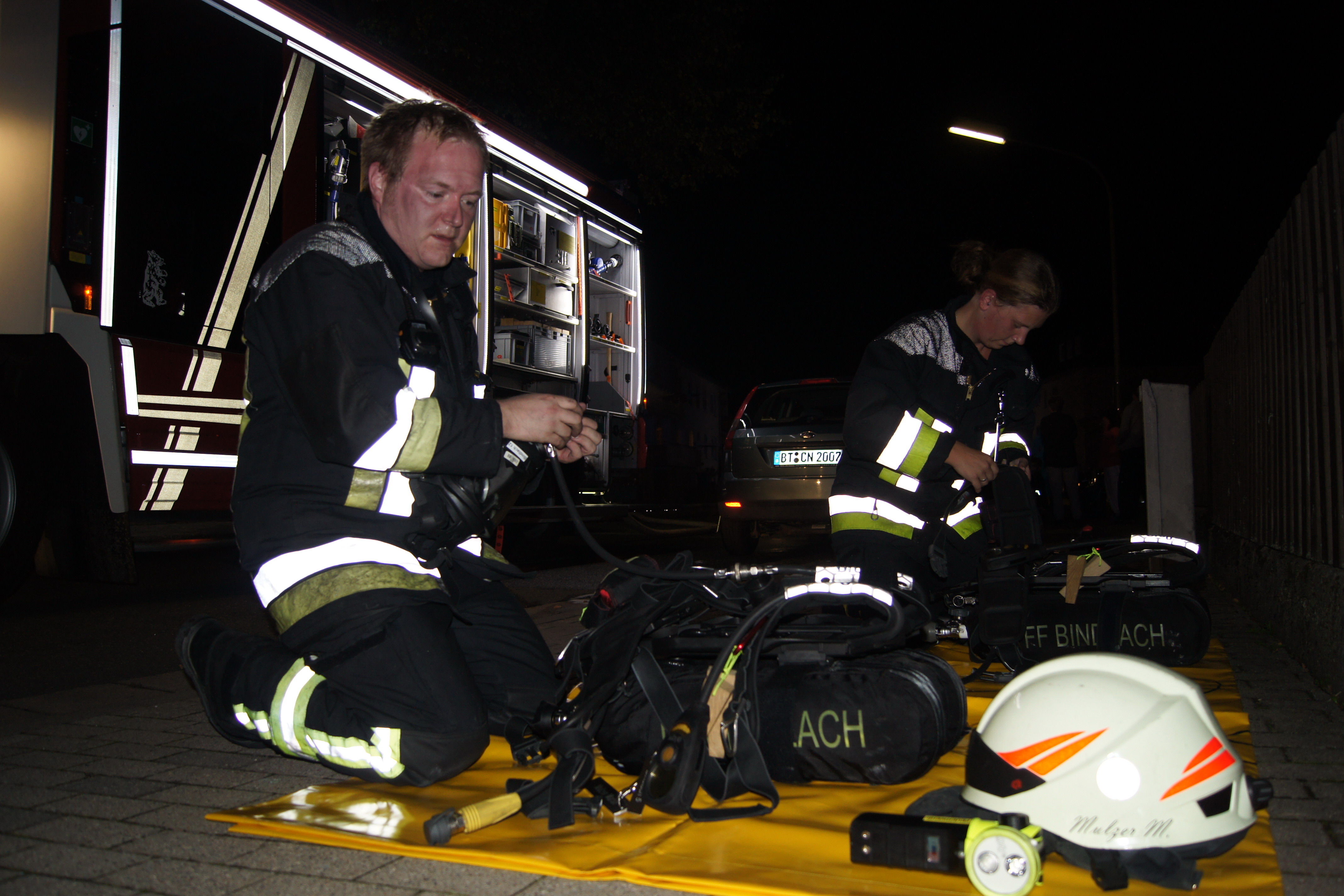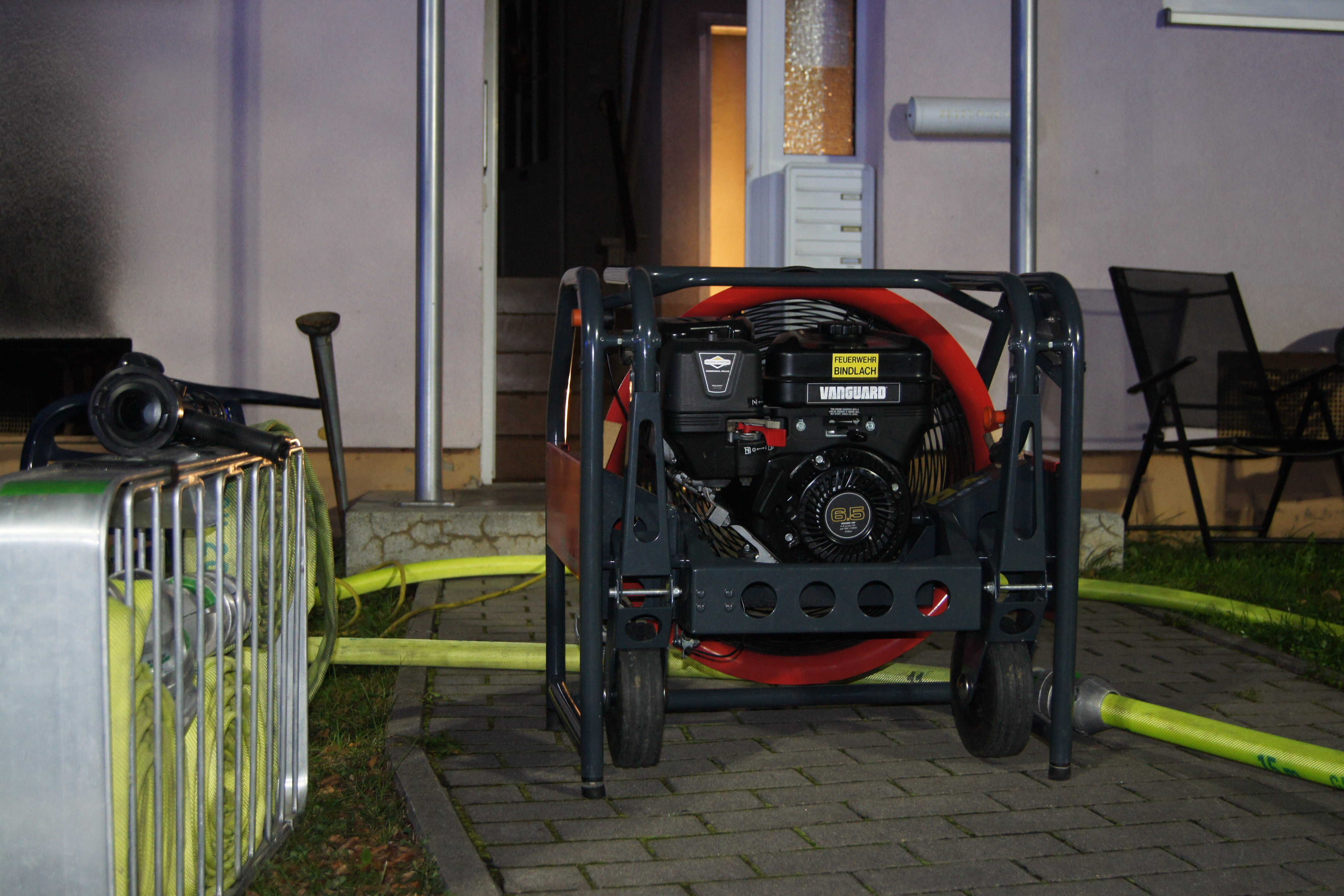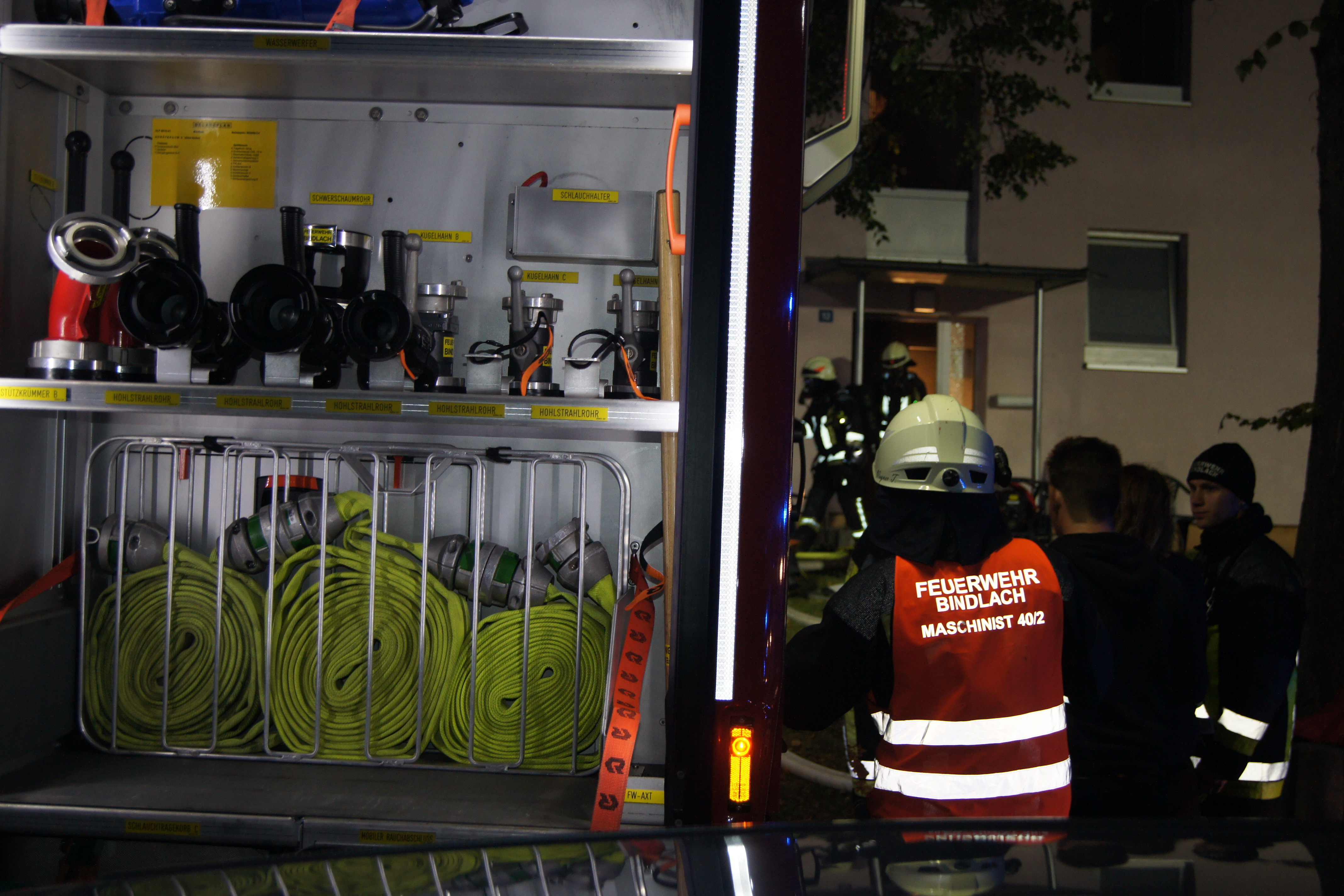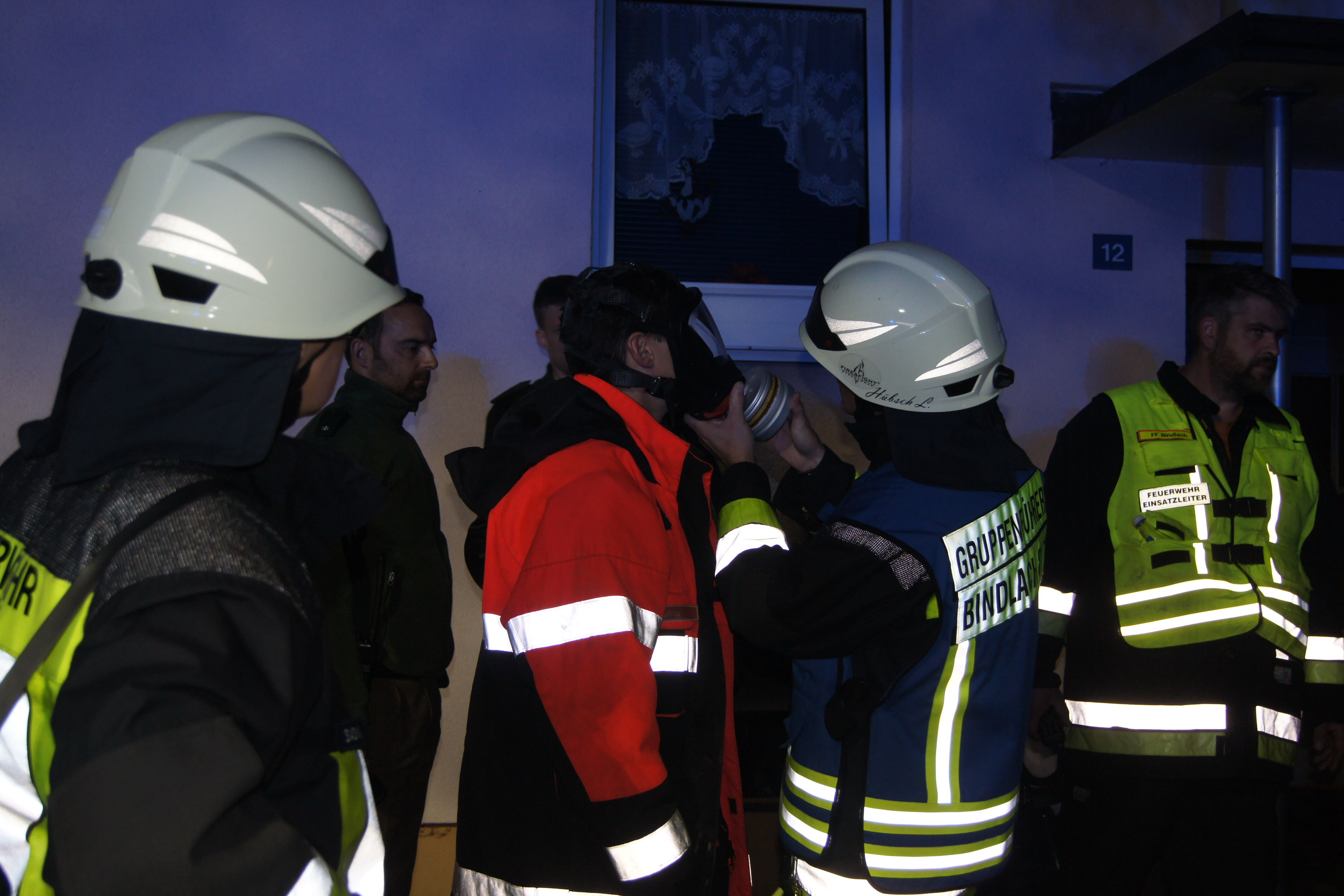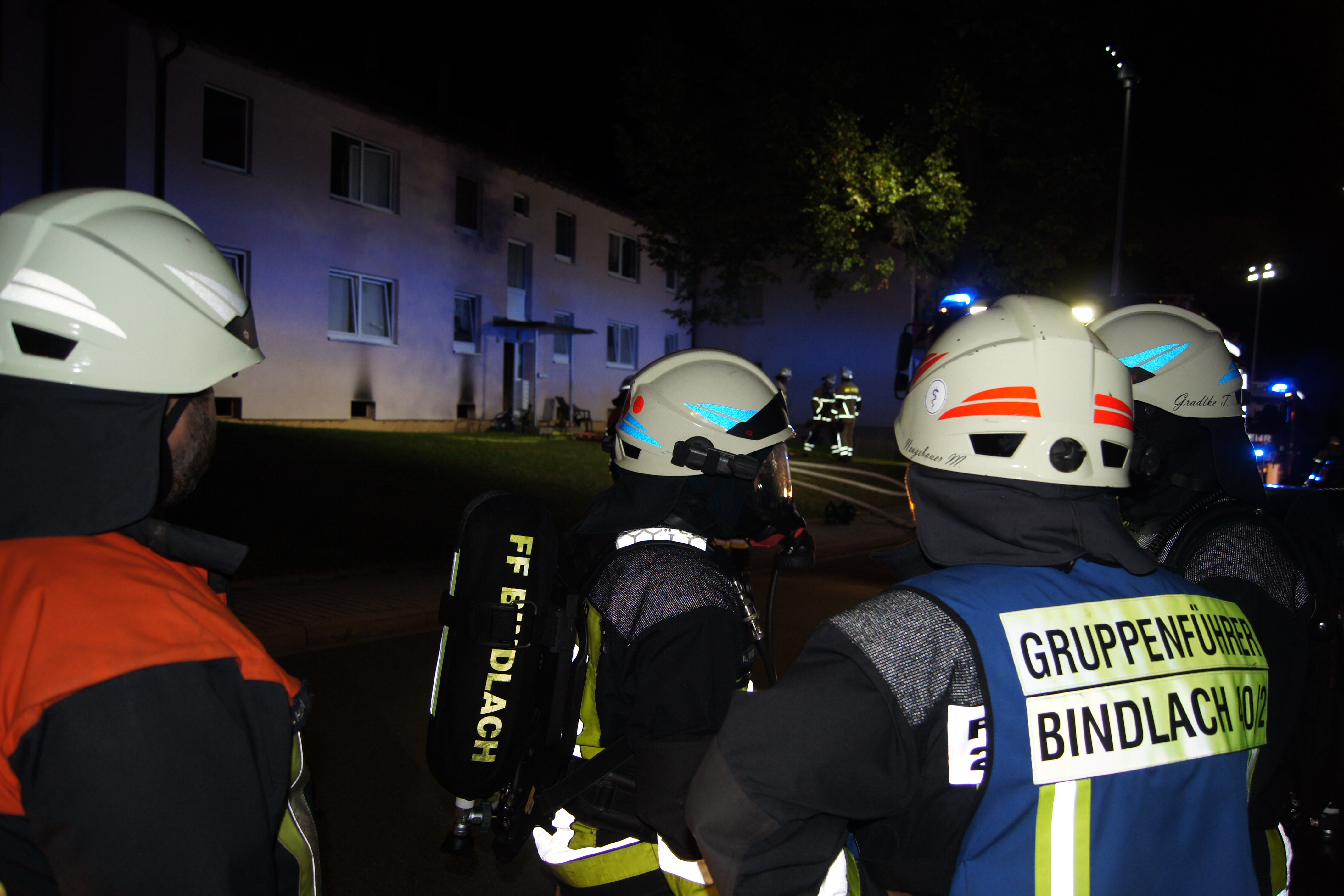 Die ebenfalls alarmierten Feuerwehren der Ständigen Wache Bayreuth und Crottendorf konnten nach kurzer Zeit die Einsatzstelle verlassen, für die Feuerwehr Bindlach endete der Einsatz erst nach über drei Stunden. Neben Rettungsdienst und Polizei machte sich Bürgermeister Gerald Kolb ein Bild von der Lage vor Ort. Die Bewohner konnten vorerst nicht in ihre Wohnungen zurückkehren. Feuerwehrleute holten den besorgten Mietern unter Atemschutz wichtige persönliche Gegenstände wie Medikamente und Kleidung aus den verrußten Wohnungen, ehe das Haus versperrt wurde.