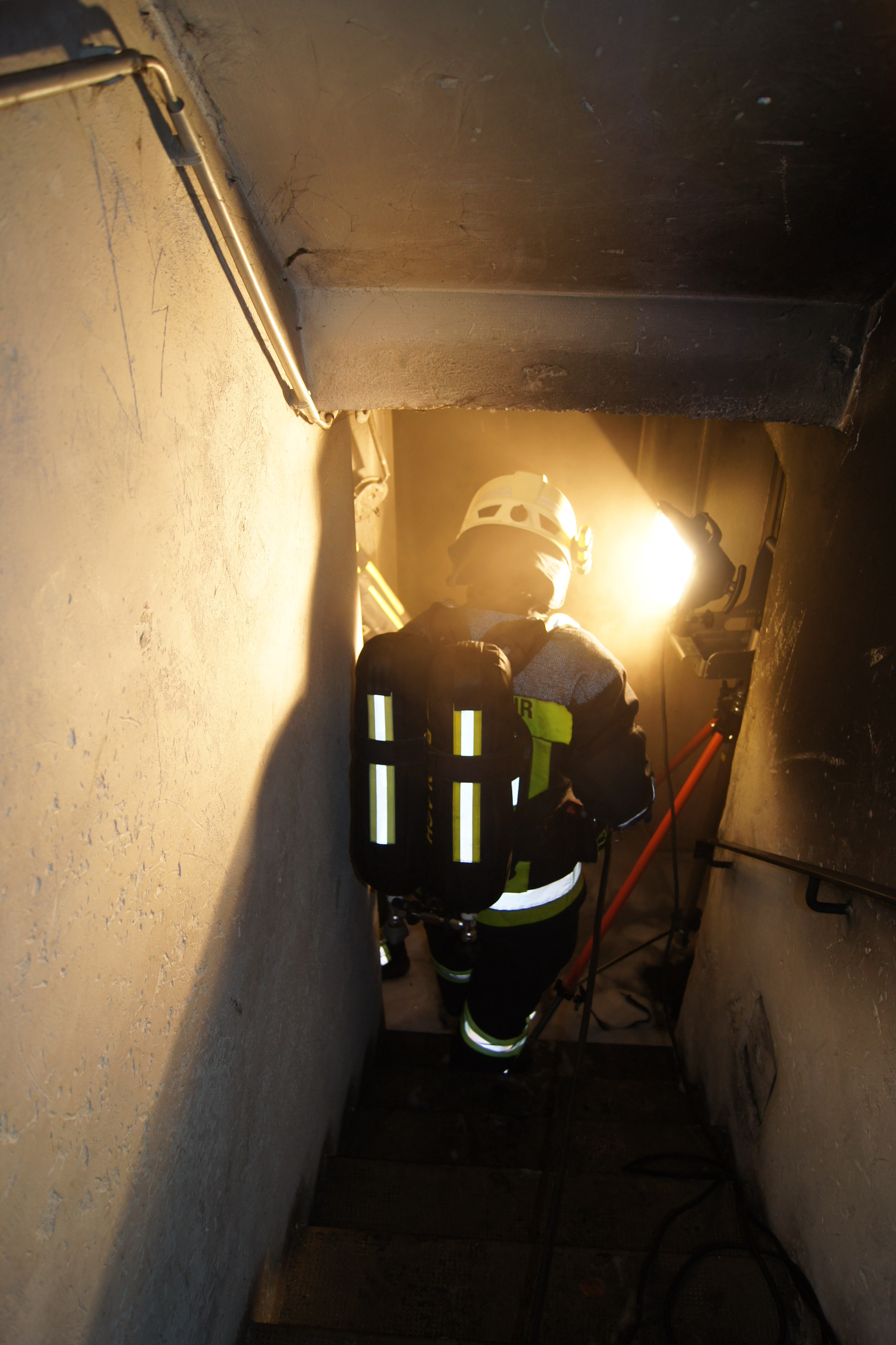 Es war bereits der 99. Einsatz im Jahr 2015 für die Freiwillige Feuerwehr Bindlach, als diese am 16.09. um 03.27 Uhr zu einem Kellerbrand in die Stöckigstraße alarmiert wurde. Nur dem raschen und umsichtigen Eingreifen der Helfer ist es zu verdanken, dass ein Wohnhausbrand verhindert werden konnte. Ein Bewohner des Mietshauses hatte zuvor bereits alle Nachbarn alarmiert, die sofort ihre Wohnungen verließen. Eine Bewohnerin wurde von der Feuerwehr aus dem Haus gebracht und dem Rettungsdienst übergeben. Sie kam vorsorglich ins Krankenhaus. Auf das Feuer aufmerksam gemacht wurden einige Bewohner durch einen im Treppenhaus angebrachten Rauchmelder, womit sich einmal mehr die enorme Wichtigkeit dieser technischen Vorrichtung bestätigt hat.