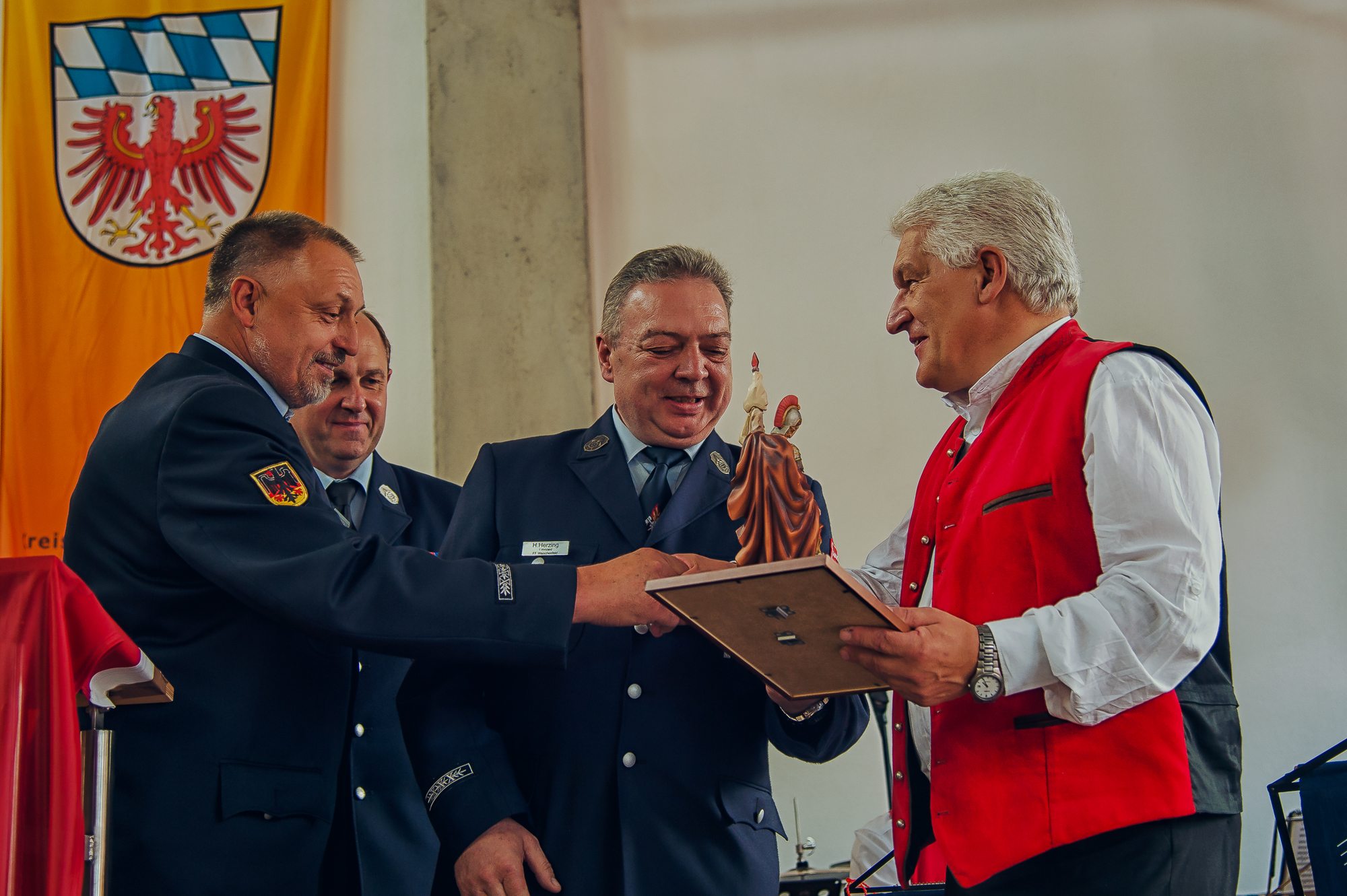 Kreisbrandrat Hermann Schreck gratulierte allen Gästen, Mitbürgern und der gesamten Region zu dem neuen ehrenamtlichen Leistungszentrum. Zufriedenheit, Stolz, Anerkennung und Glück seien an diesem denkwürdigen Tag förmlich spürbar. Die engagierte Feuerwehr Waischenfeld stelle mit ihrer absolut zuverlässigen Führungsmannschaft einen treuen Partner dar. Mit einer perfekten Kombination aus junger, motivierter und älterer, erfahrener Mannschaft werde man sich auch der zukunftsweisenden Anschaffung eines überörtlich relevanten Wechselladerfahrzeugs und drei Abrollbehältern stellen – auch dies eine weitere bedeutsame Investition in die Sicherheit.