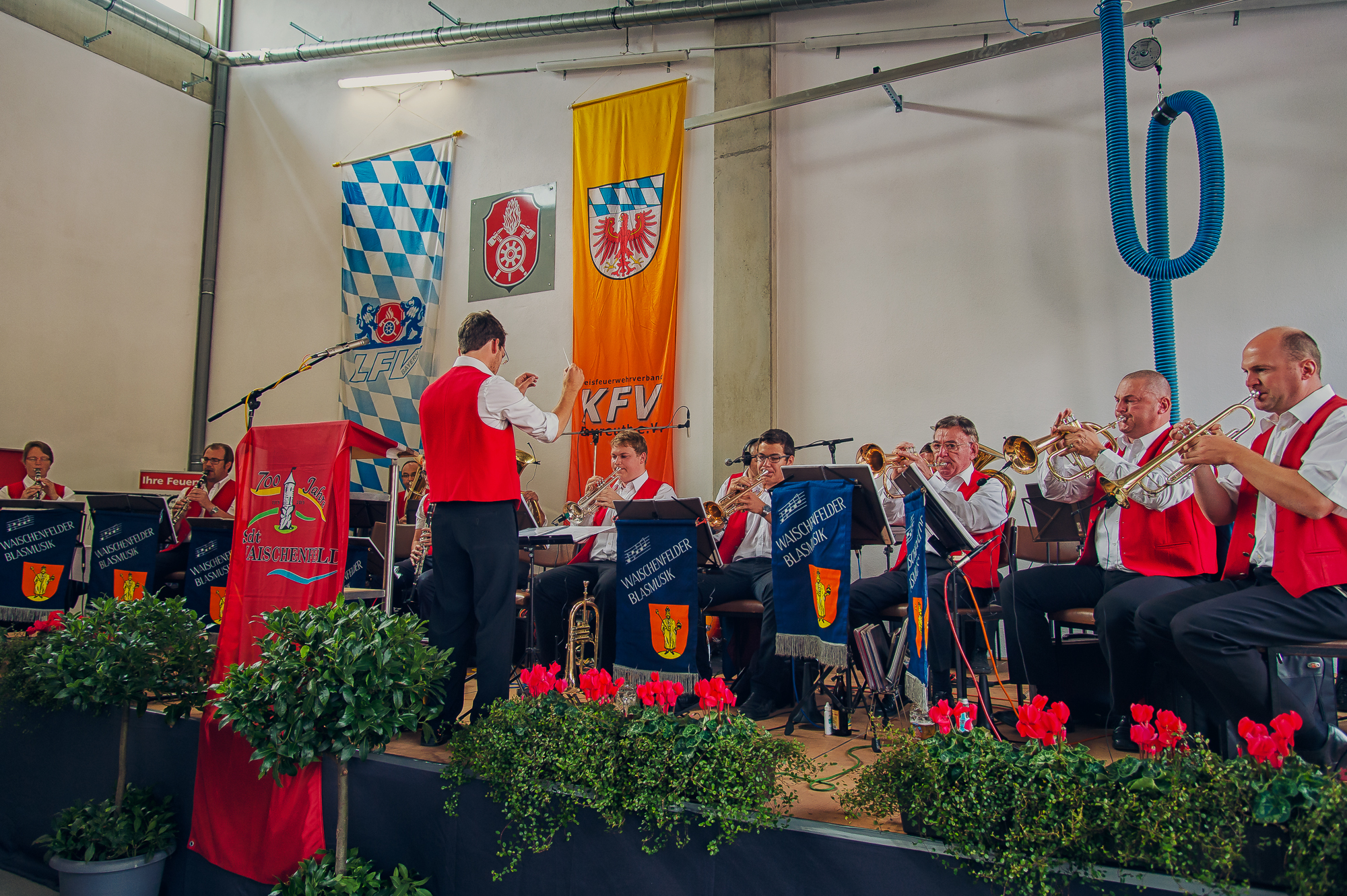 Die Waischenfelder Blasmusik begrüßte die große Gästezahl in der neun Stellplätze fassenden Fahrzeughalle musikalisch.