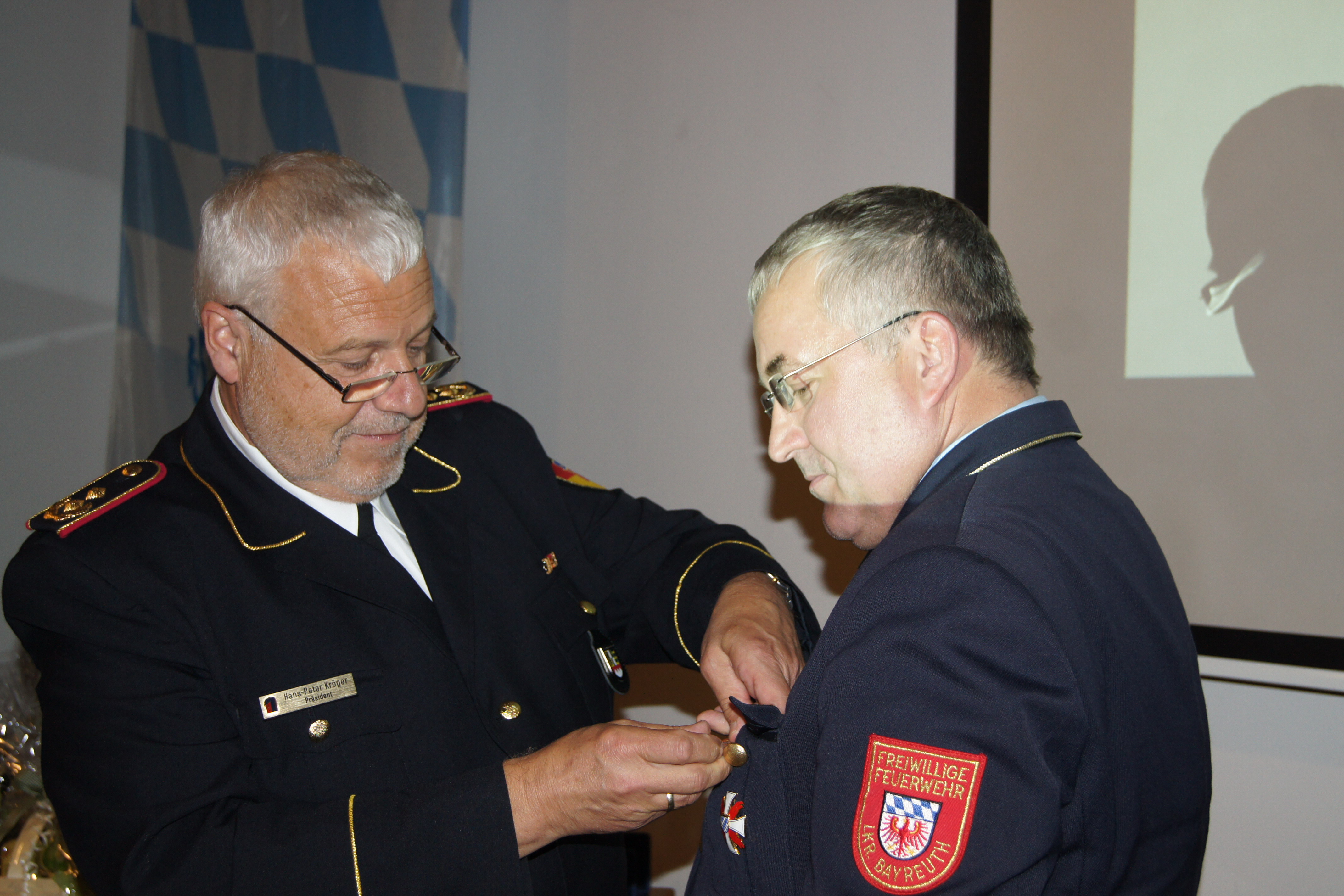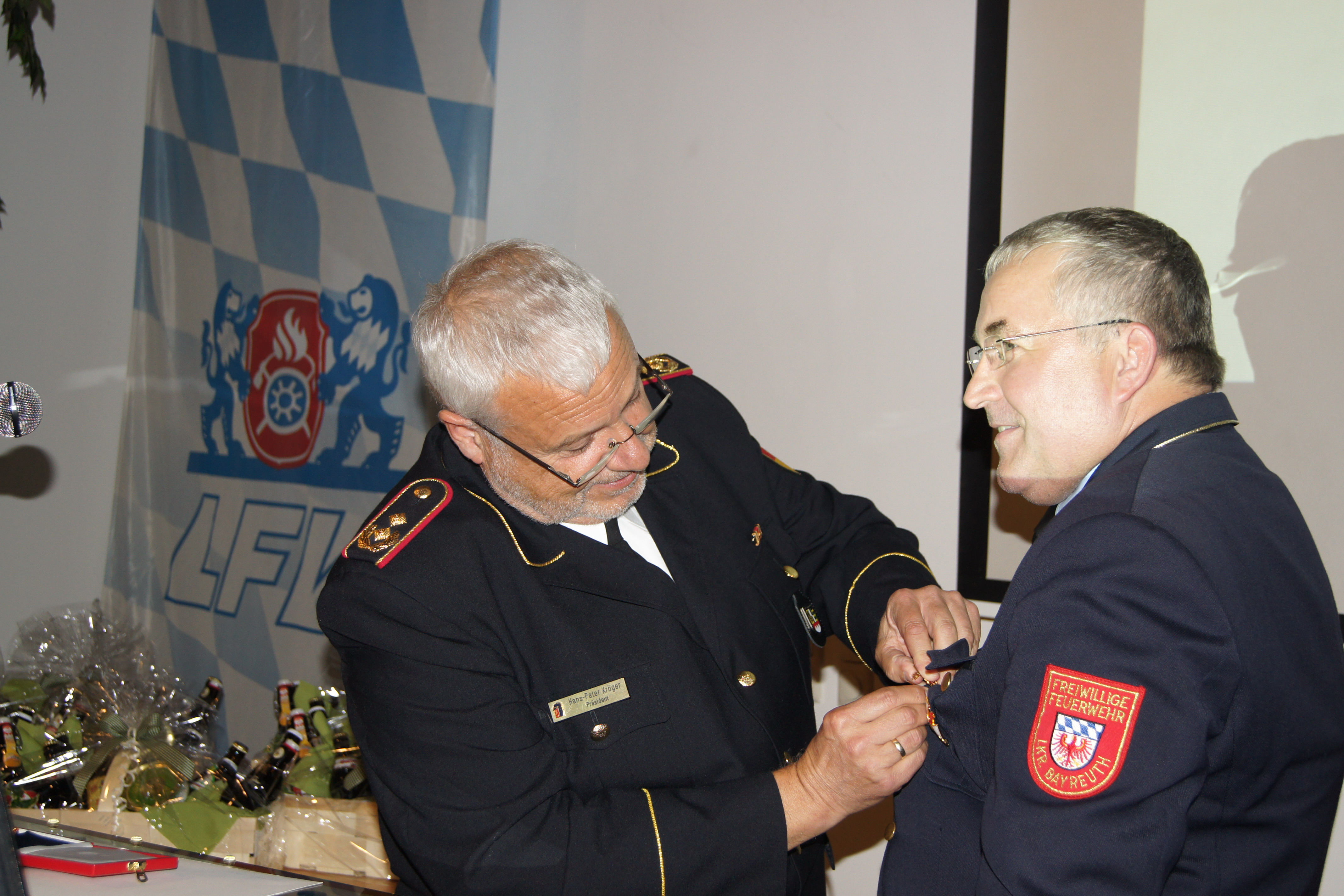 Ehre, wem Ehre gebührt: die höchste Auszeichnung des Deutschen Feuerwehrverbandes, das Feuerwehrehrenkreuz in Gold, hat Kreisbrandrat Hermann Schreck im Rahmen der Bezirksverbandsversammlung am 12.09.2015 in Bamberg erhalten. Hans-Peter Kröger, Präsident des Deutschen Verbandes, nahm die besondere Ehrung im Beisein des Bayerischen Verbandsvorsitzenden Alfons Weinzierl, zahlreicher Ehrengäste und oberfränkischer Führungskräfte vor.
