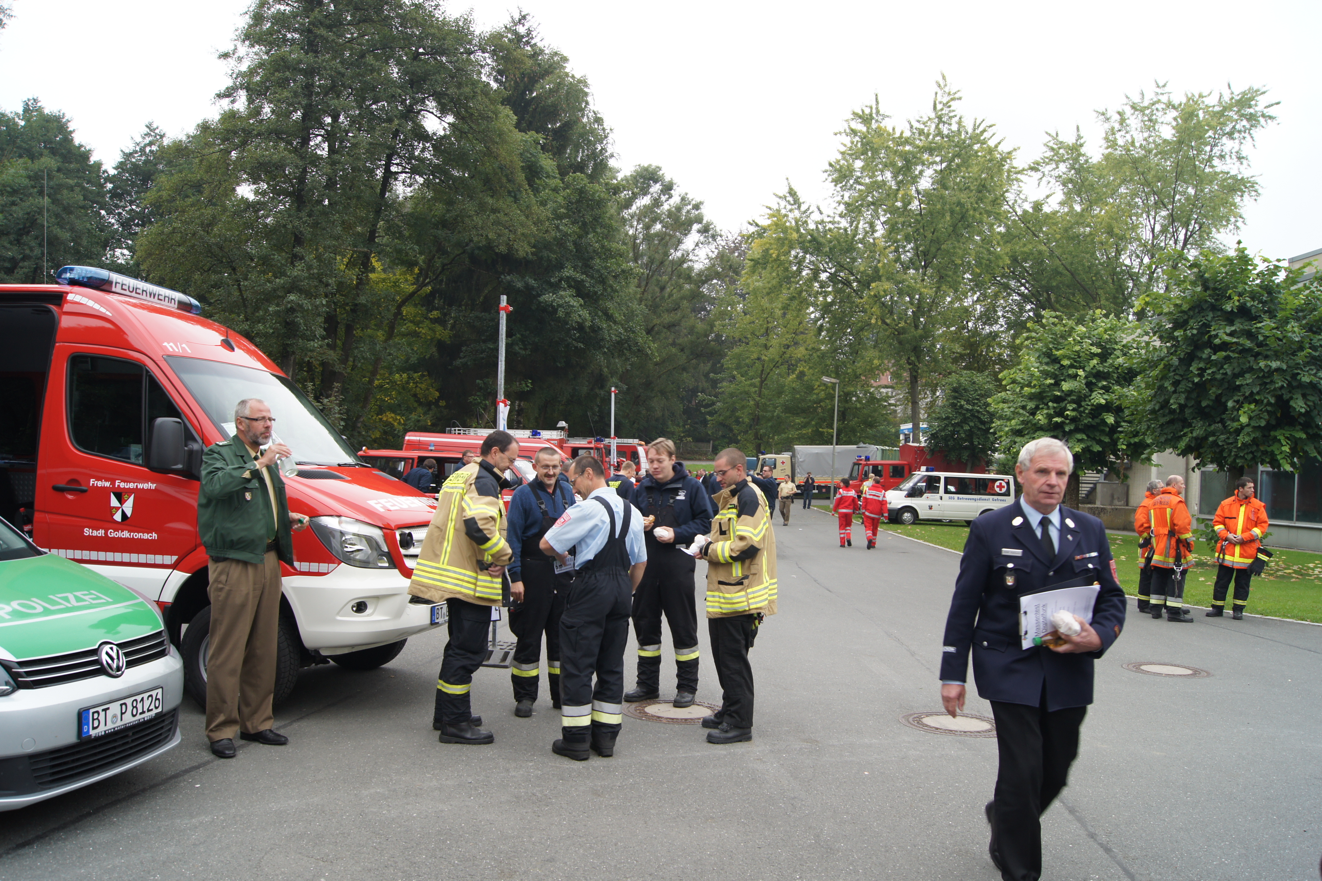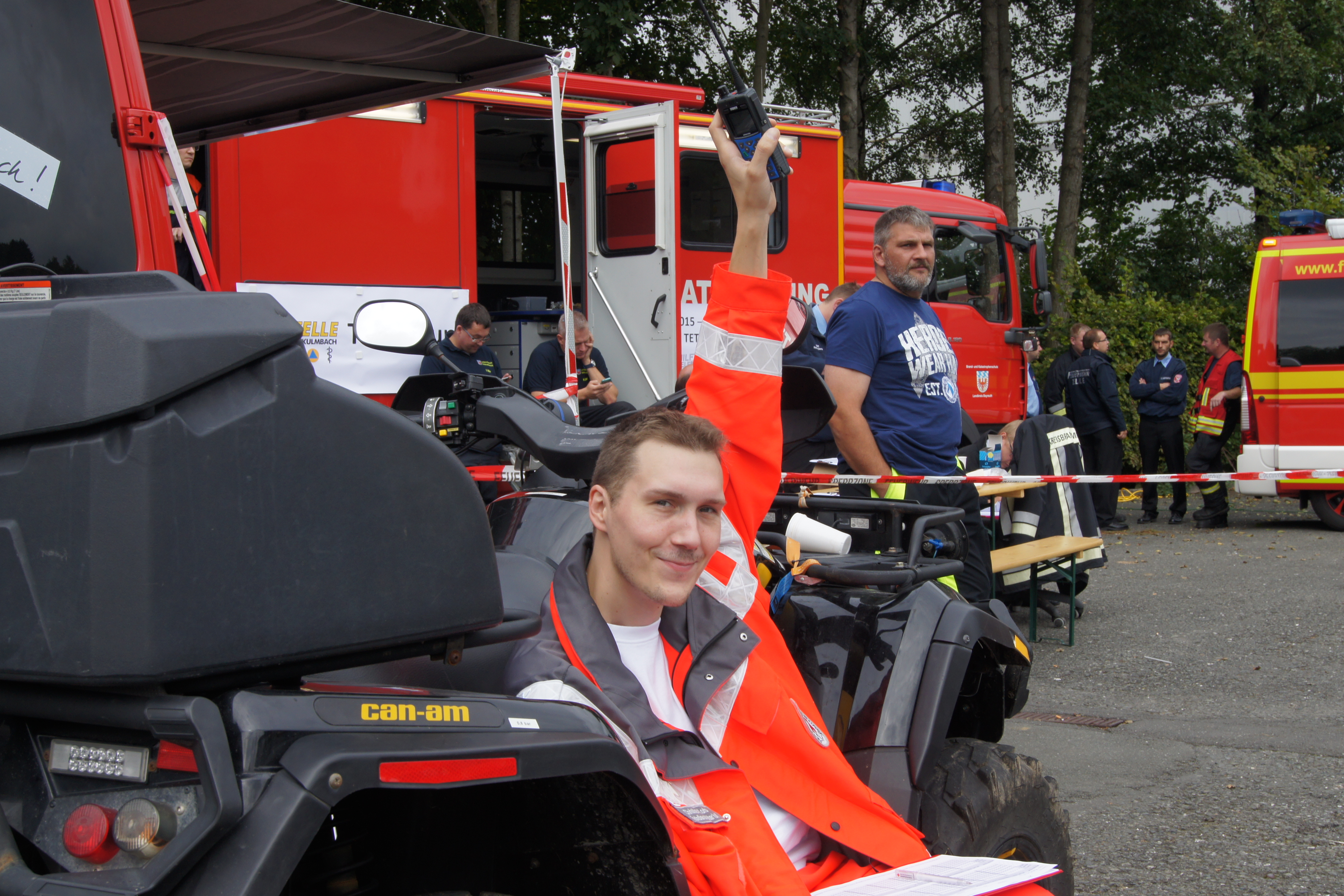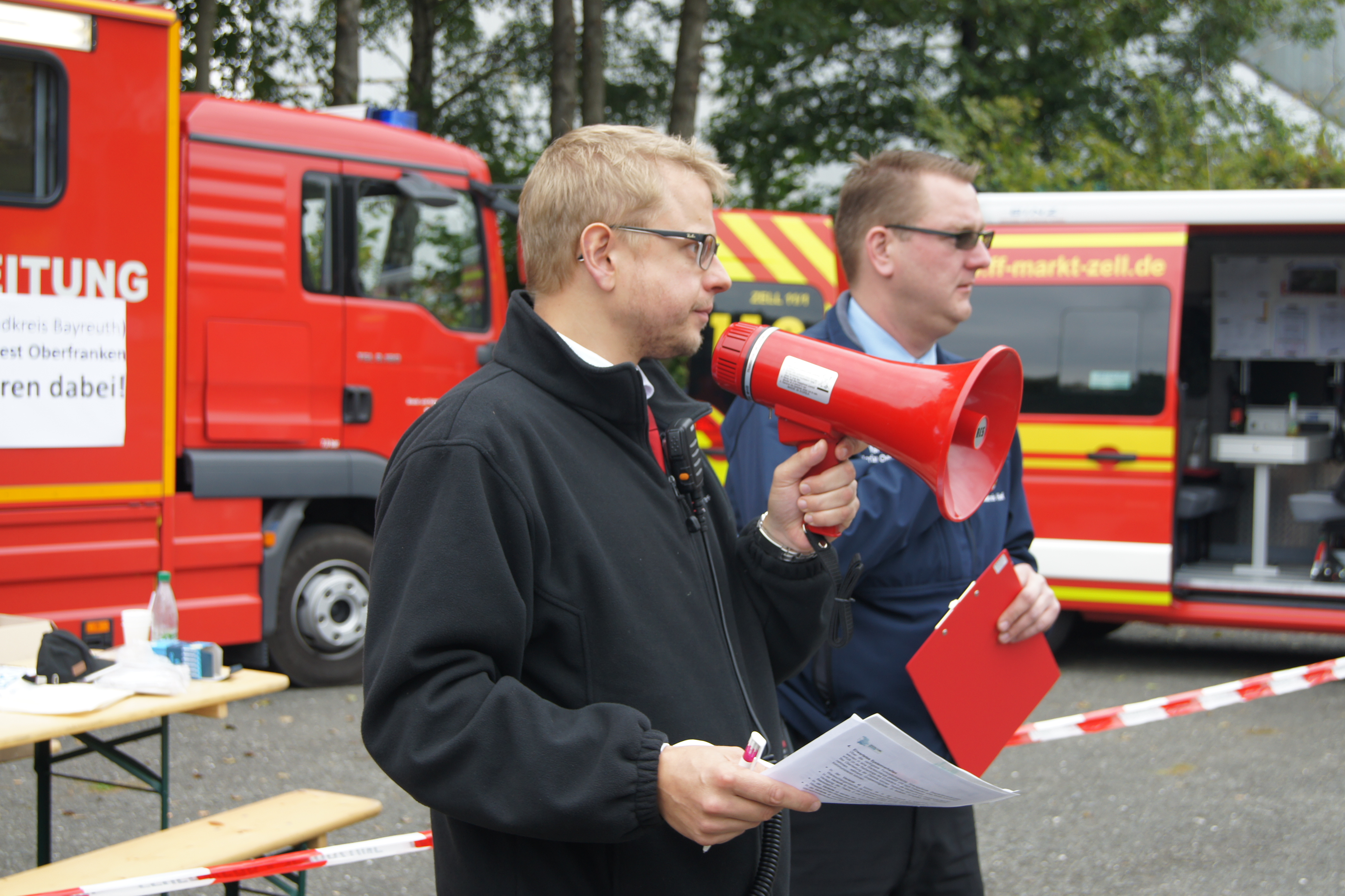 Rund 250 Einsatzkräfte verschiedener Hilfsorganisationen und Sicherheitsbehörden aus ganz Oberfranken sind am Samstag, den 26.09.2015 am Festplatz in Gefrees zusammen gekommen, um das neue Digitalfunknetz intensiv zu testen. Der so genannte Massentest war der einzige für ganz Oberfranken. Dabei wurden die Belastbarkeit und die Leistungsfähigkeit des Netzes getestet. Hierfür produzierten 57 Einsatzfahrzeuge auf der nahegelegenen BAB 9 zwischen den Anschlussstellen Bindlacher Berg und Hof-West ein außergewöhnliches Funkverkehrsaufkommen. Begleitet wurde der Test von Mitarbeitern des Bayerischen Innenministeriums, die unter anderem mit einem speziellen Messfahrzeug die Fahrten zwischen den Anschlussstellen begleiteten.