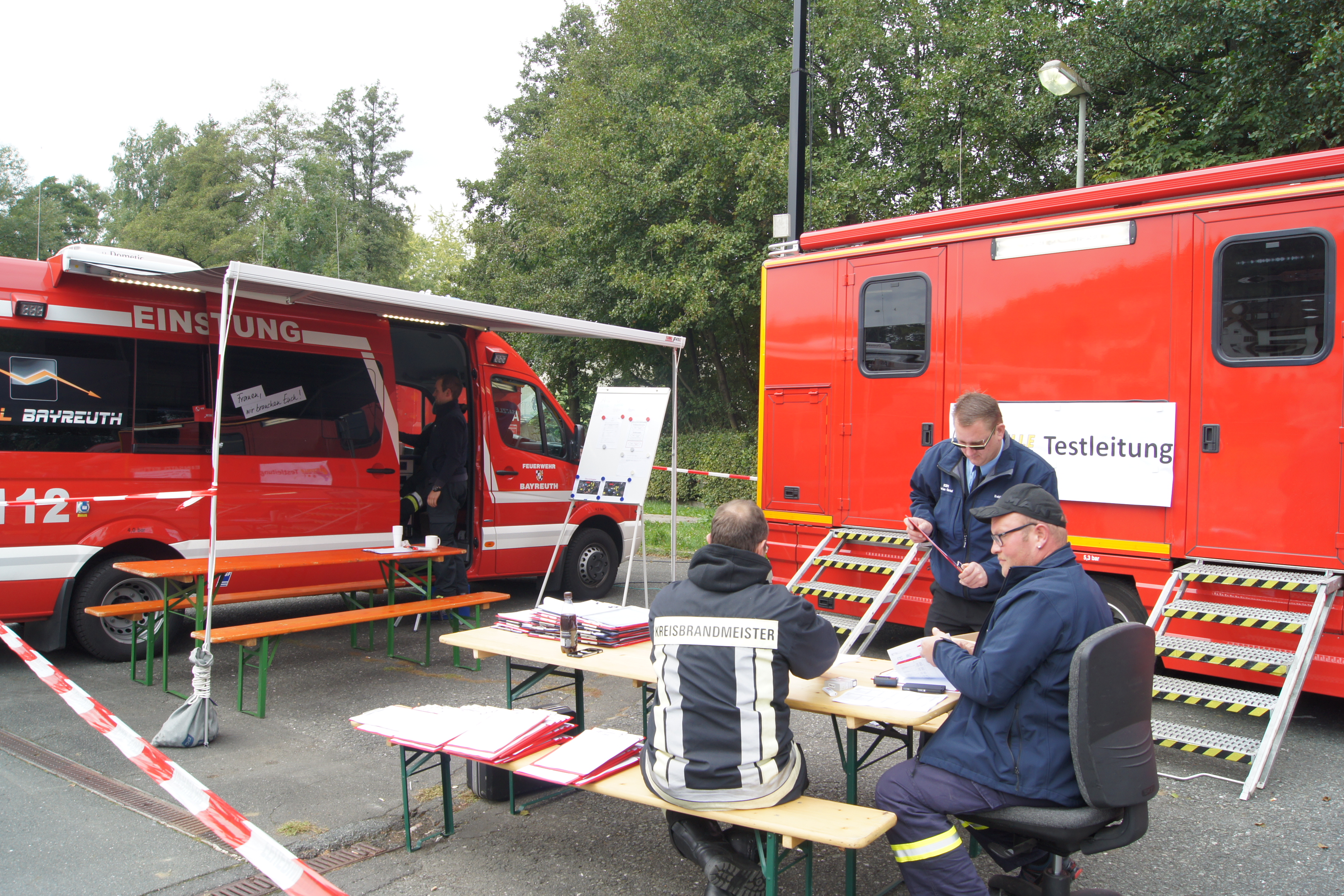 Die Arbeitsgruppe Digitalfunk im Leitstellenbereich Bayreuth Kulmbach bedankt sich herzlich bei allen, die zum erfolgreichen Gelingen des Massentests beigetragen haben, allen voran der Stadt Gefrees und Kommandanten Manfred Horn mit seiner Mannschaft sowie der BRK-Bereitschaft für die Verpflegung der Teilnehmer.