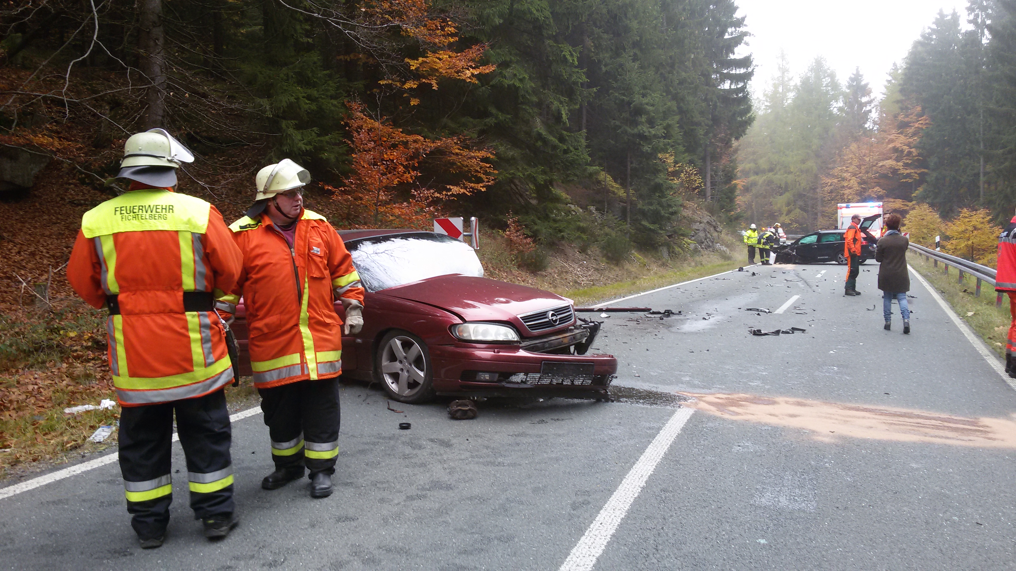 Zu einem schweren Verkehrsunfall wurden die Freiwilligen Feuerwehren Fichtelberg, Neubau und Tröstau am späten Vormittag des 29.10.2015 alarmiert. Auf der Staatsstraße 2181 zwischen Fichtelberg und der Bundesstraße B303 waren zwei PKW´s frontal zusammen gestoßen. Eine zunächst im Fahrzeug eingeklemmte Person konnte durch Ersthelfer über die Beifahrertür befreit und von den Helfern vor Ort Fichtelberg ( HvO ) bis zum Eintreffen des Rettungsdienstes versorgt werden. Eine zweite, leichter verletzte Person wurde ebenfalls dem Rettungsdienst übergeben.