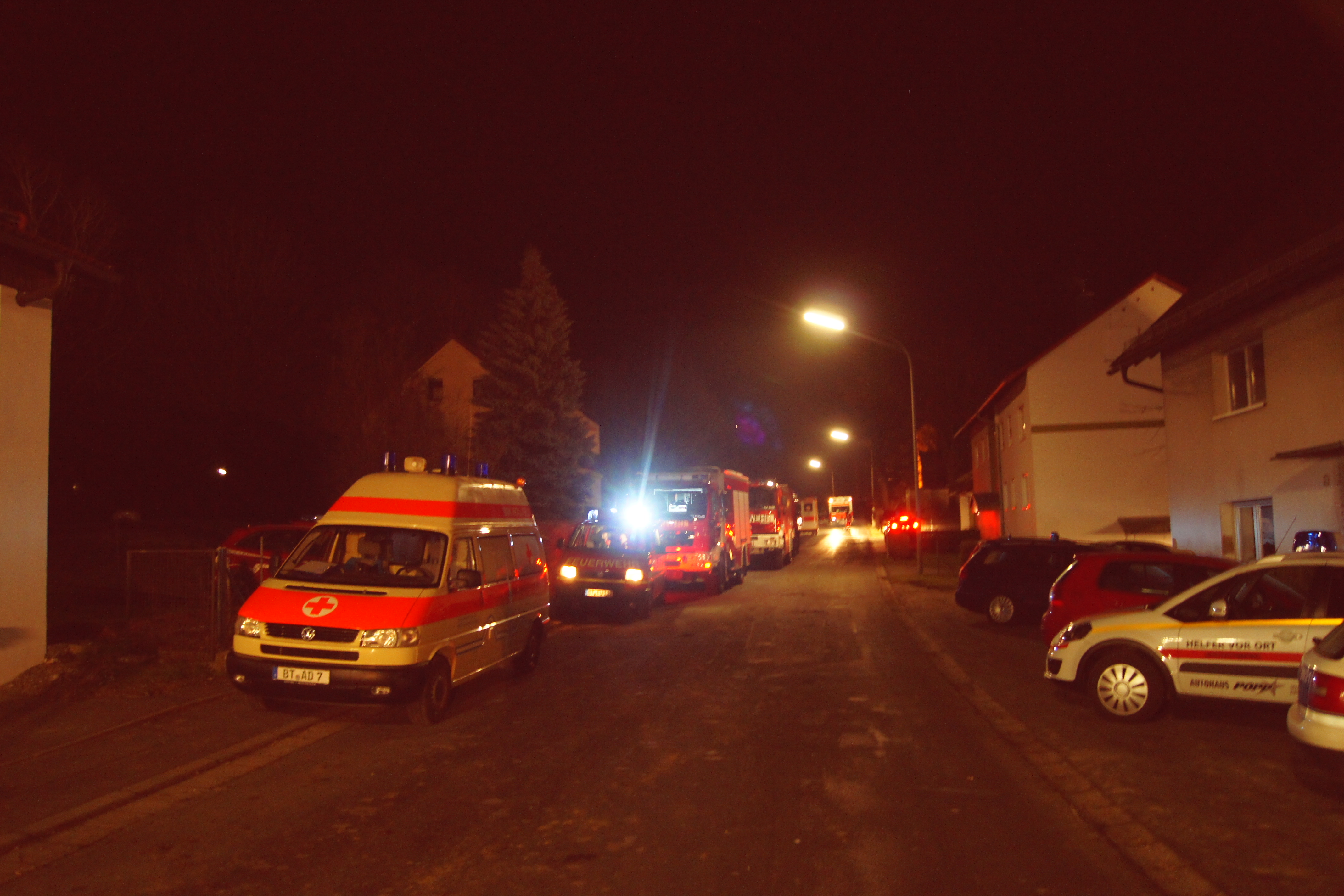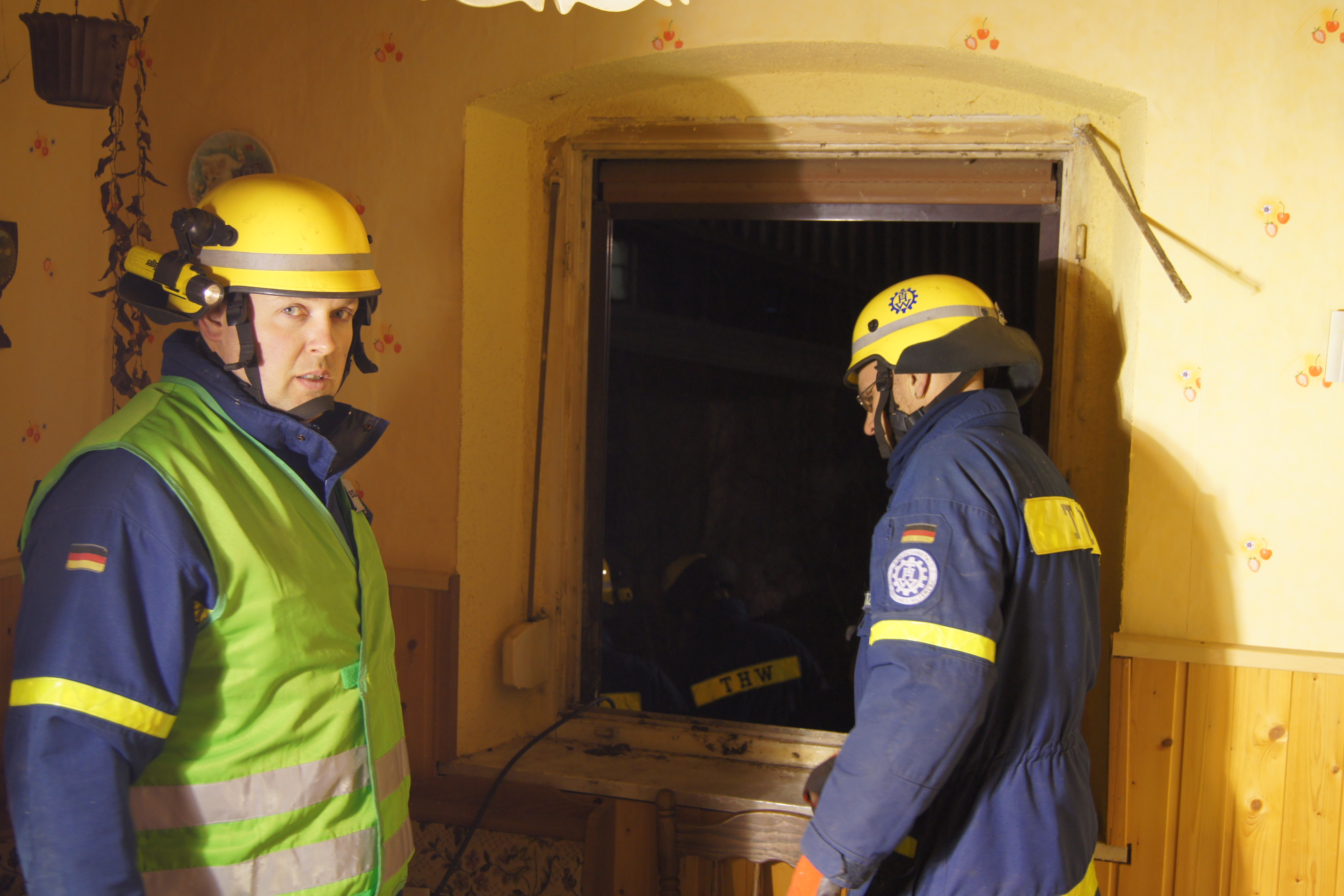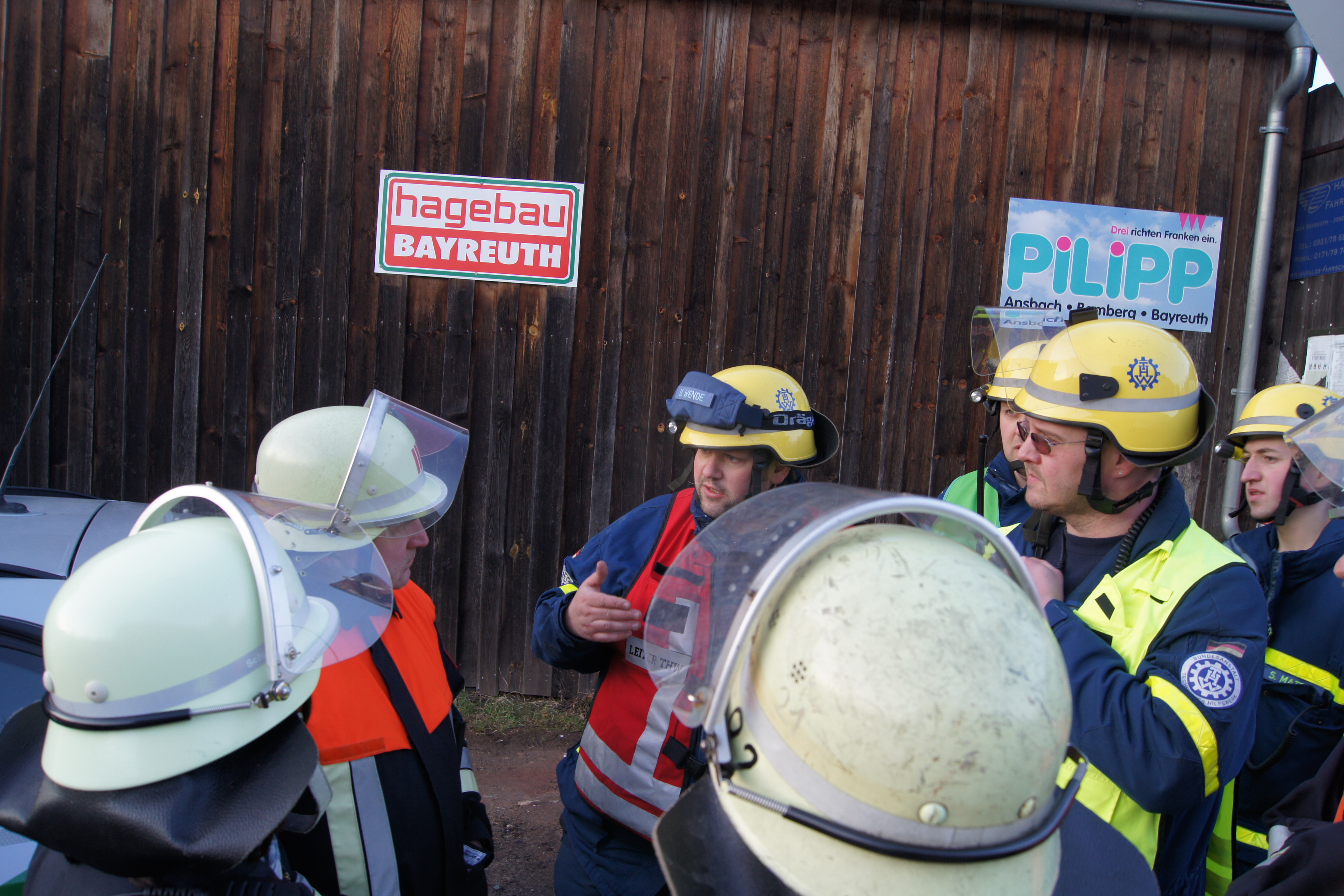 Ein äußerst aufwändiger Einsatz beschäftigte die Helfer von Feuerwehr, Technischem Hilfswerk und Bayerischen Roten Kreuz am Samstag, 27.02.2016. Kurz vor 15:00 Uhr wurden die Einheiten zu einem Wohnhaus in der Weidenberger Birkenstraße mit dem Alarmstichwort „Einsturz Haus / Gebäudeeinsturz“ alarmiert. Dem vorausgegangenen Notruf der Bewohner zufolge war es im Vorfeld zu einer folgenschweren Verpuffung bzw. Exploxion in dem Gebäude gekommen, bei dem eine Person leicht verletzt wurde.