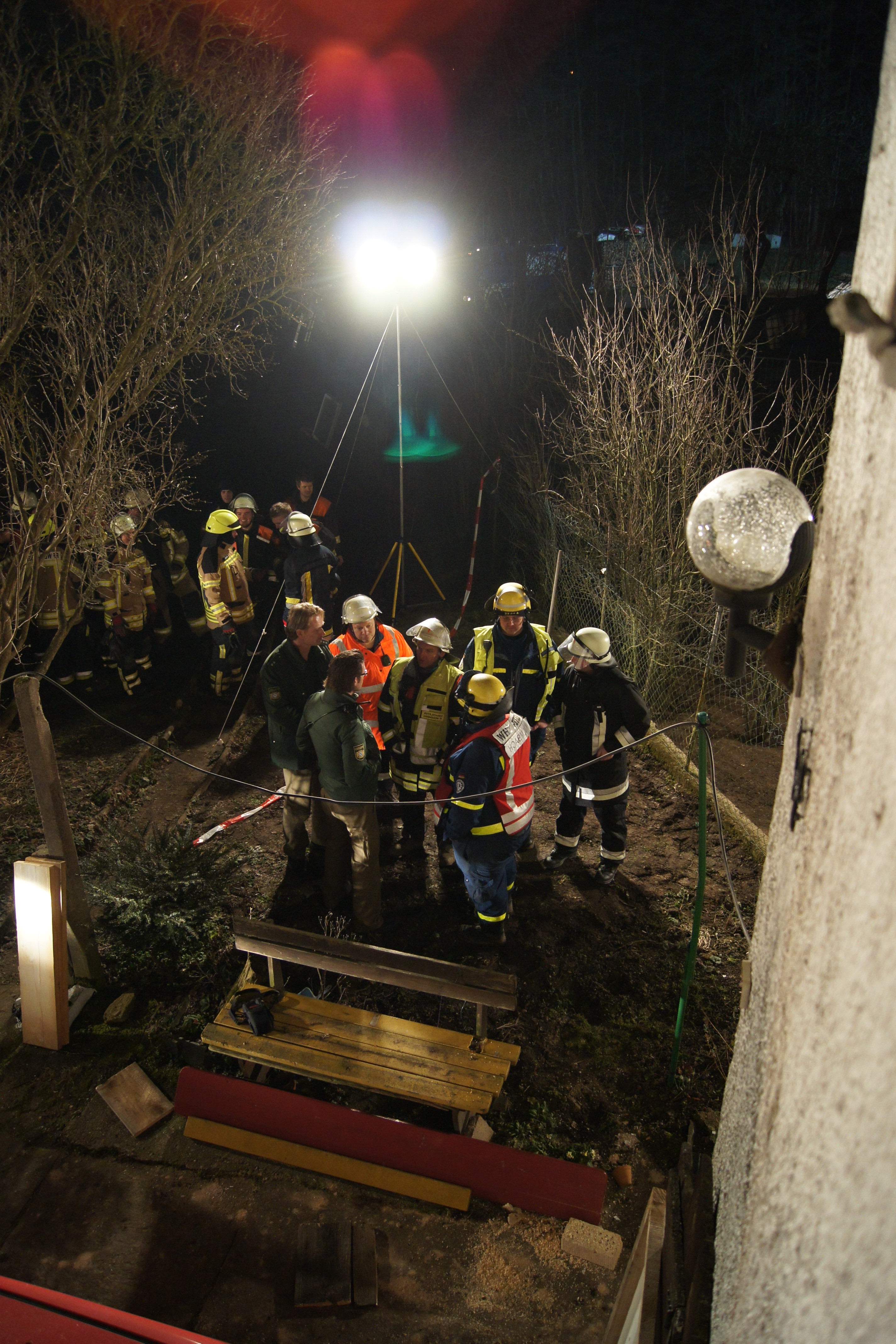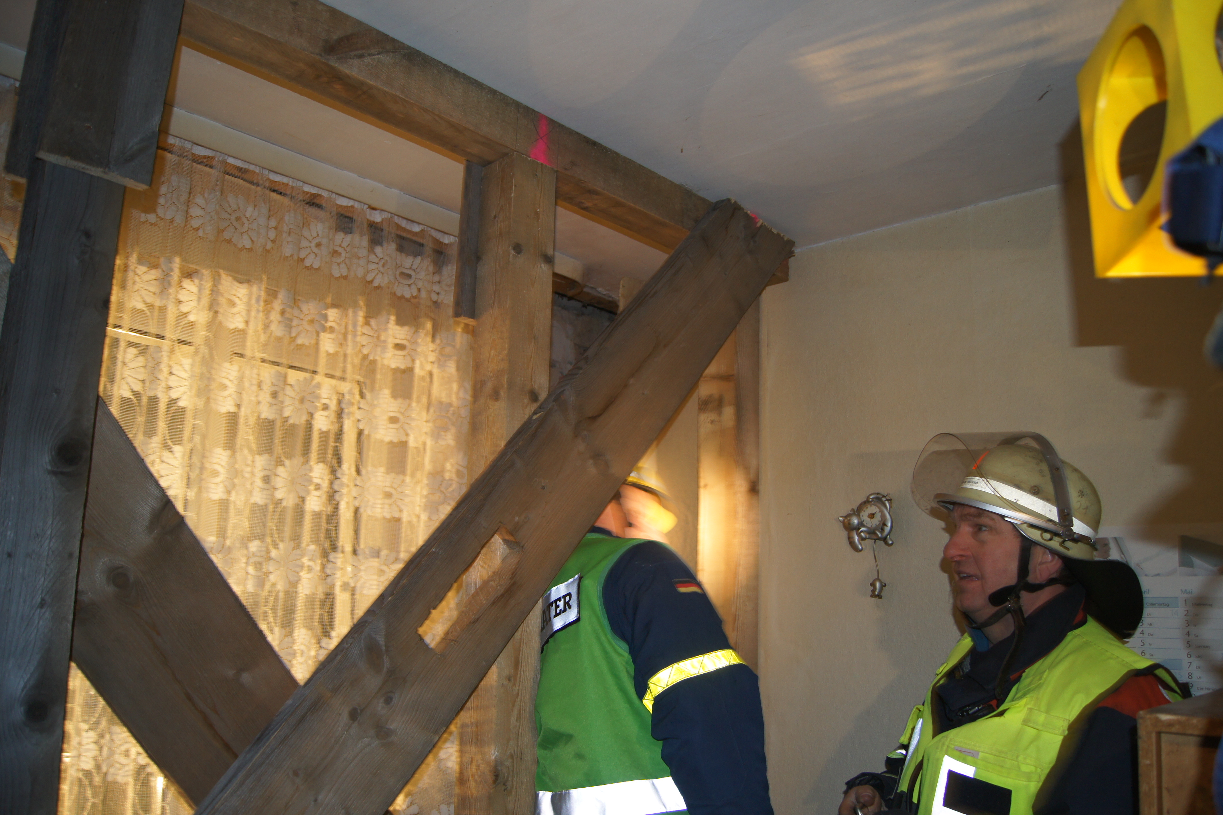 Ein Großaufgebot von Kräften eilte an die Unglücksstelle. Nach Beratung der Einsatzleitung unter Weidenbergs Kommandant Heinrich Schmidt mit dem Fachberater des THW wurden umfangreiche Stütz- und Sicherungsmaßnahmen eingeleitet. Zuvor wurde eine Gasflasche gesichert und Messungen im Wohnhaus durchgeführt. Für die Durchführung der Arbeiten waren zudem Ausleuchtungs- und Absperrmaßnahmen erforderlich.