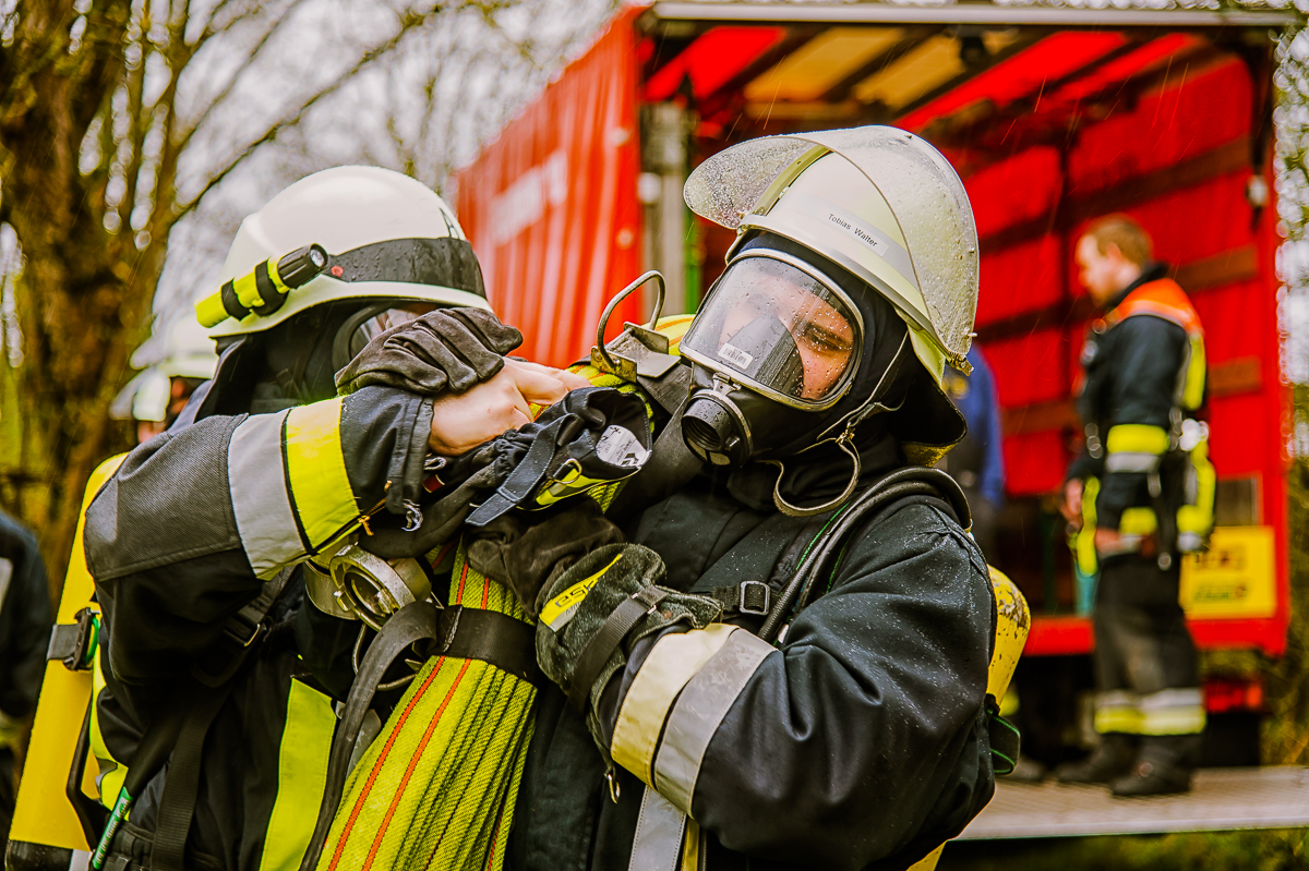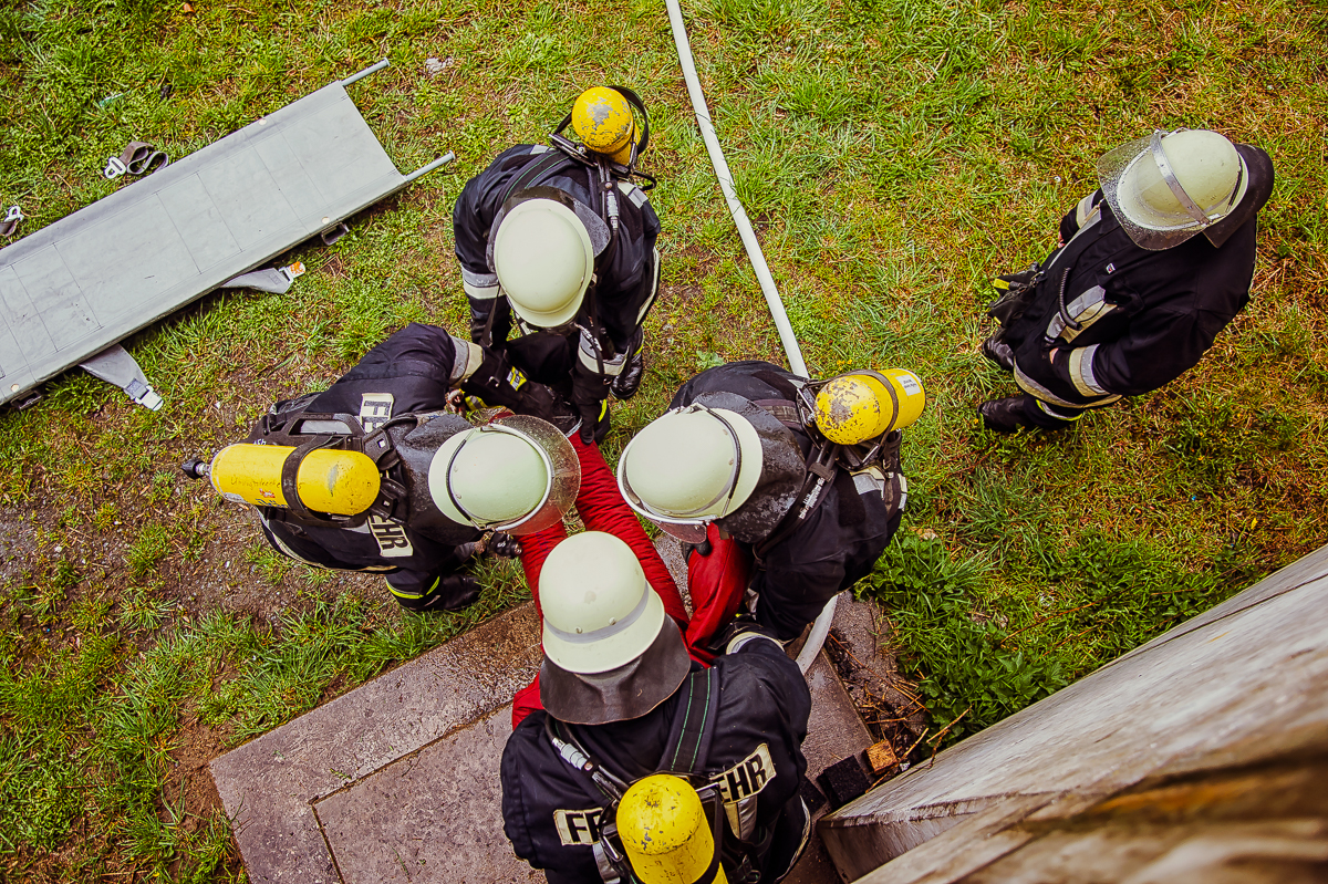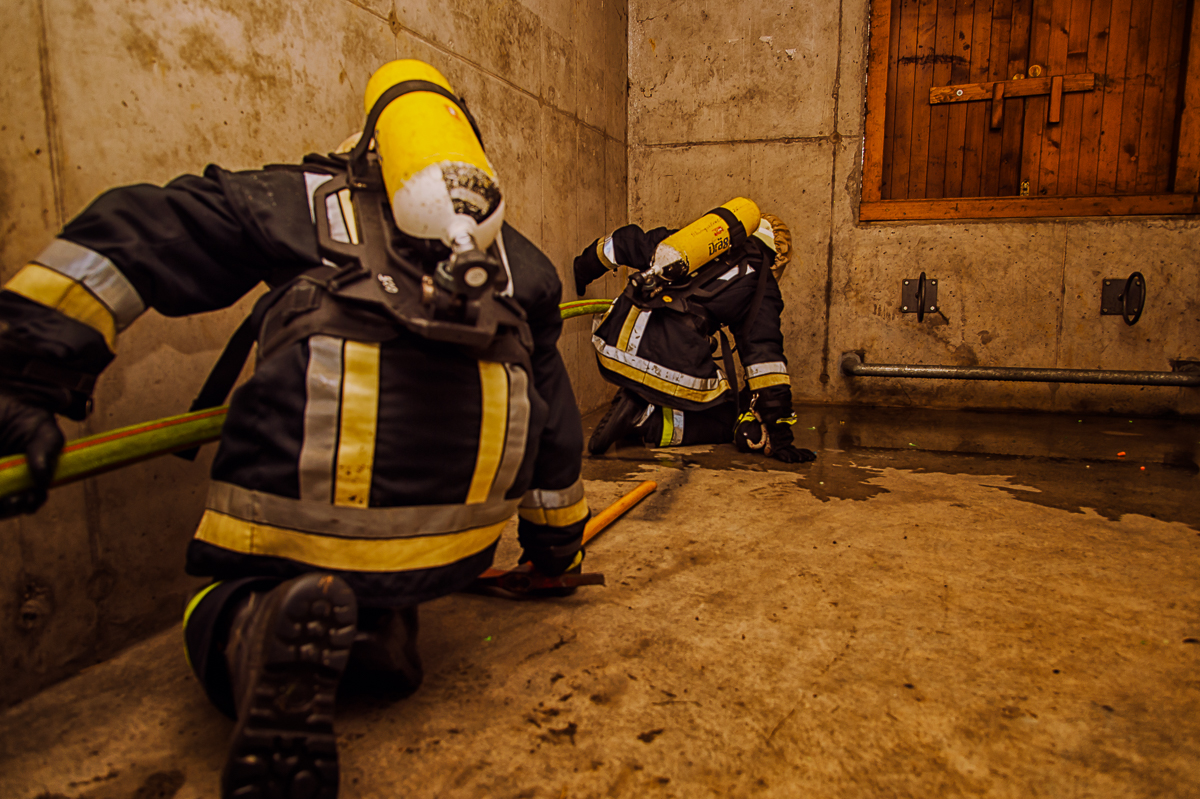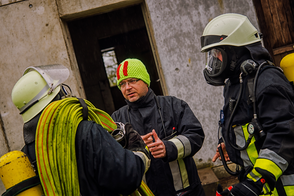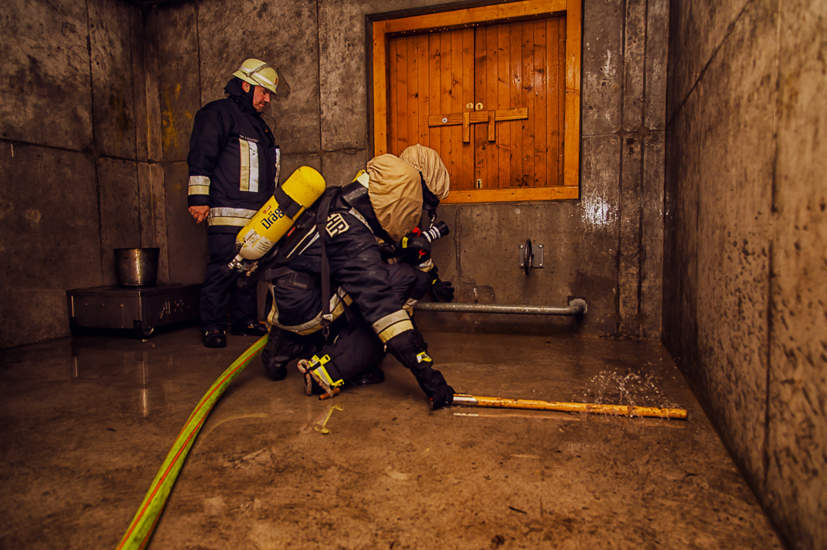 Insgesamt sieben, ebenso physisch wie psychisch herausfordernde Ausbildungstage liegen hinter den Lehrgangsabsolventen. Vor allem praxisrelevante Aspekte sind im Fokus dieser realitätsgerecht und modern gestalteten Landkreisschulung. Nachdem sich die Feuerwehrleute im Umgang mit der (über)lebenswichtigen Atemschutzausrüstung vertraut gemacht haben, werden im weiteren Verlauf allmählich Schwierigkeitsgrad und Anforderungsniveau gesteigert. Es folgen neben verschiedenen Gewöhnungsübungen unter anderem ein Strahlrohrtraining, Türöffnungsprozeduren und ein Gang durch die Atemschutzübungsstrecke.