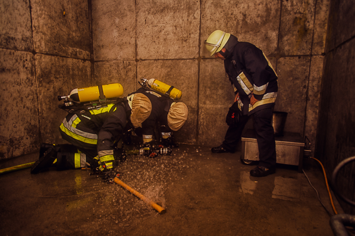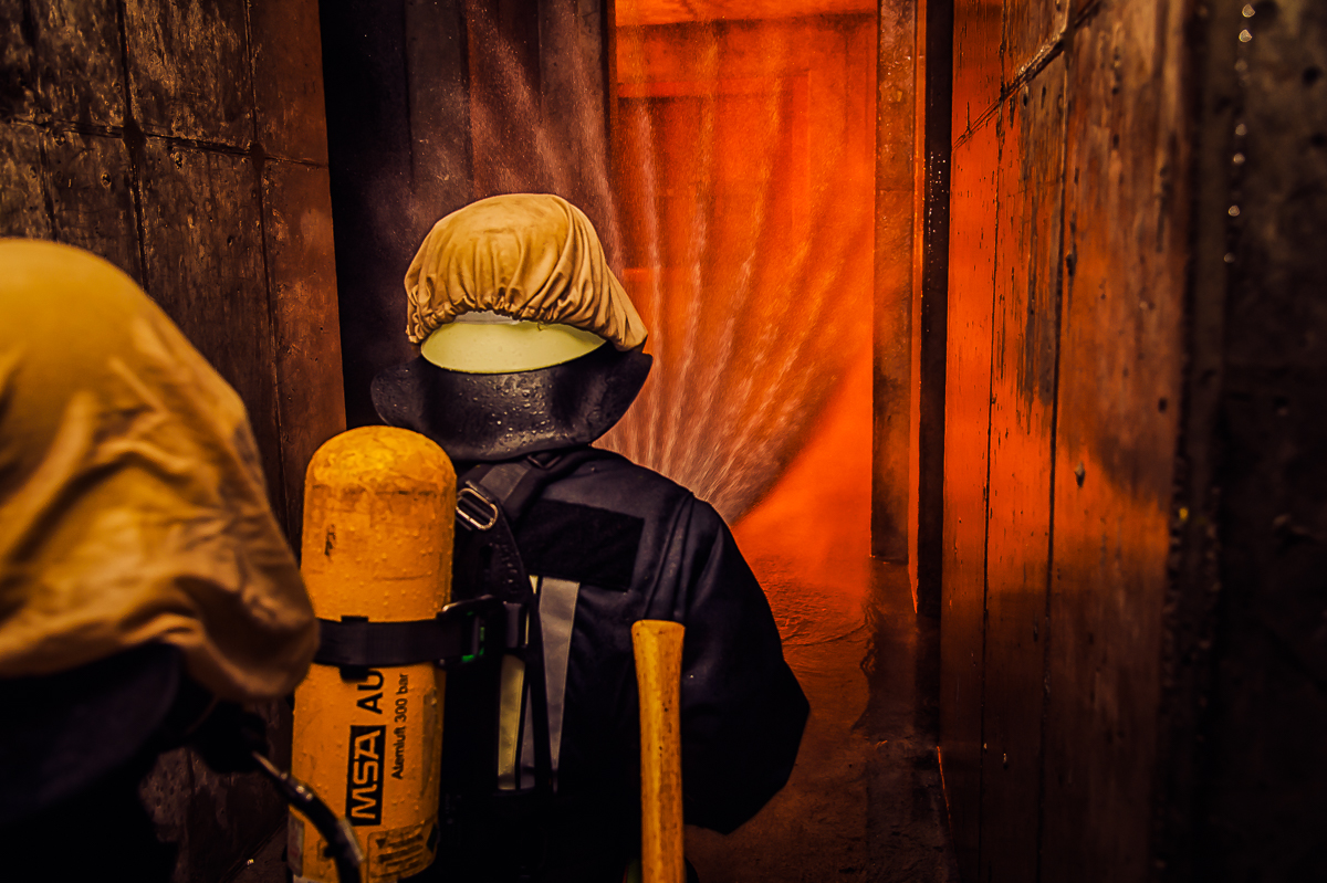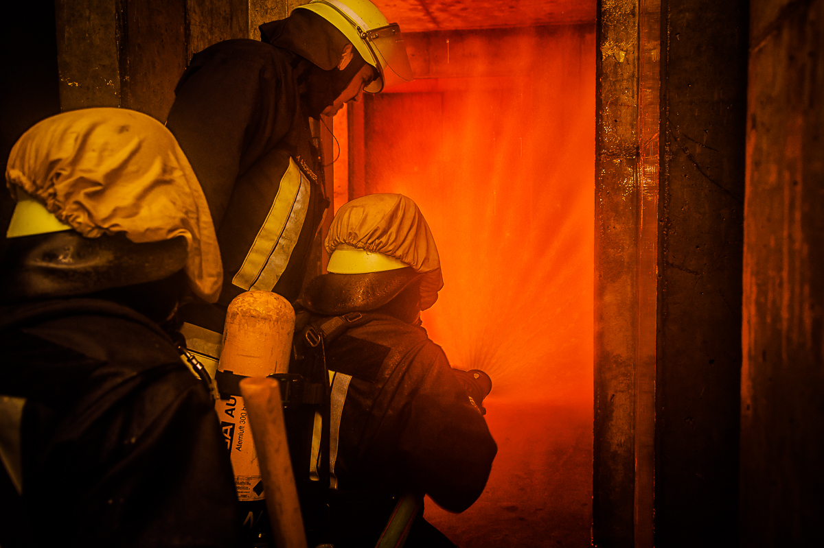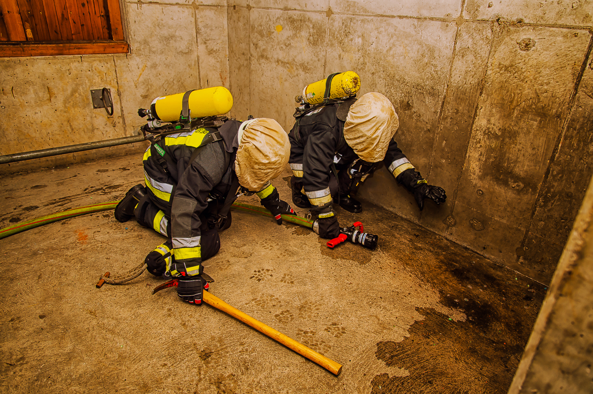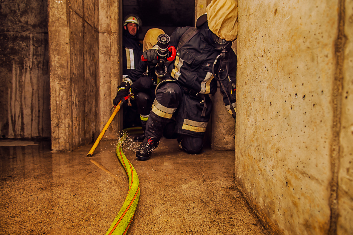 Insgesamt sieben, ebenso physisch wie psychisch herausfordernde Ausbildungstage liegen hinter den Lehrgangsabsolventen. Vor allem praxisrelevante Aspekte sind im Fokus dieser realitätsgerecht und modern gestalteten Landkreisschulung. Nachdem sich die Feuerwehrleute im Umgang mit der (über)lebenswichtigen Atemschutzausrüstung vertraut gemacht haben, werden im weiteren Verlauf allmählich Schwierigkeitsgrad und Anforderungsniveau gesteigert. Es folgen neben verschiedenen Gewöhnungsübungen unter anderem ein Strahlrohrtraining, Türöffnungsprozeduren und ein Gang durch die Atemschutzübungsstrecke.