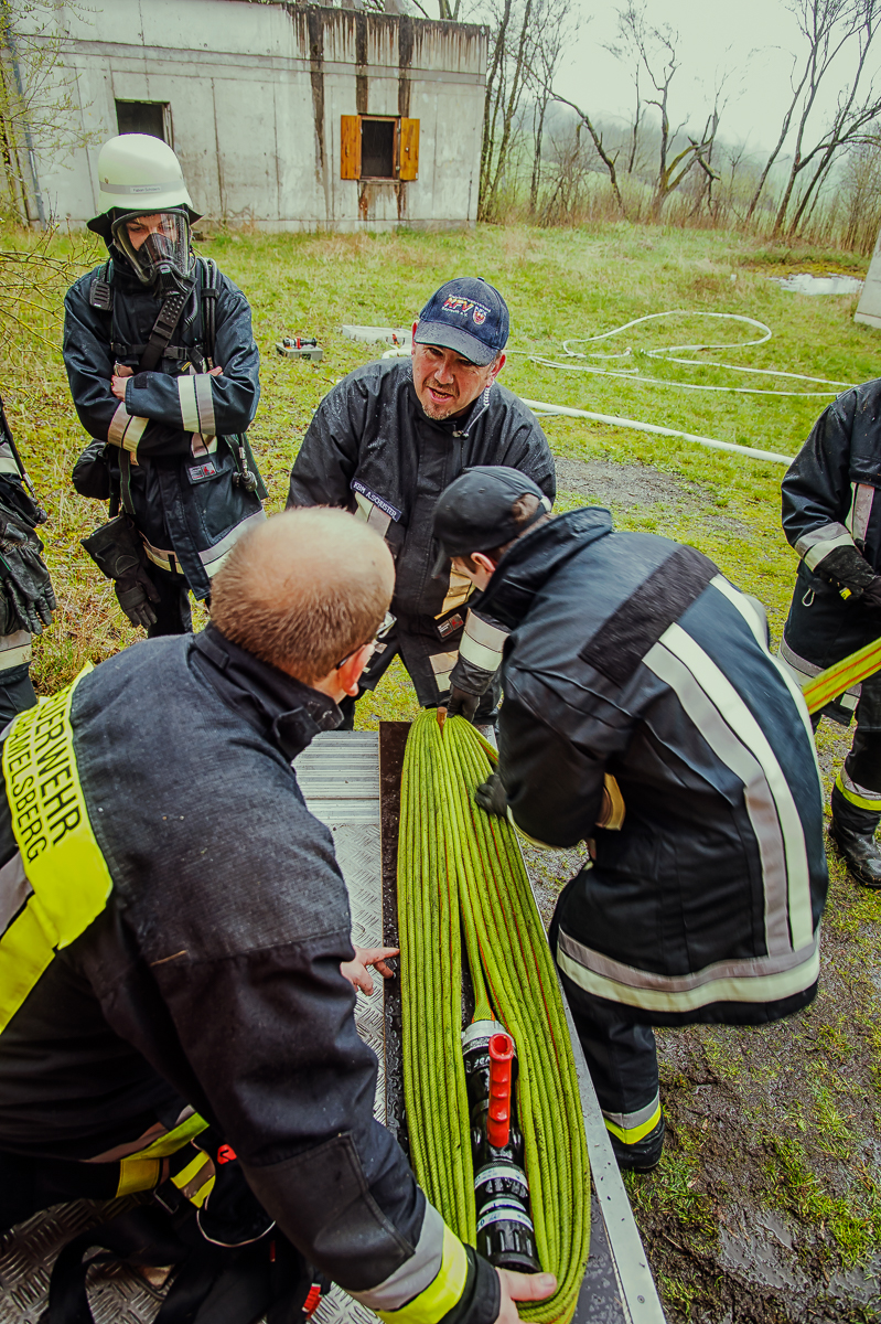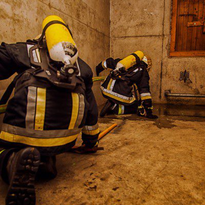 Insgesamt sieben, ebenso physisch wie psychisch herausfordernde Ausbildungstage liegen hinter den Lehrgangsabsolventen. Vor allem praxisrelevante Aspekte sind im Fokus dieser realitätsgerecht und modern gestalteten Landkreisschulung. Nachdem sich die Feuerwehrleute im Umgang mit der (über)lebenswichtigen Atemschutzausrüstung vertraut gemacht haben, werden im weiteren Verlauf allmählich Schwierigkeitsgrad und Anforderungsniveau gesteigert. Es folgen neben verschiedenen Gewöhnungsübungen unter anderem ein Strahlrohrtraining, Türöffnungsprozeduren und ein Gang durch die Atemschutzübungsstrecke.