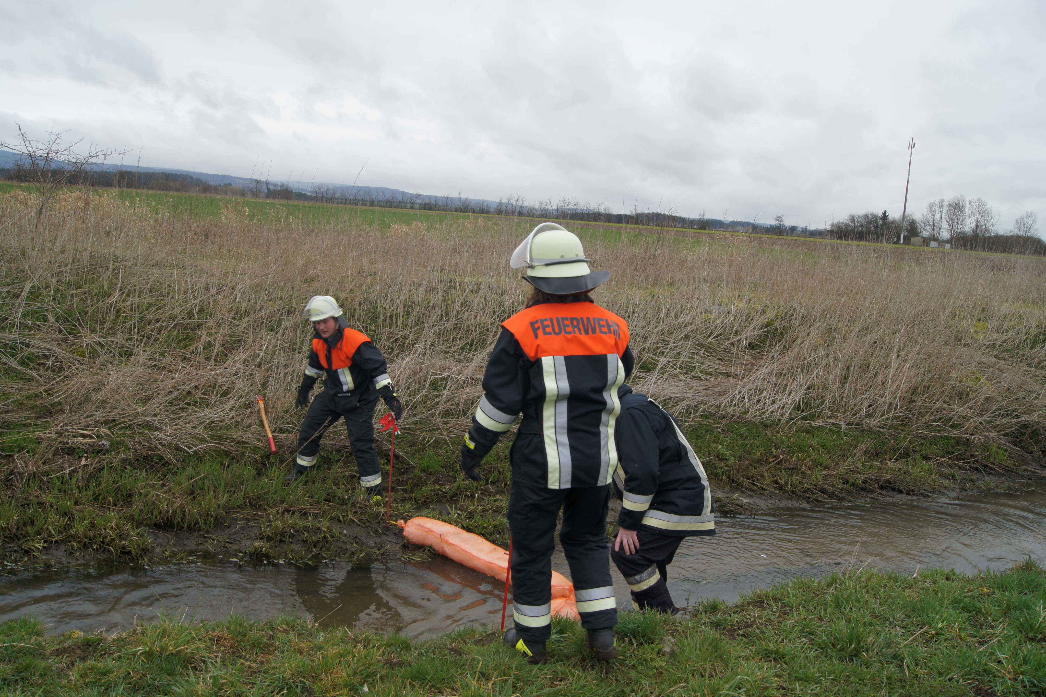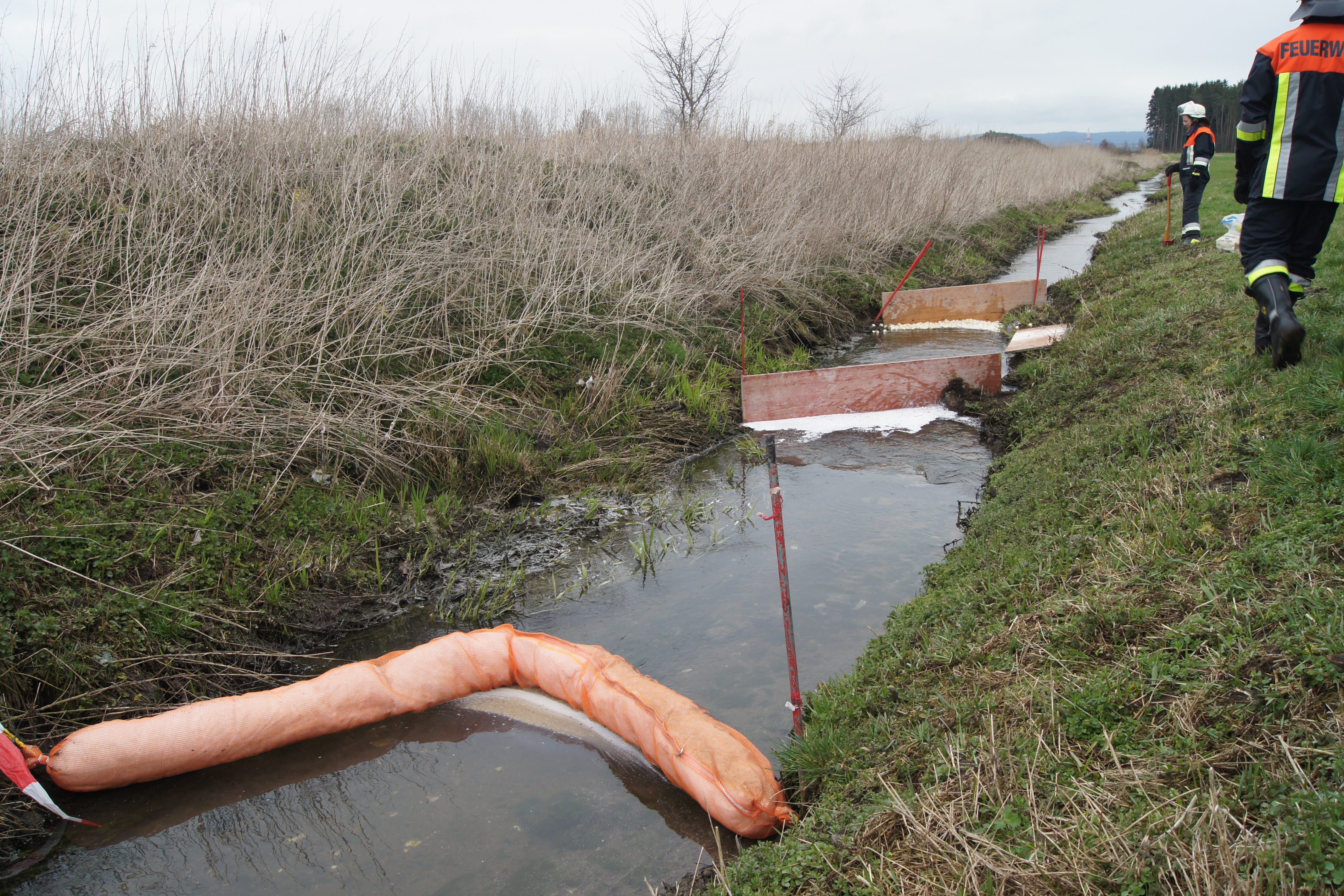 Feuerwehr Speichersdorf errichtet Ölsperre auf Fließgewässer
