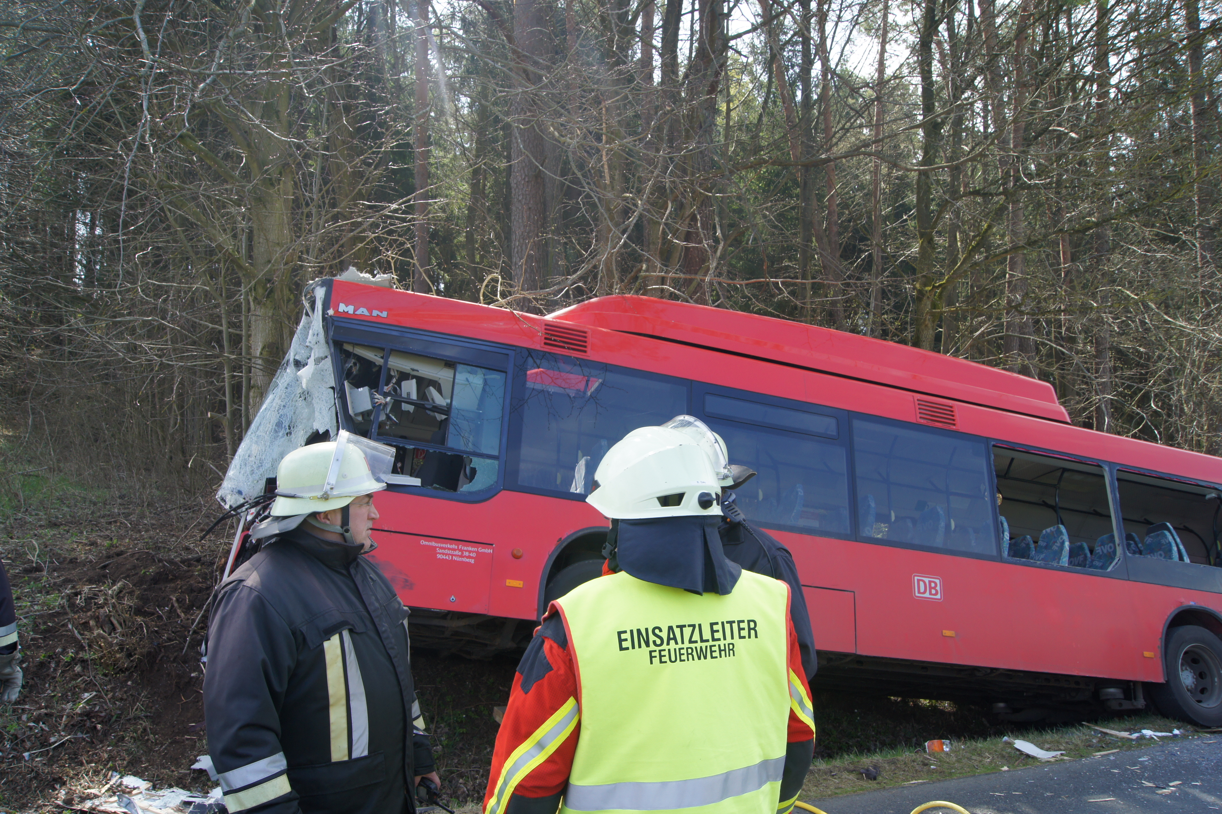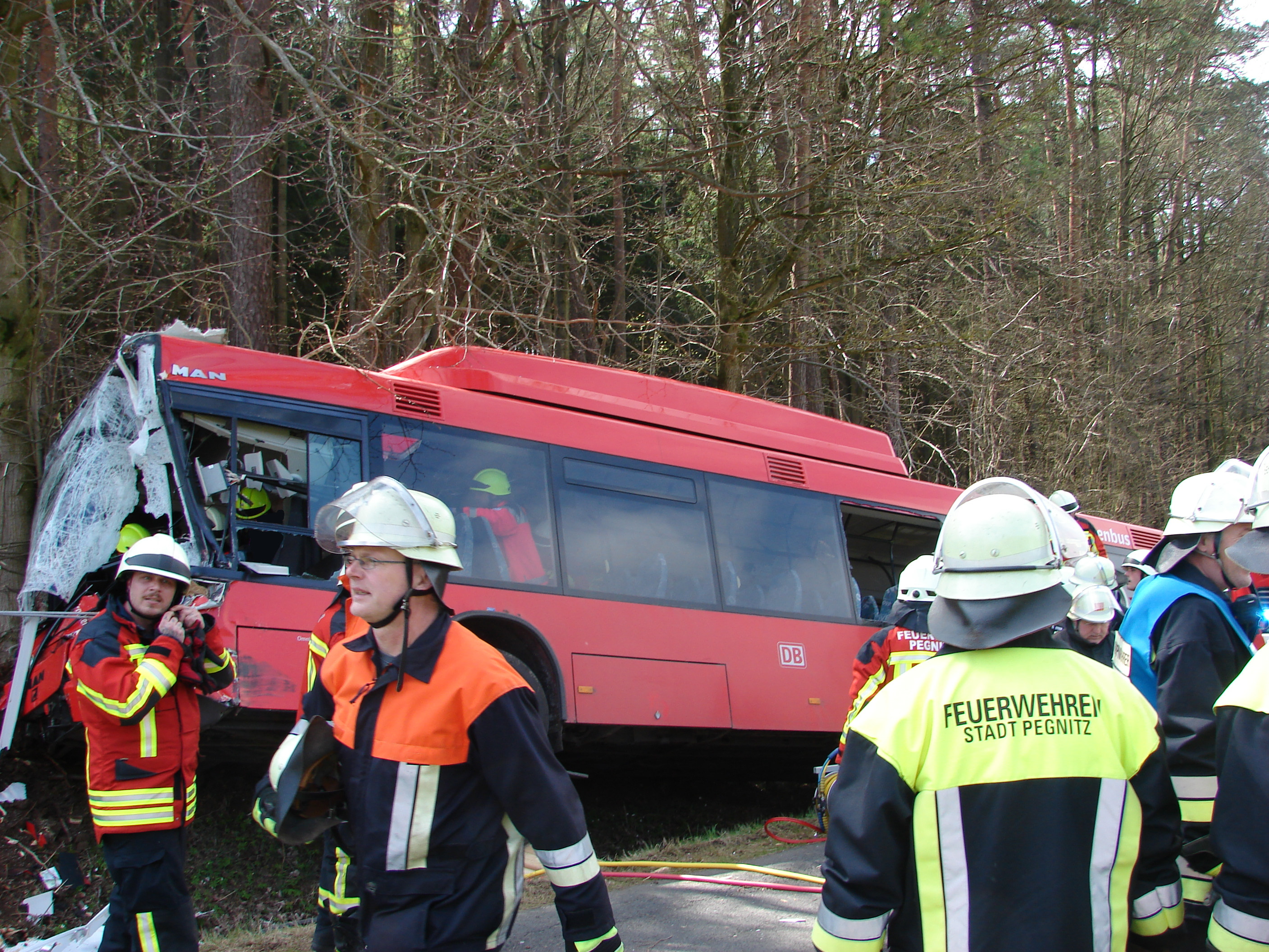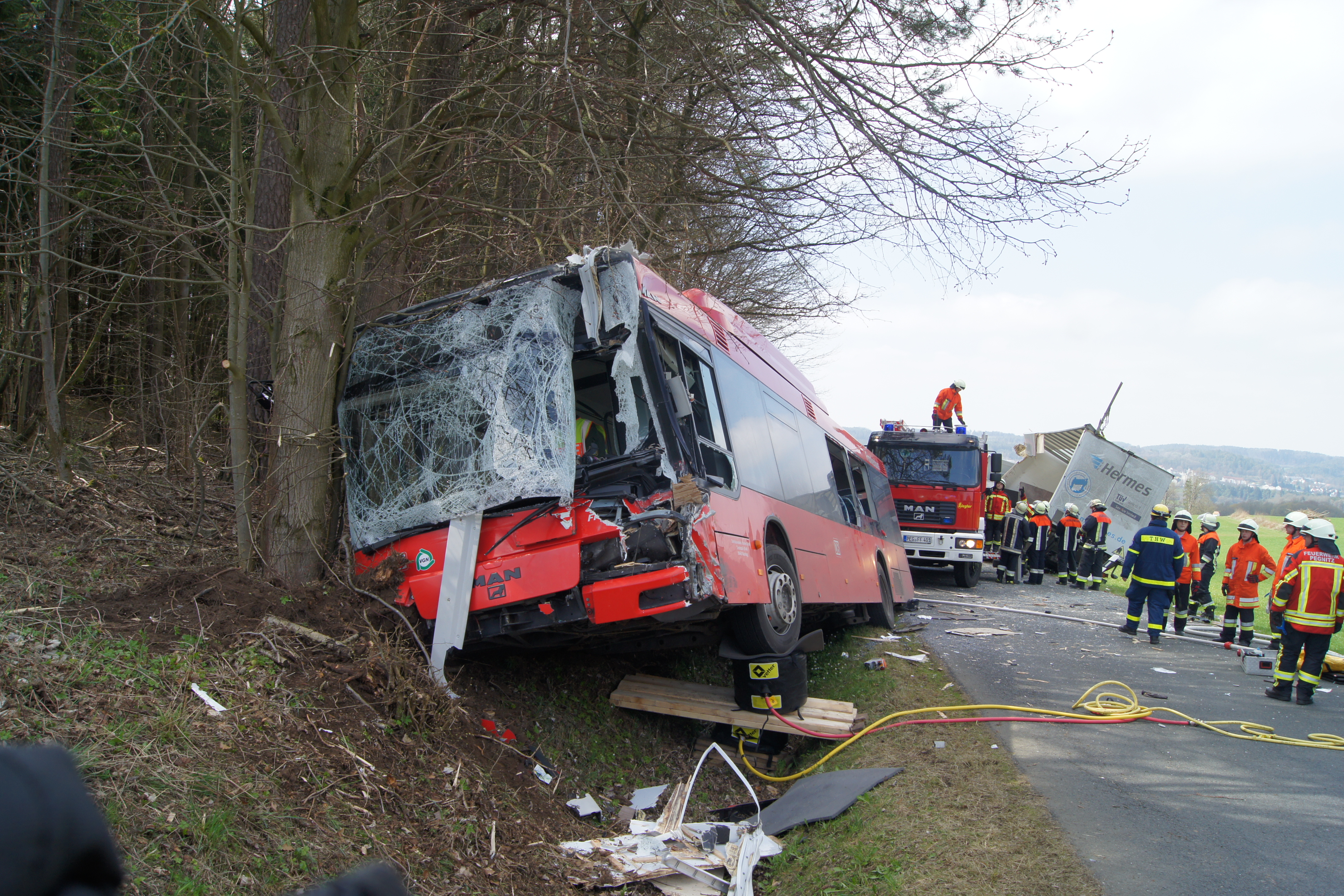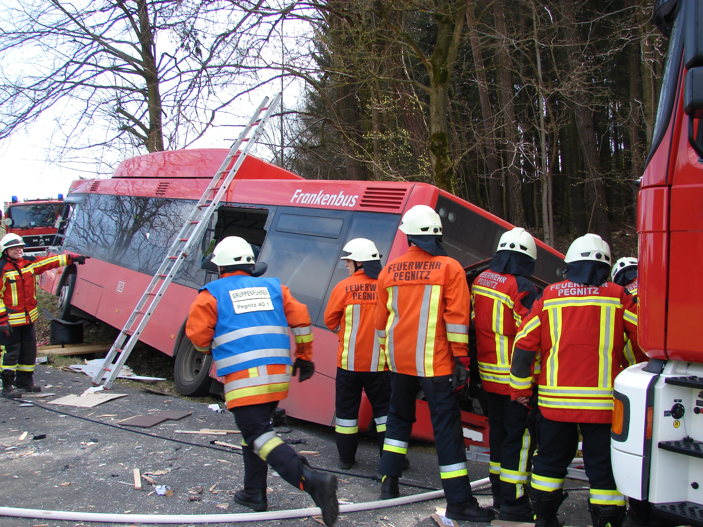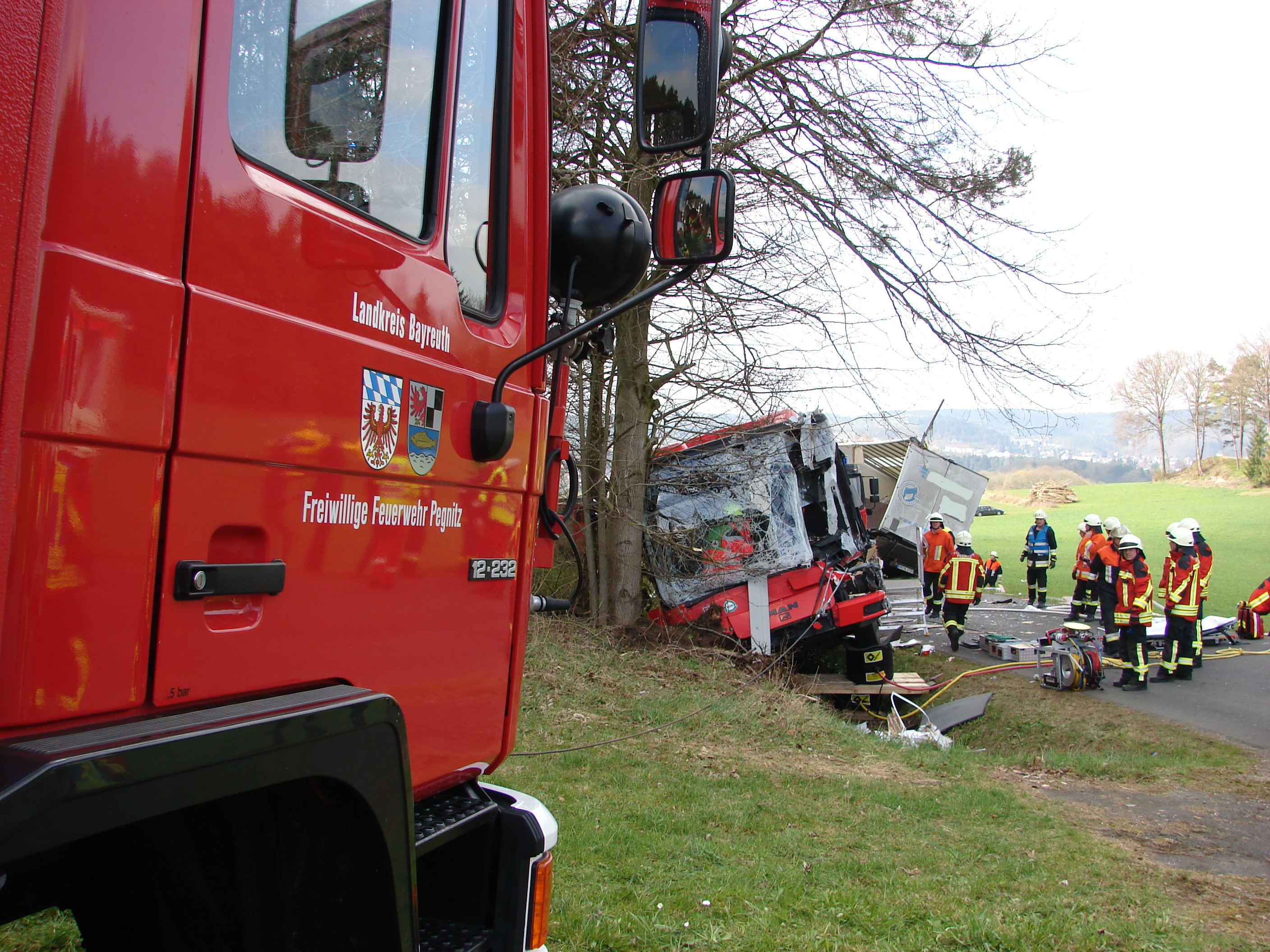 Großeinsatz für die Helfer von Feuerwehr, Rettungsdienst, THW und Polizei am 11.04.2016! Gegen 12:44 Uhr wurden die Einheiten zu einem Verkehrsunfall mit mehreren eingeklemmten Personen auf eine Ortsverbindungsstraße zwischen Penzenreuth und Reisach bei Pegnitz alarmiert. Nach Eintreffen der ersten Kräfte ergab das Lagebild, dass alle Insassen, darunter zehn Kinder im Bus sowie LKW-Fahrer mit Beifahrer die Fahreuge bereits verlassen hatten und in Sicherheit gebracht wurden. Alle Unfallopfer wurden sofort betreut.