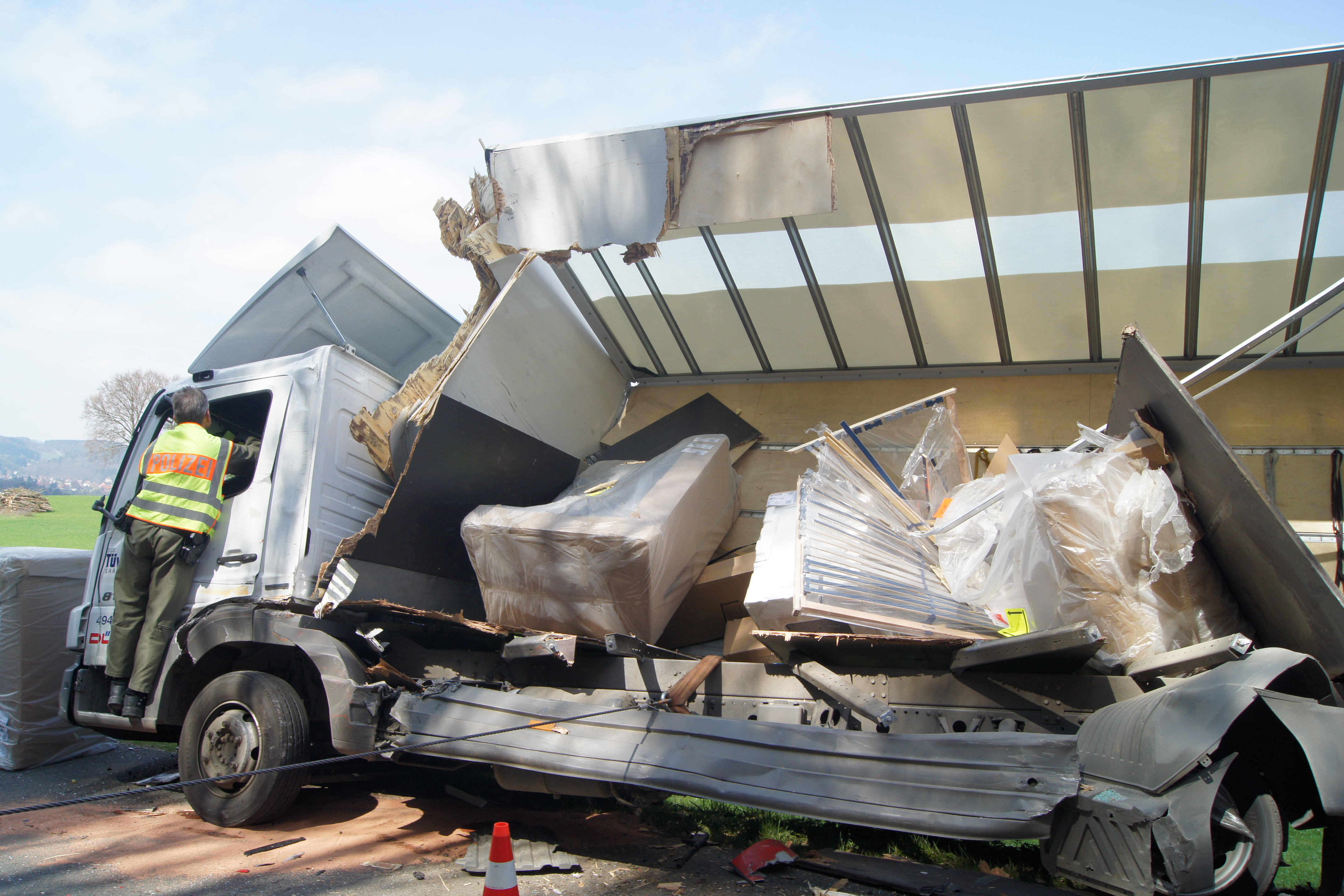 Für die Unfallaufnahme und Bergungsarbeiten ist die Verbindungsstraße derzeit (Stand: 14.30 Uhr) komplett gesperrt. An den beiden beschädigten Fahrzeugen entstand insgesamt ein Sachschaden von geschätzten 140.000 Euro.