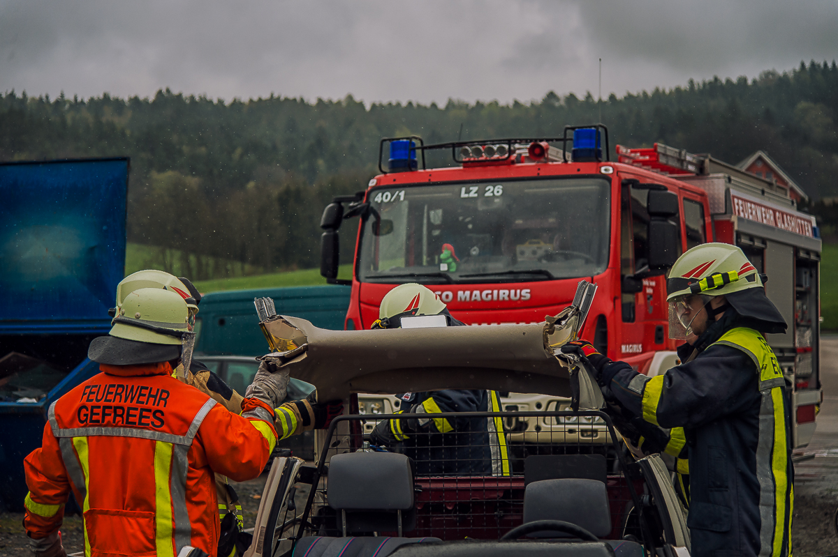Unter der Leitung von Kreisbrandinspektor Harald Schöberl fand am Samstag, den 23. April 2016, in Glashütten der Lehrgang Schneide- und Spreiztechniken statt. Diese praxisbezogene Schulung der Ausbildungsinspektion des Landkreises Bayreuth leistet einen Beitrag dazu, sich auf Verkehrsunfälle in ruhigem Rahmen unter fachkundiger Anleitung und gegenseitigem Erfahrungsaustausch vorzubereiten.