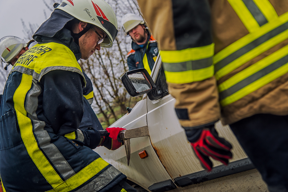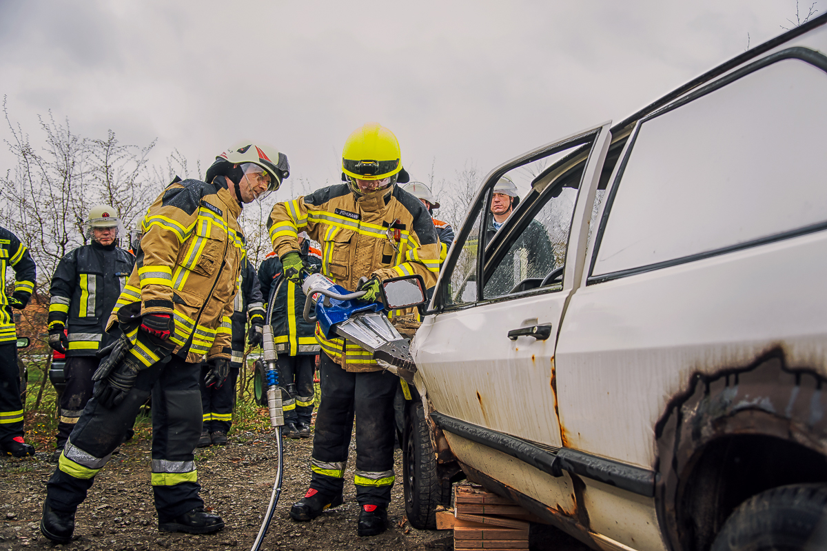 Neben einer Wiederholung und Vertiefung von theoretischen Grundlagen am Vormittag, darunter beispielsweise Neuerungen in der Fahrzeugtechnik, Sicherungs- und Eigenschutzmaßnahmen sowie Prinzipien der patientenorientierten Rettung, wurde bei der praktischen Ausbildung am Nachmittag unter Beachtung der erlernten Grundsätze ein Fahrzeug Stück für Stück auseinandergenommen und dabei verschiedene Ansätze und Lösungswege gemeinsam miteinander ausprobiert.