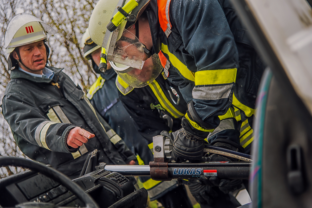 Neben einer Wiederholung und Vertiefung von theoretischen Grundlagen am Vormittag, darunter beispielsweise Neuerungen in der Fahrzeugtechnik, Sicherungs- und Eigenschutzmaßnahmen sowie Prinzipien der patientenorientierten Rettung, wurde bei der praktischen Ausbildung am Nachmittag unter Beachtung der erlernten Grundsätze ein Fahrzeug Stück für Stück auseinandergenommen und dabei verschiedene Ansätze und Lösungswege gemeinsam miteinander ausprobiert.