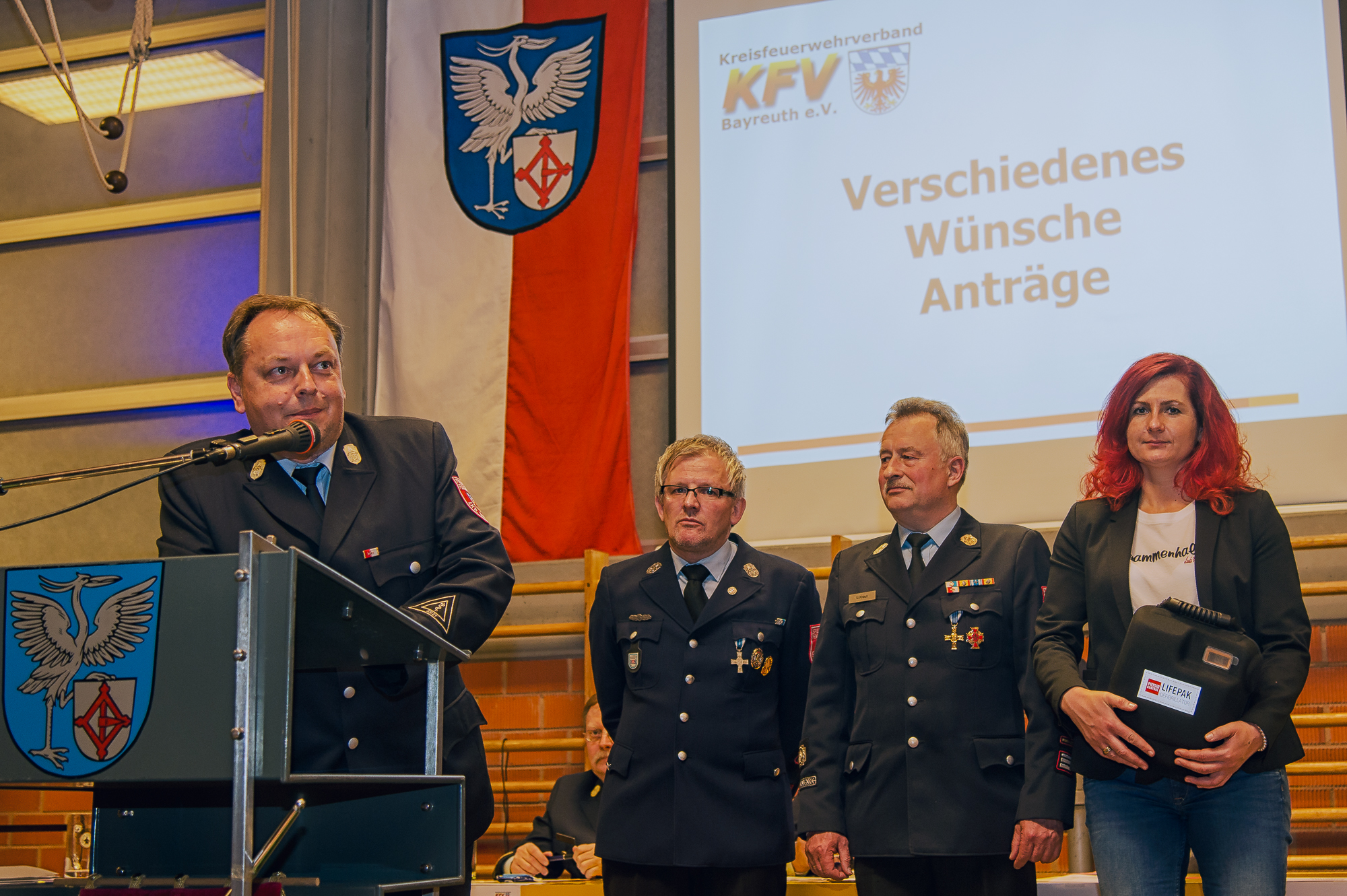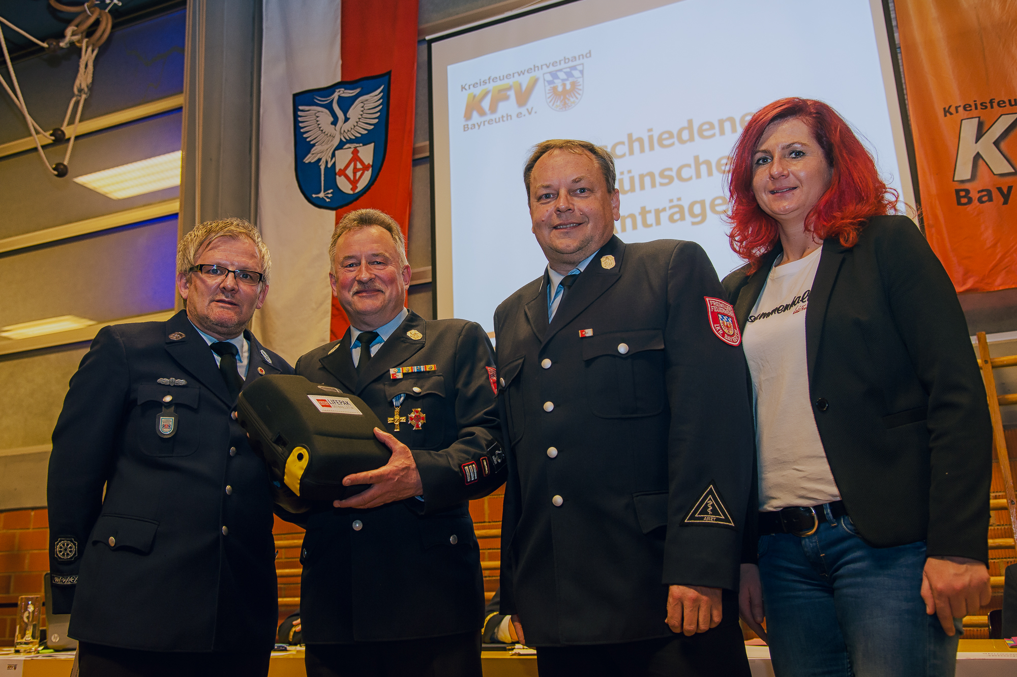 Den würdigen Rahmen der Kreisverbandsversammlung nutzte Heinersreuths Vorsitzender Michael Dötsch, um einen dieser Lebensretter der aktiven Mannschaft offiziell zu übergeben. Doch damit nicht genug: Die Firma Bayreuther Entsorgungsservice ( BES ) sponserte einen weiteren Defibrillator, der künftig in Altenplos zum Einsatz kommen kann.