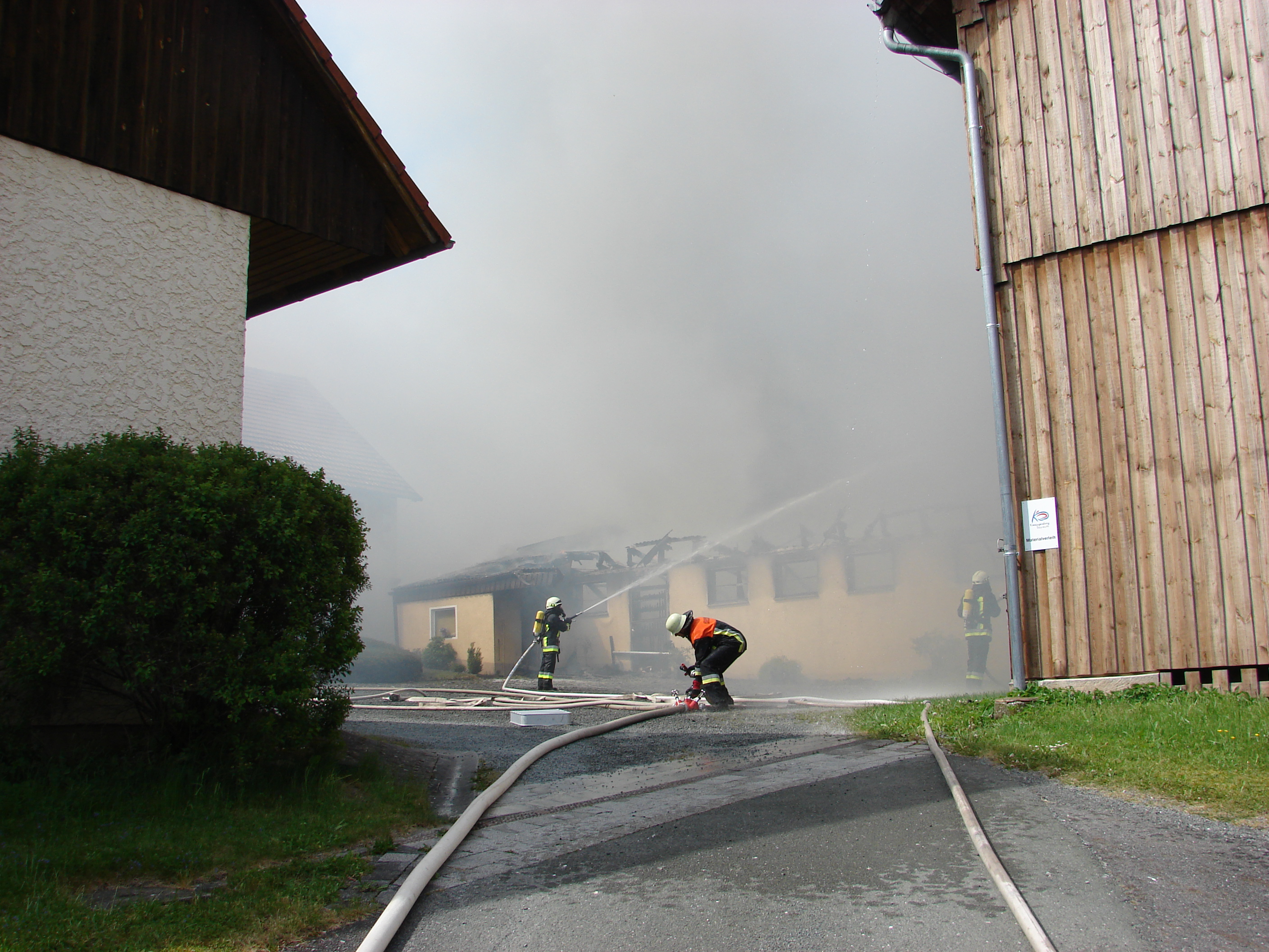 Zu einem Gebäudebrand alarmierte die Leitstelle Bayreuth/Kulmbach am 10. Mai die Feuerwehren mit dem Alarmstichwort: Brand eines Gebäudes, B3, nach Troschenreuth bei Emtmannsberg.