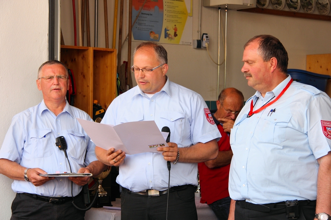 In seiner Laudatio dankte Bezirksjugendfeuerwehrwart Stefan Steger dem sichtlich überraschten Kreisbrandmeister Werner Otto für sein langjähriges, unermüdliches Arbeiten mit und für die Jugendfeuerwehren. Die Teilnehmer und Betreuer des Jugendleistungsmarsches zollten der Ehrung stürmischen Beifall.