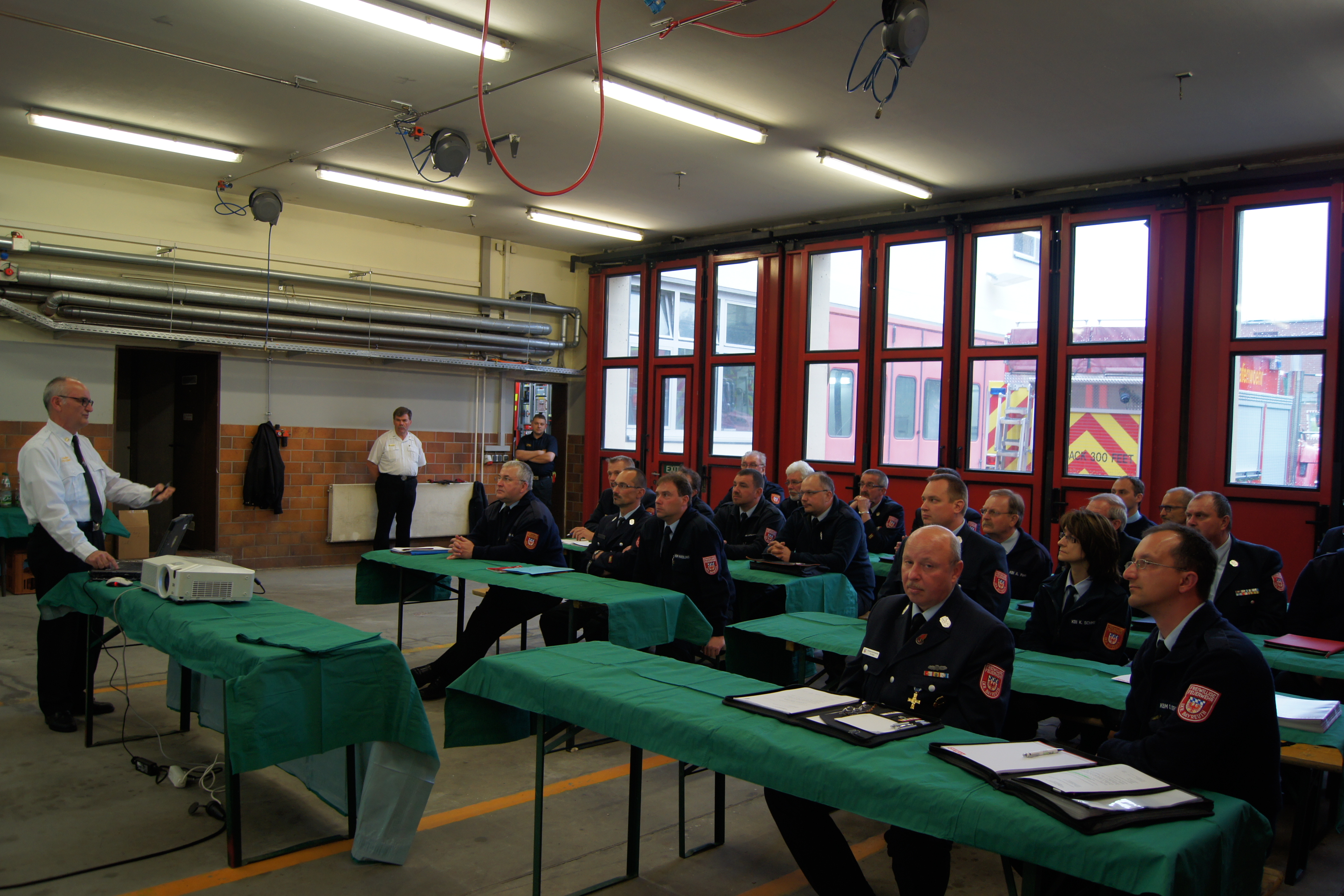 Die Dienstversammlung der Führungskräfte des Landkreises Bayreuth fand am 03.05.2016 beim US-Fire-Departement Grafenwöhr statt. Fire-Chief Josef Rodler gab in einem kurzweiligen Vortrag Einblick über Strukturen und Aufgabengebiete der Einheit auf und um den Truppenübungsplatz. Auch der Fuhrpark und die technischen Ausstattungen konnten von den Führungskräften des Bayreuther Landkreises besichtigt werden. Zustande gekommen war der Termin, nachdem in Folge des F-16 Absturzes im vergangenen Jahr nahe Engelsmannsreuth der Wunsch nach einer intensiveren Zusammenarbeit geäußert wurde.