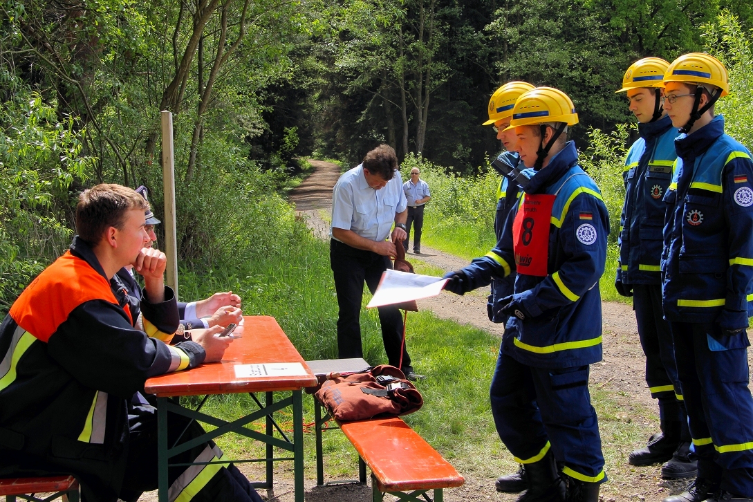 23 Gruppen, aus 17 Feuerwehren vom Inspektionsbereich III sowie eine Gruppe vom THW-Ortsverband Pegnitz nahmen bei bestem Wetter am 21. Mai 2016 am Jugendleistungsmarsch teil, um sich auf einem fast fünf Kilometer langen Kurs rund um Körzendorf bei verschiedenen Prüfungen aneinander zu messen.