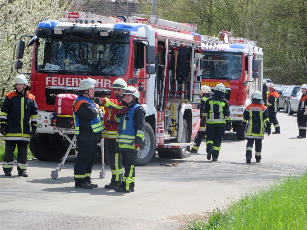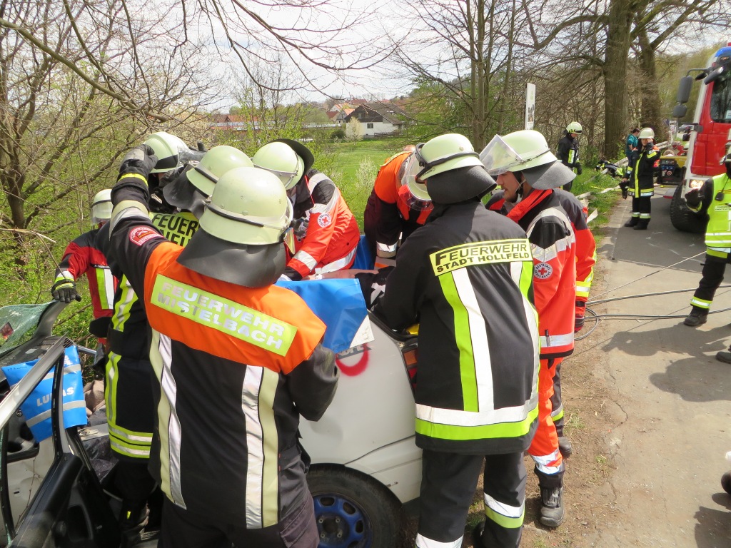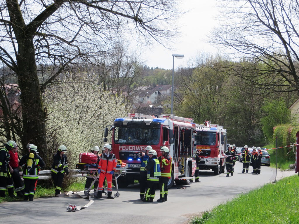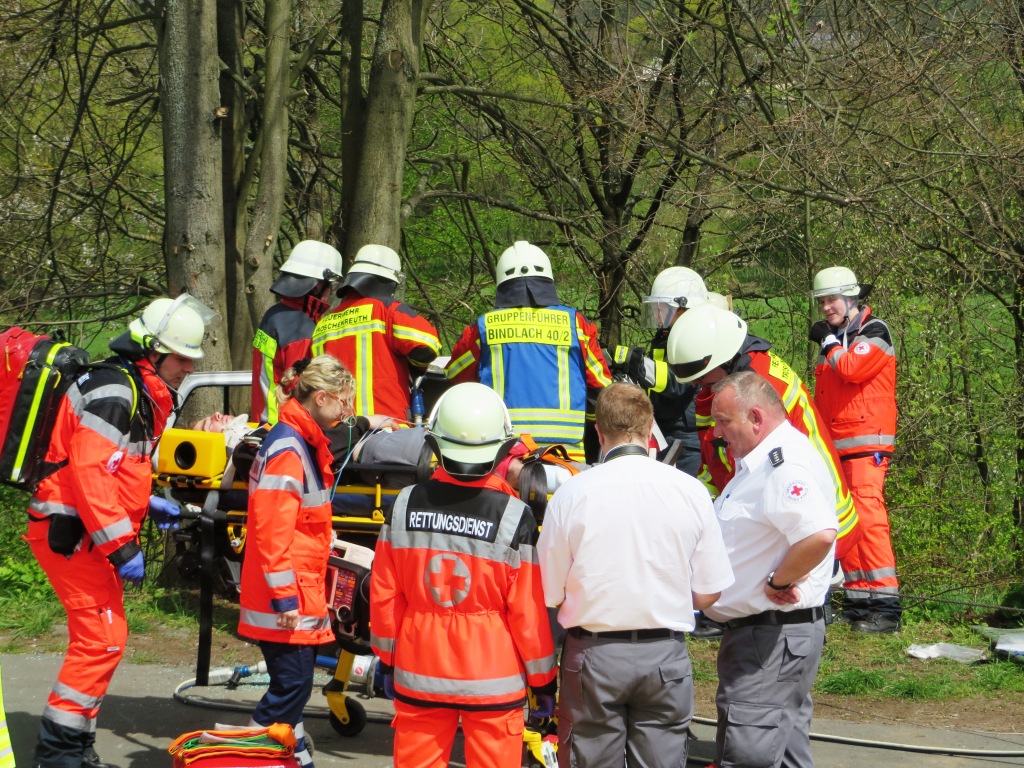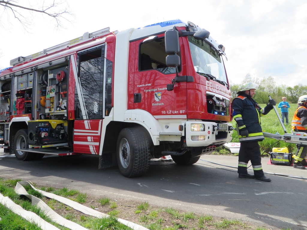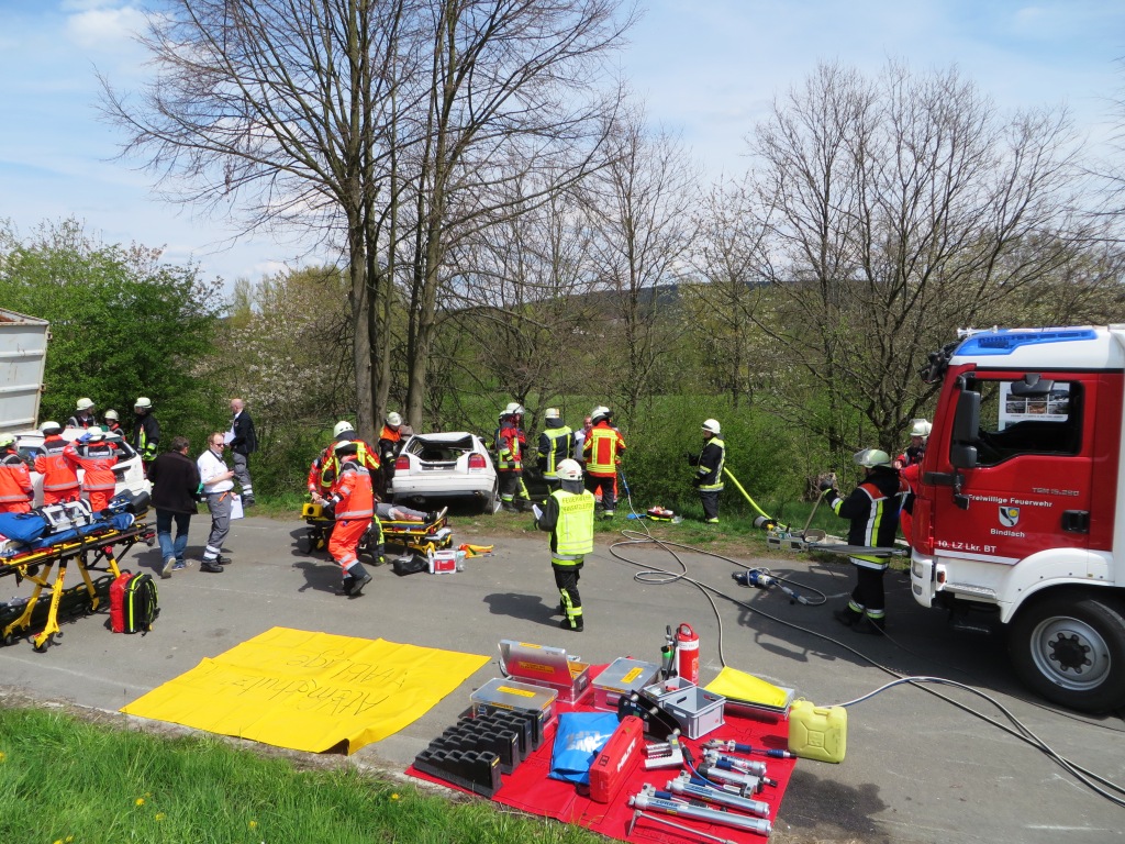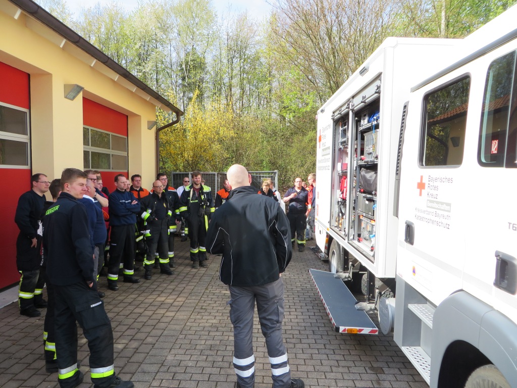 im Fokus der rund 45 Teilnehmer von Feuerwehr ( Bindlach, Creußen, Gesees, Hollfeld, Mistelbach, Neubau, Troschenreuth ) und Bayerischen Roten Kreuz stand, bildeten am Nachmittag zwei praktische Übungen die Kernpunkte.