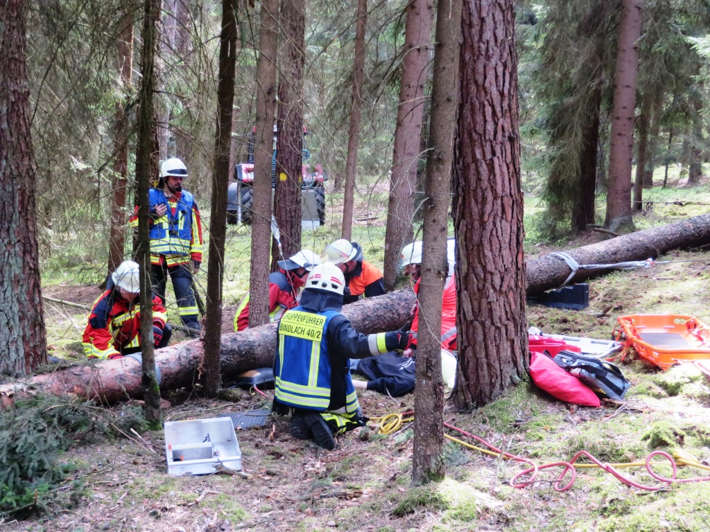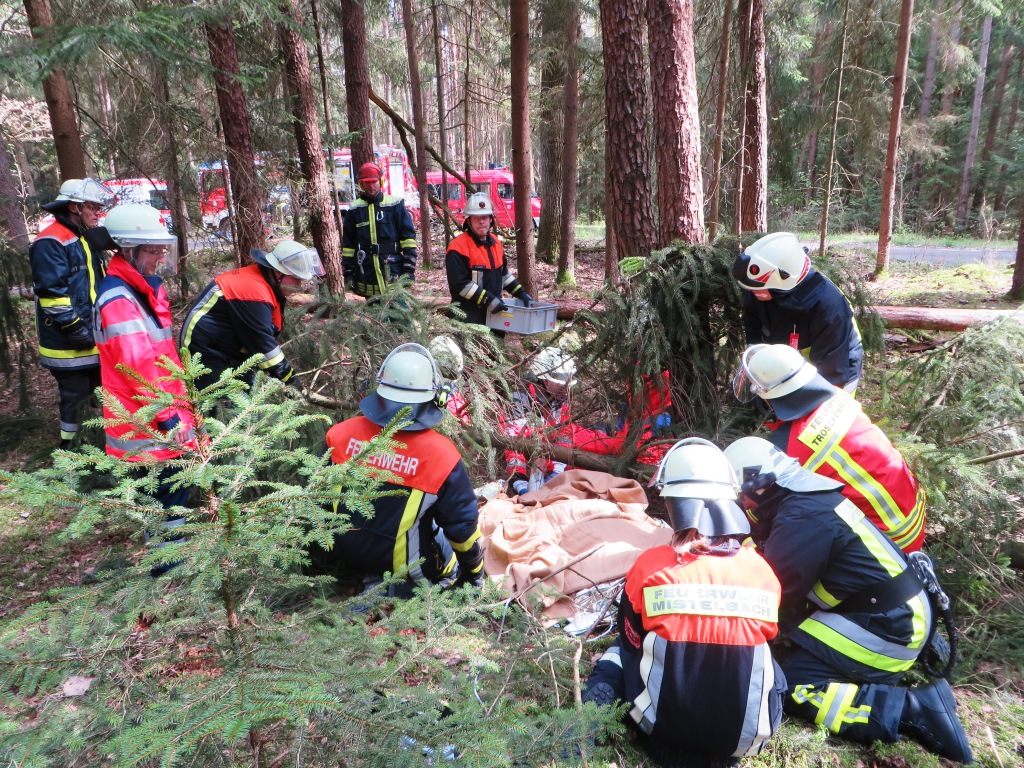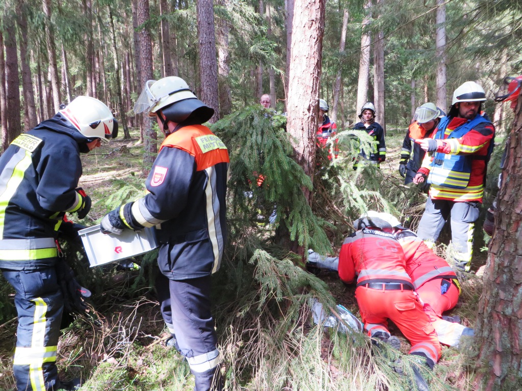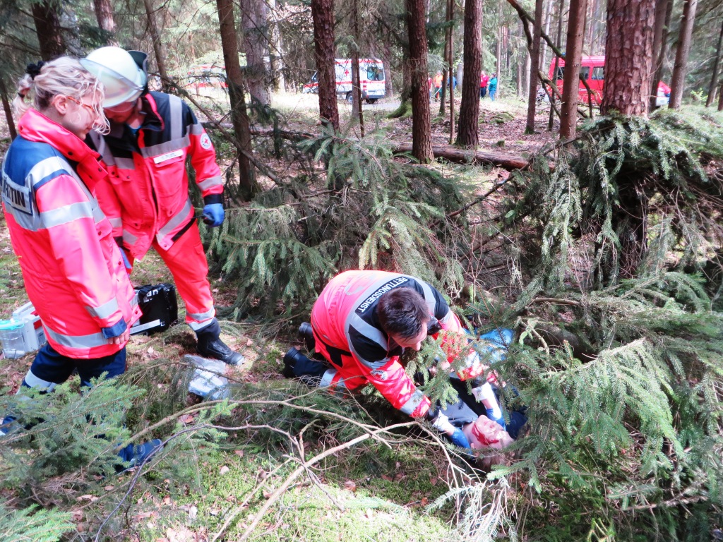 Im Szenario 2 ging man von einem Waldunfall mit vier verletzten und teilweise eingeklemmten Personen im Wald aus: