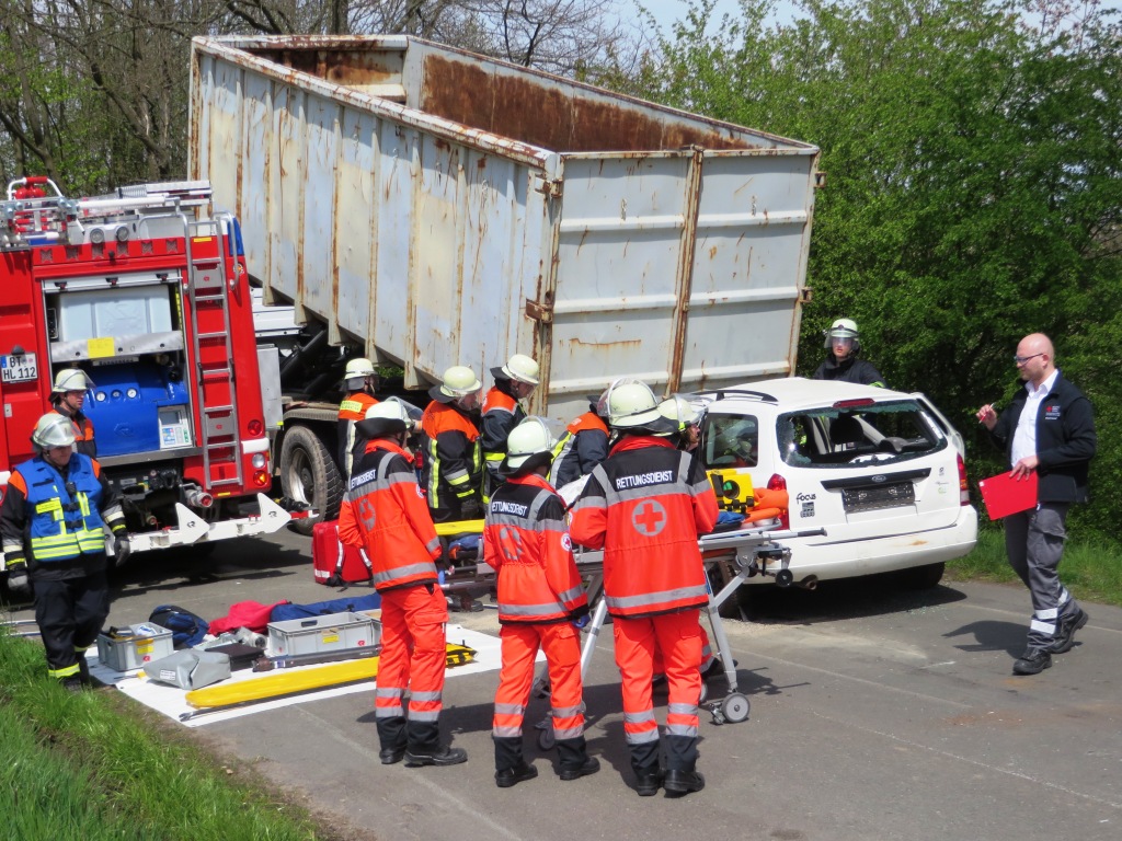 Nachfolgend einige Impressionen vom Szenario 1 „Zwei verunfallte PKW und LKW mit eingeklemmten Personen und insgesamt fünf Verletzten“: