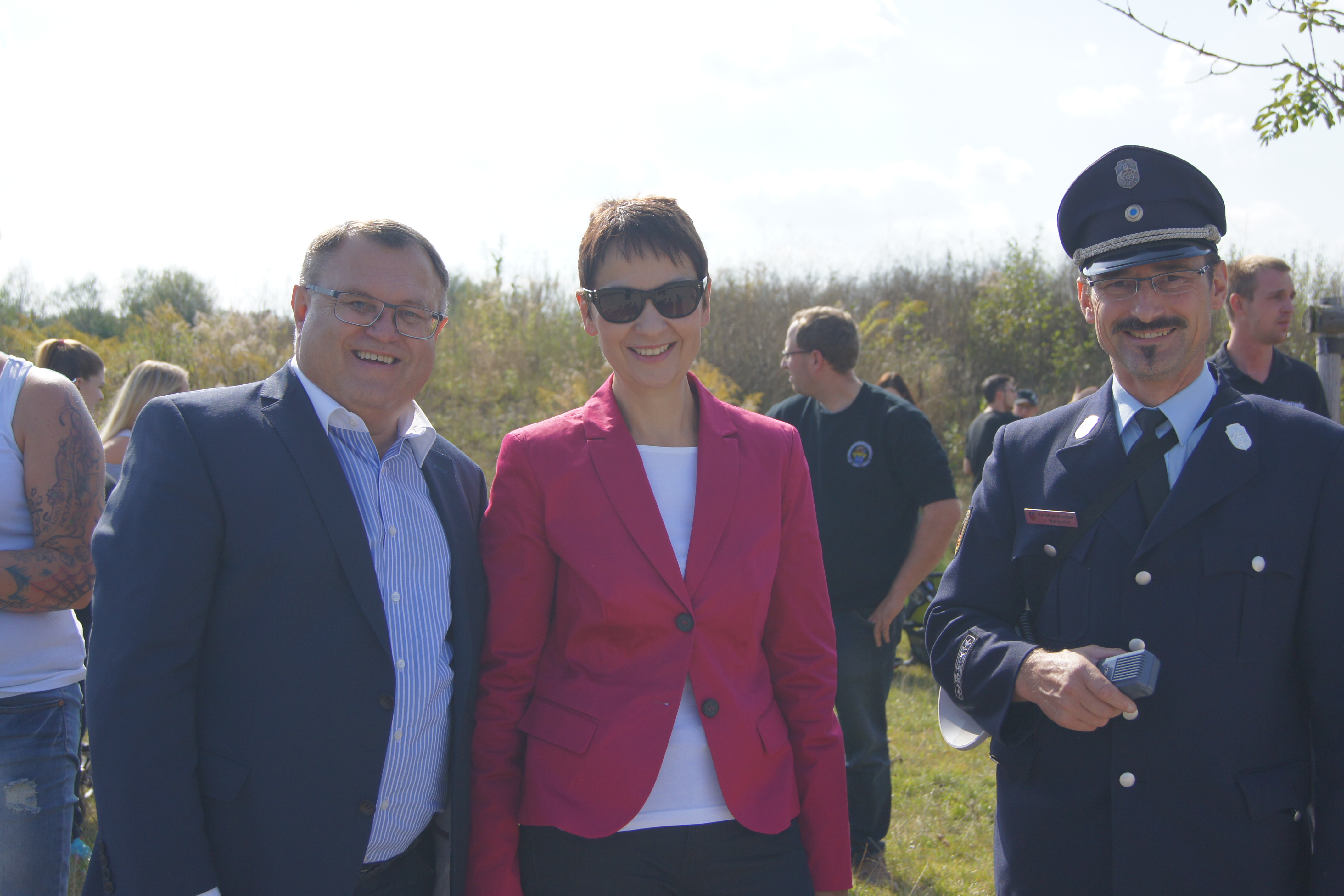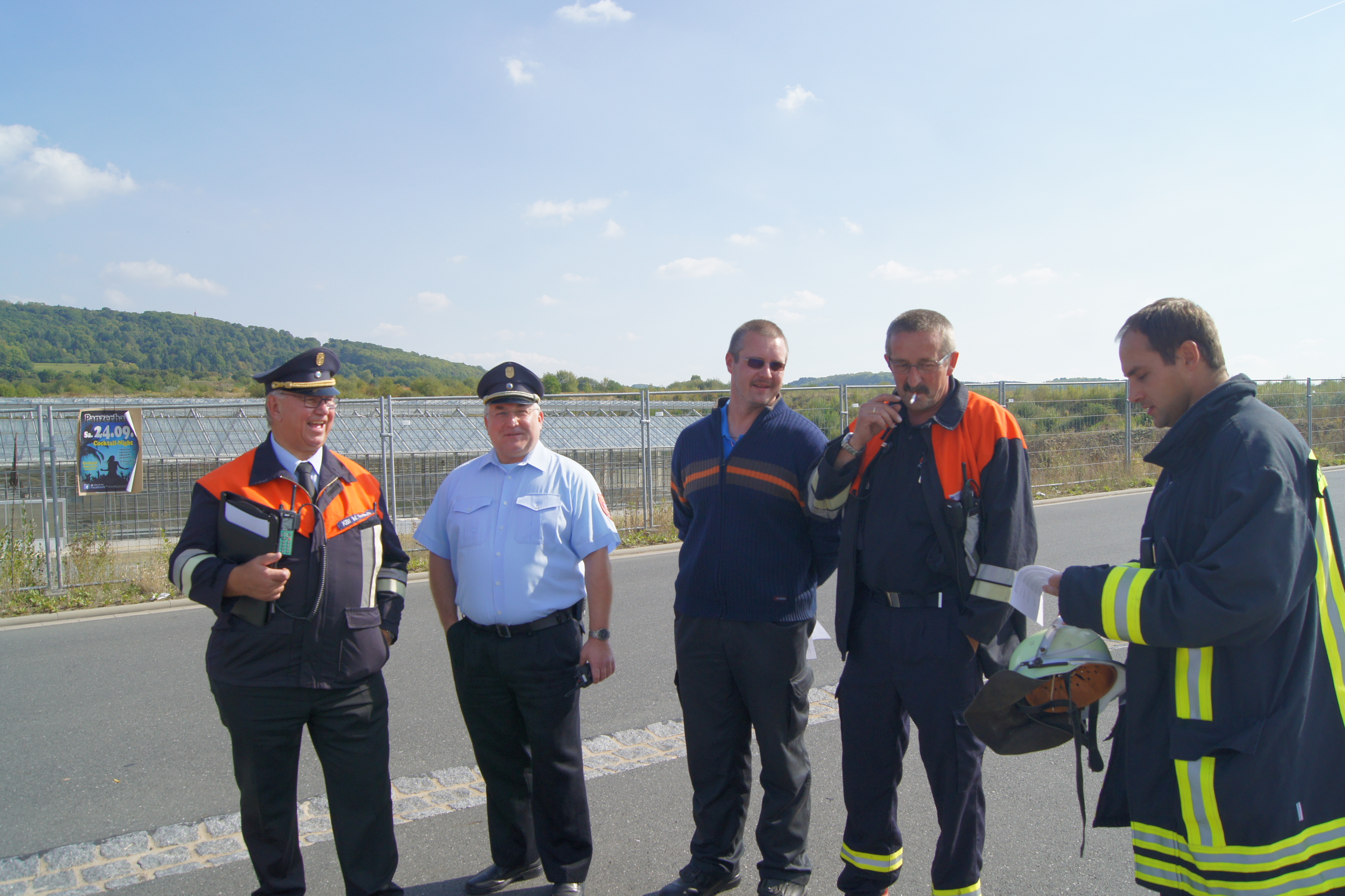 Die Übungsbeobachter, KBM Danny Hieckmann, KBM Christian Heidenreich, Schiedsrichter Heiko Schardt und Schiedsrichterin Renate Hohlweg waren sich am Ende mit Kreisbrandinspektor Winfried Prokisch und Kreisbrandrat Hermann Schreck einig: Übungsziel erreicht, die Aktion ein voller Erfolg !