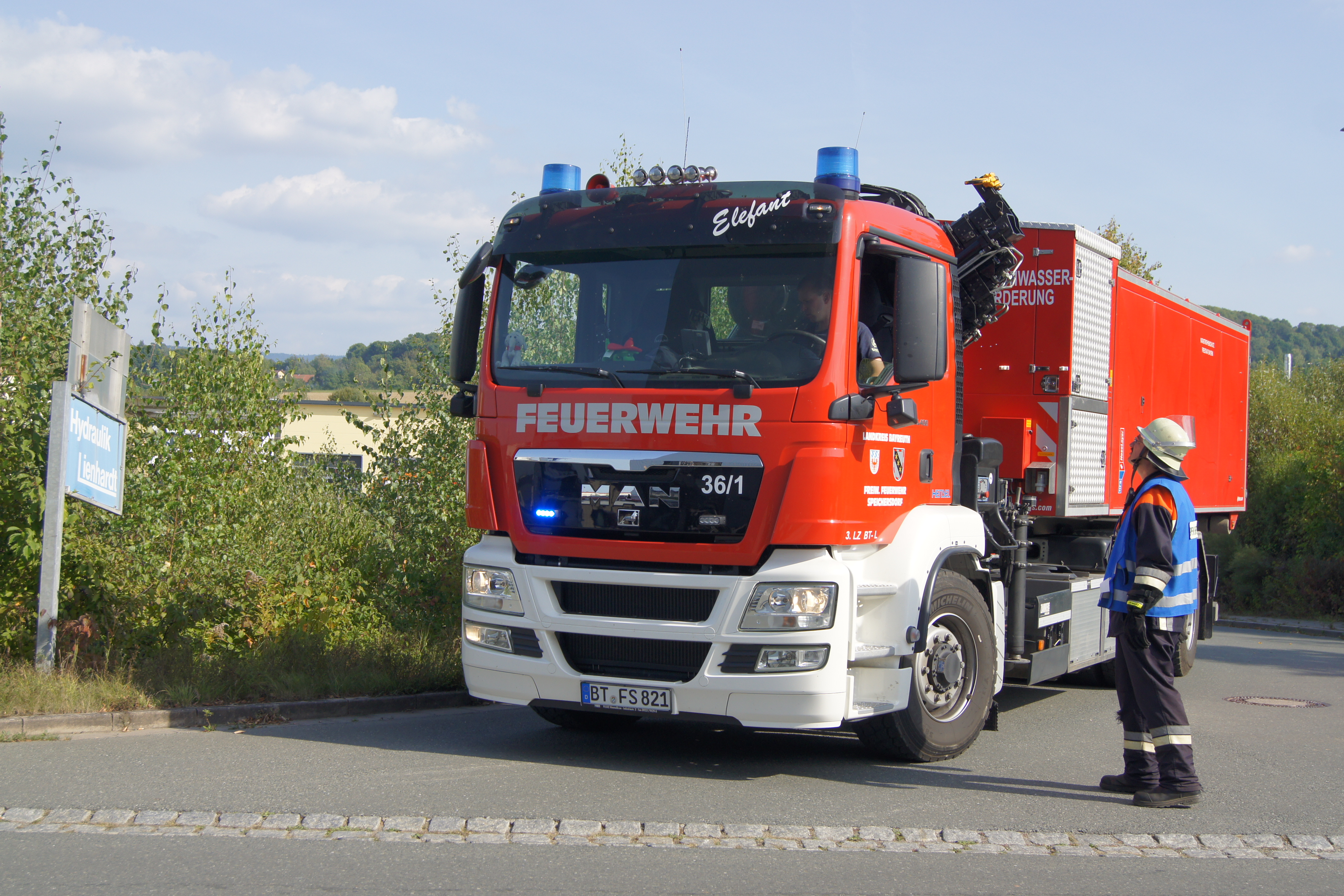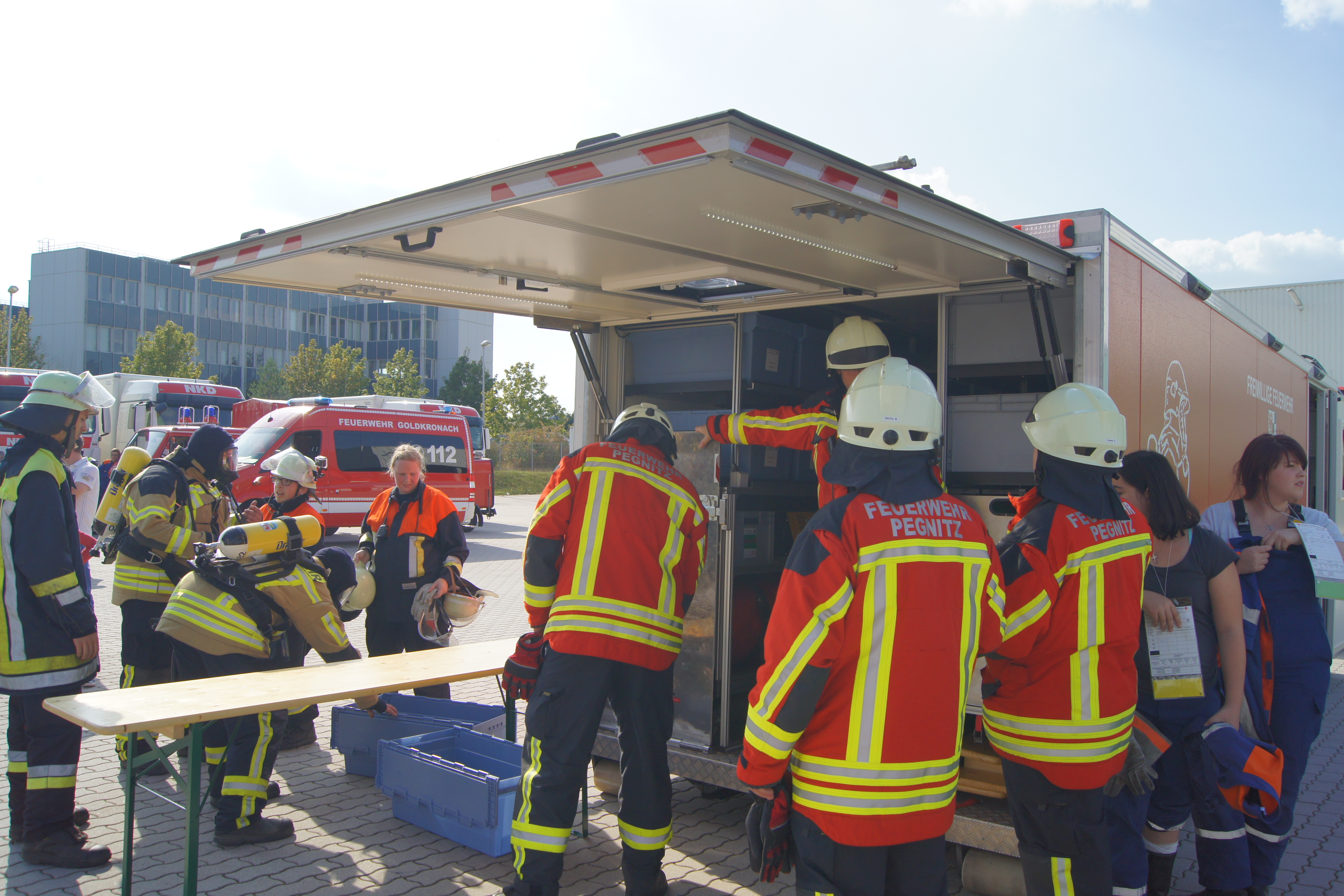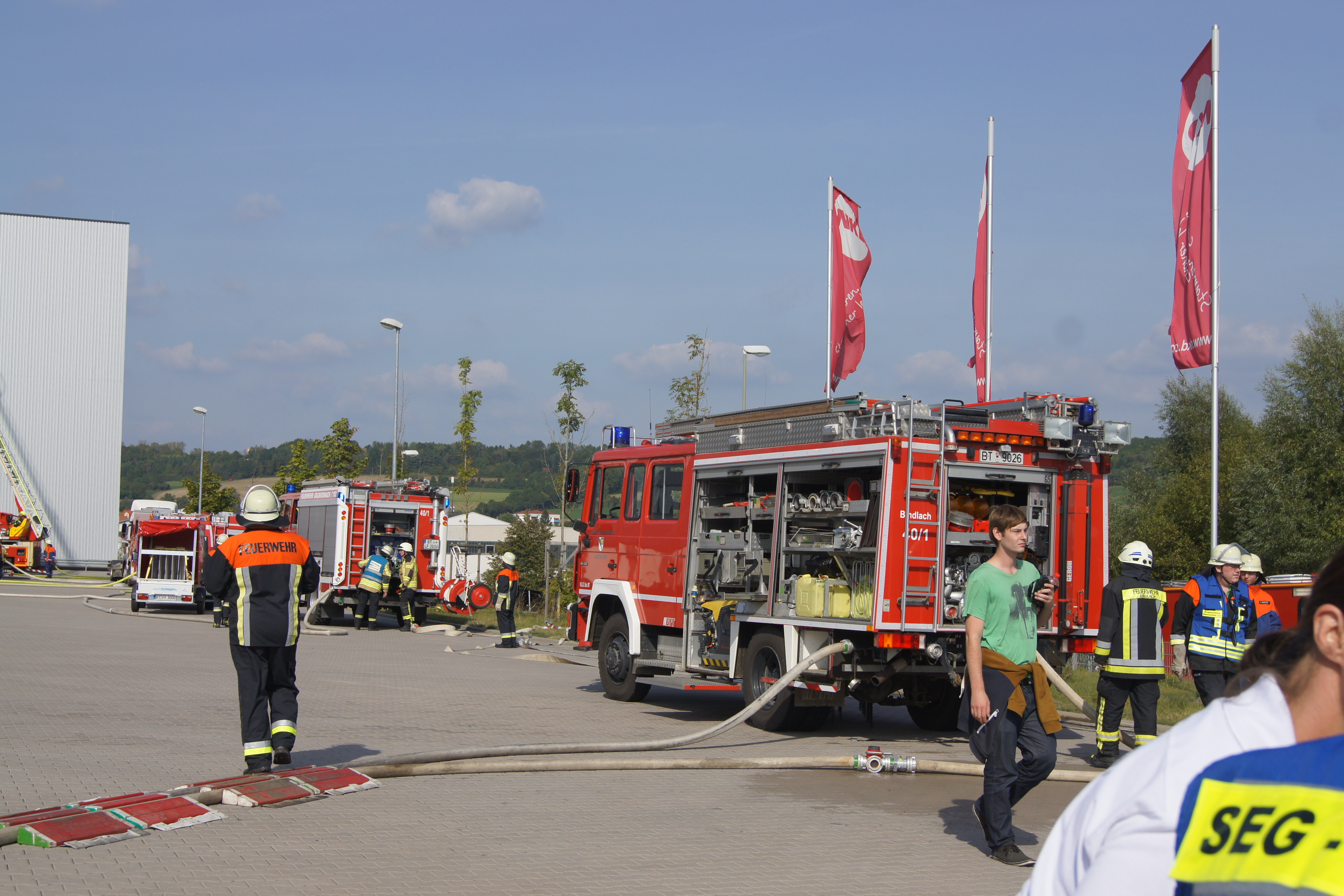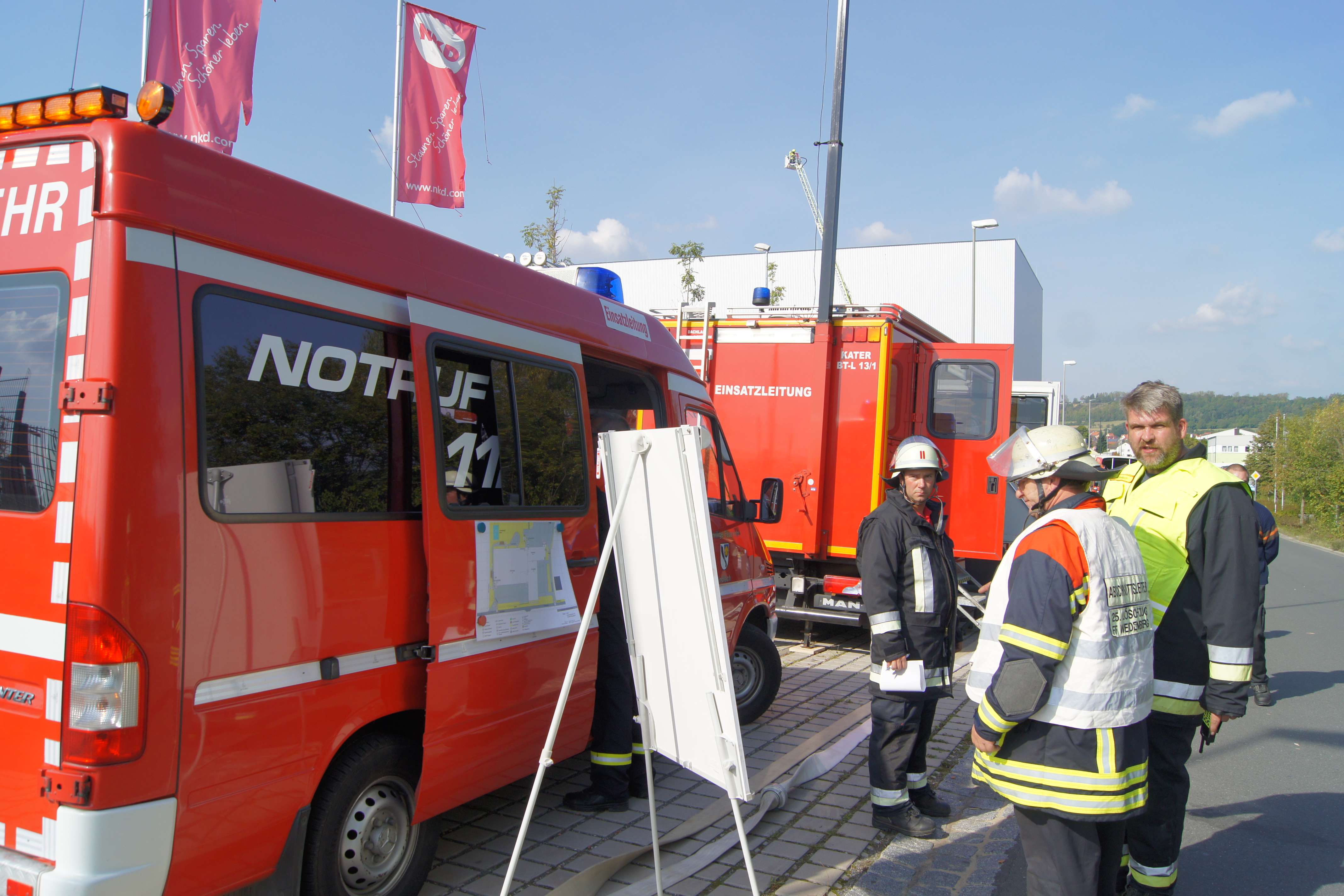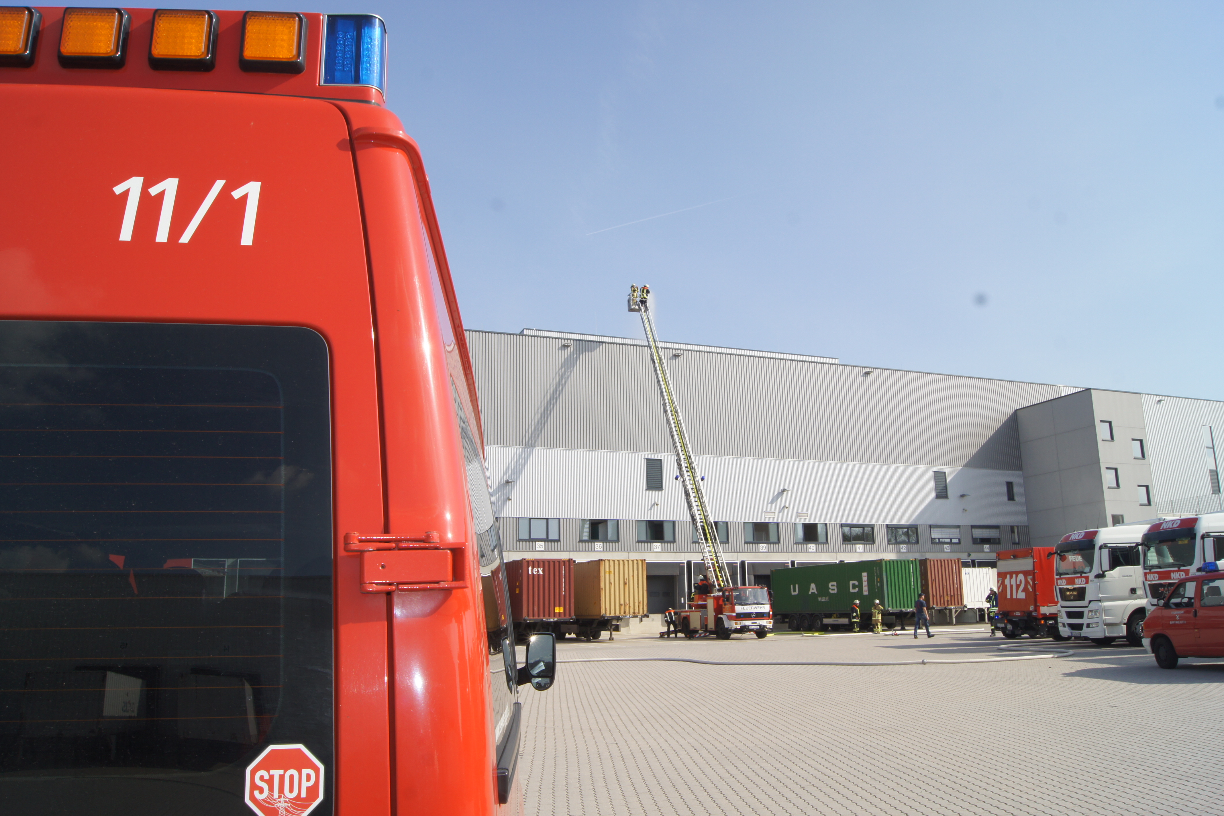 Ganz im Zeichen der Feuerwehr stand am Samstag des 24.09.2016 das Betriebsgelände der Firma NKD in Bindlach. Dort wurde um 14 Uhr Großalarm ausgelöst. Im Rahmen der Feuerwehraktionswoche war man von einem Brandausbruch in der Kommissionierung ausgegangen, das Hochregallager sowie der Umkleidetrakt waren gefährdet. Personen seien vermisst, die genaue Anzahl hingegen sei nicht bekannt, so die ersten Meldungen.