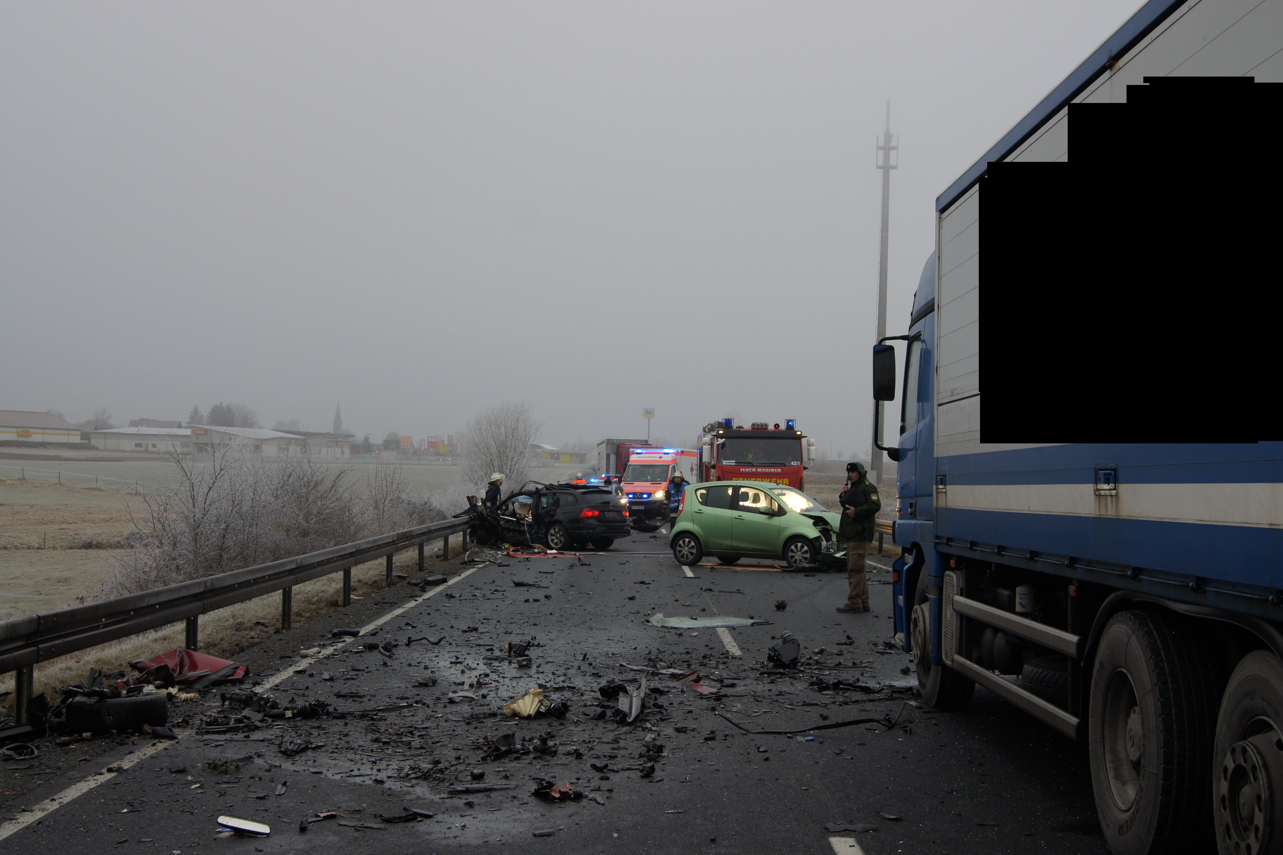 B22 / SPEICHERSDORF, LKR. BAYREUTH. Tödliche Verletzungen erlitten am Donnerstagmorgen zwei Autoinsassen bei einem Frontalzusammenstoß auf der Bundesstraße B22 bei Speichersdorf. In einem weiteren Fahrzeug, das in den Verkehrsunfall verwickelt war, erlitt der Fahrer leichte Verletzungen.