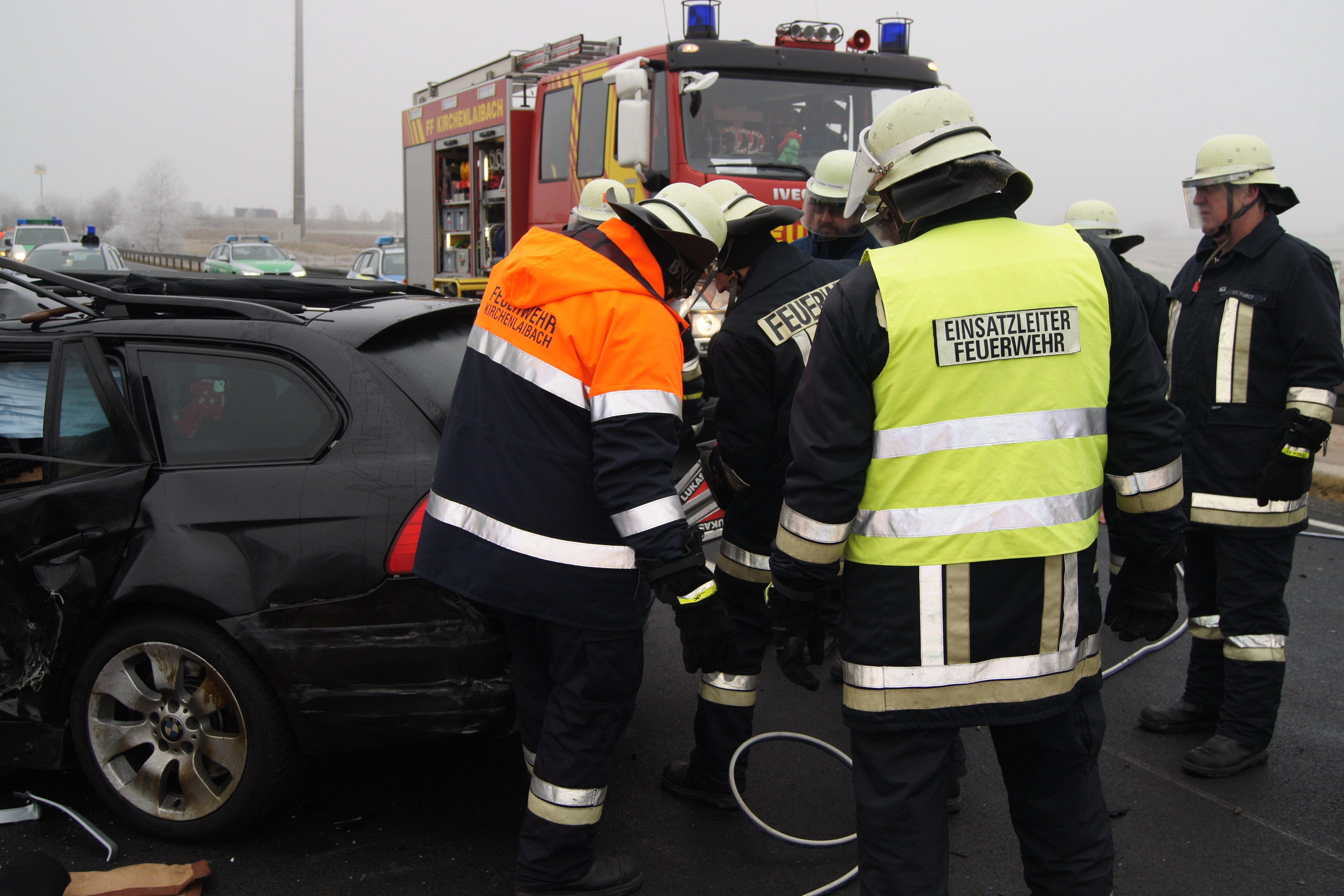 Zu einem schweren Verkehrsunfall wurden die Freiwilligen Feuerwehren Kirchenlaibach und Speichersdorf am Morgen des 22.12.2016 auf die Bundesstraße 22 auf Höhe Speichersdorf alarmiert. Den rasch eintreffenden Kräften bot sich an der Unfallstelle ein Bild der Verwüstung. Zwei Personen waren in ihren jeweiligen Fahrzeugen eingeklemmt, für beide kam jede Hilfe zu spät. Eine weitere Person wurde leicht verletzt dem Rettungsdienst übergeben.