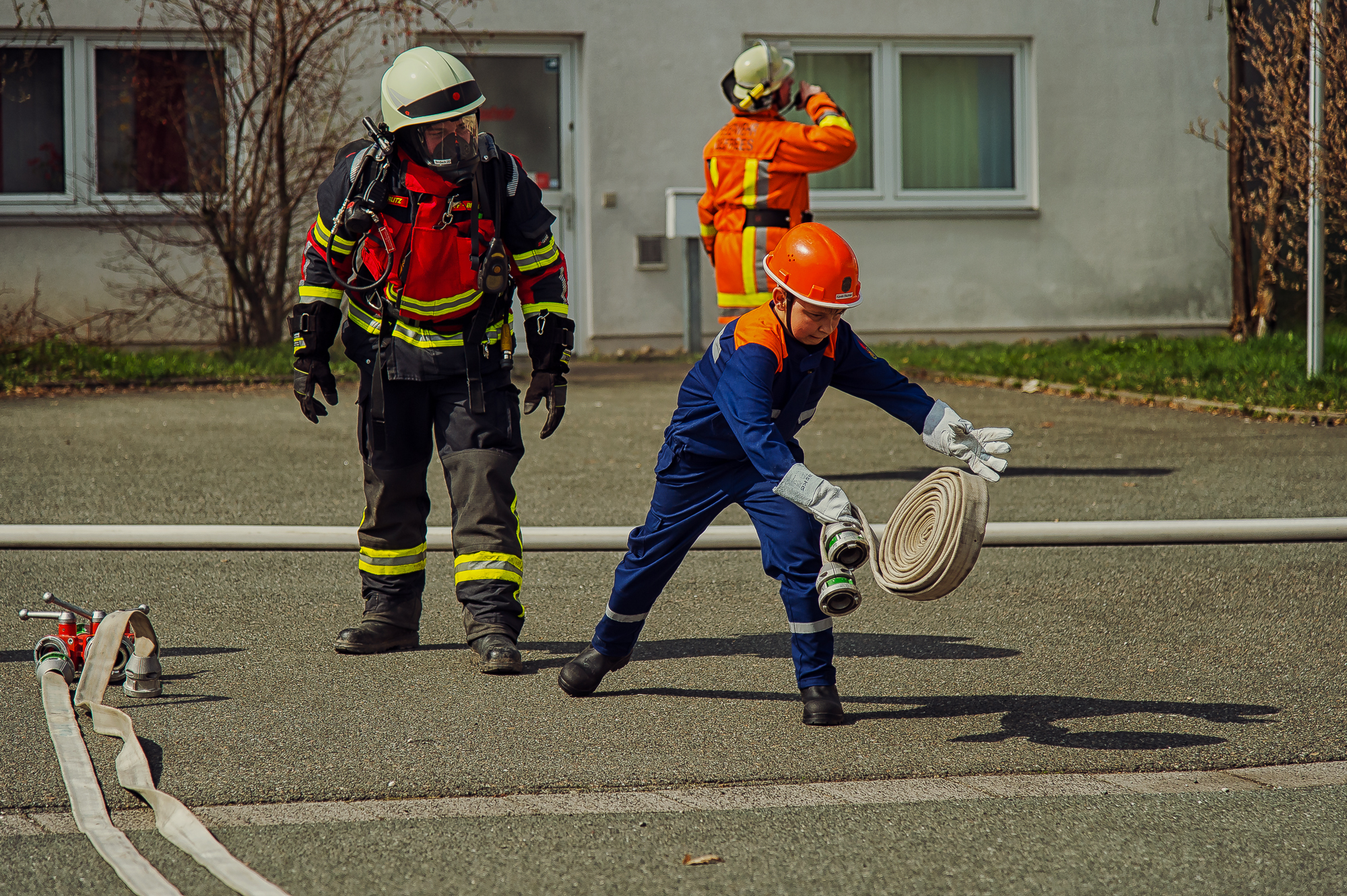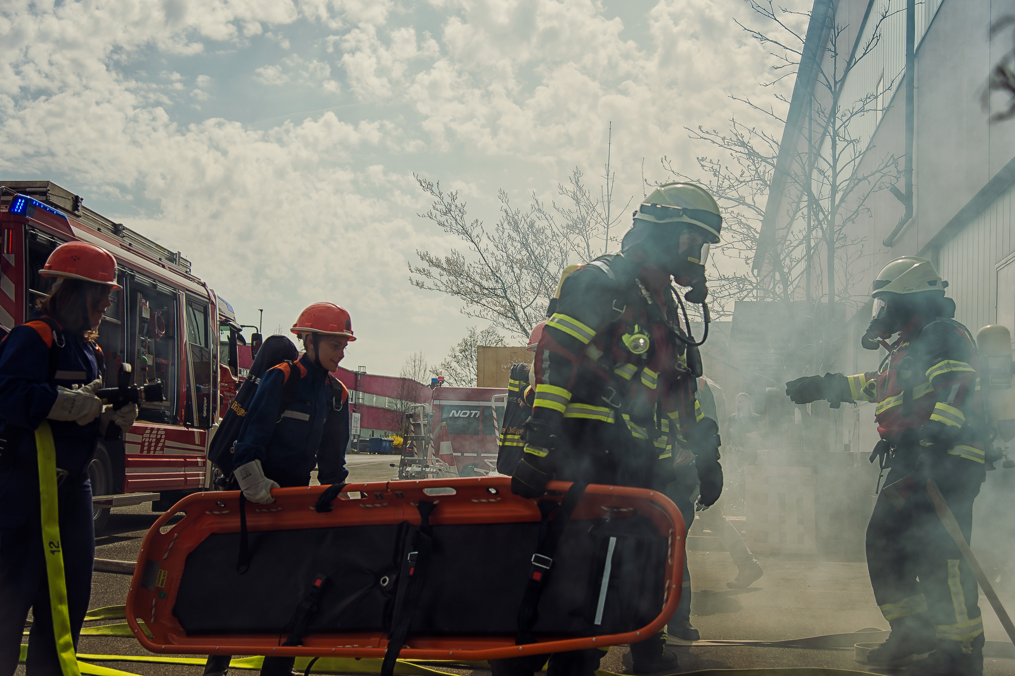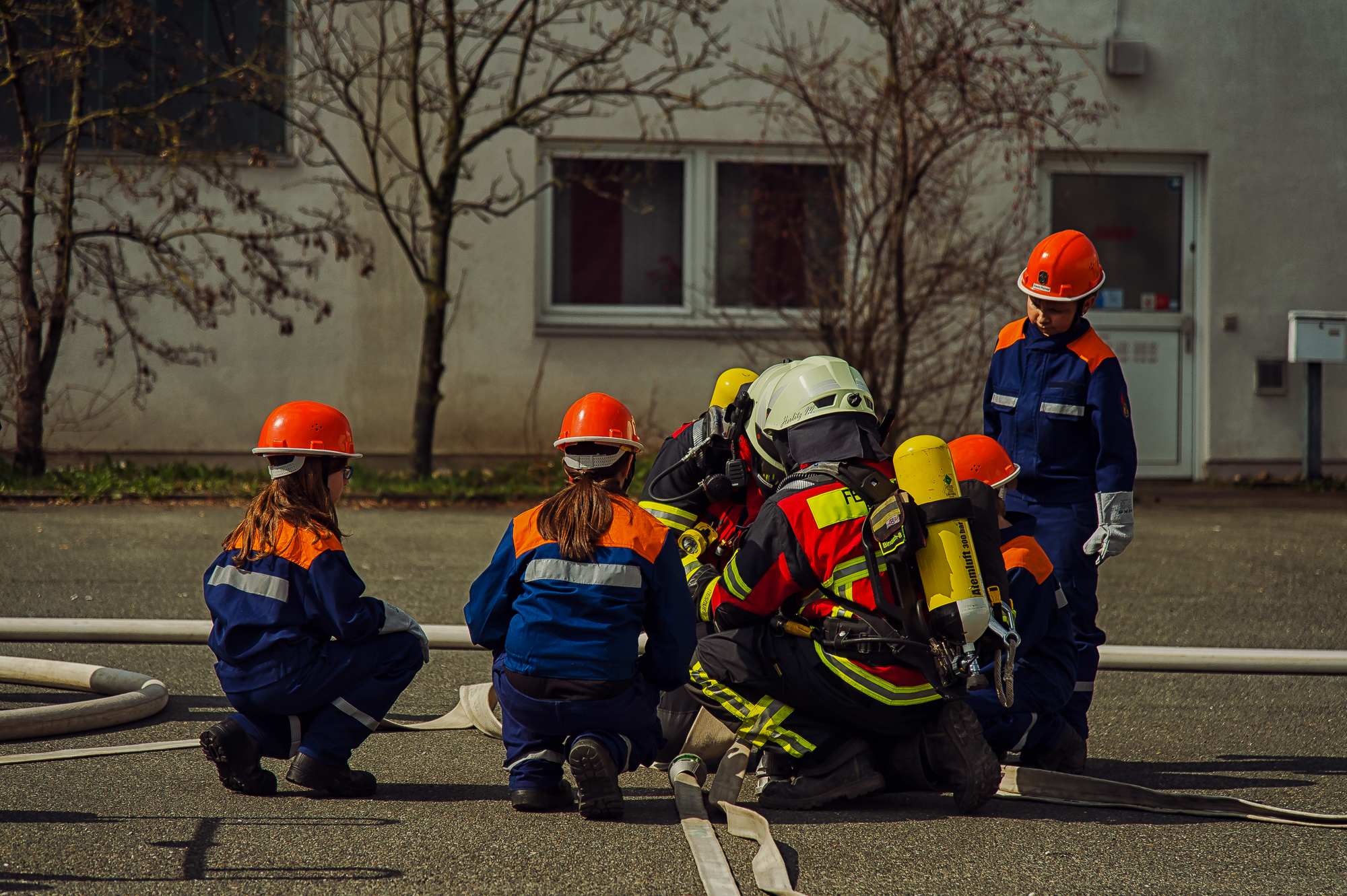 Die verantwortlichen Kommandanten Markus Strobel und Marco Neugebauer zogen dabei mit ihrem Jugendwart Andreas Weingut und einer Vielzahl an Helfern alle Register, um den zehn beteiligten Mädchen und Jungen einen ebenso lehrreichen wie unterhaltsamen Einblick in das umfangreiche Leistungsspektrum der Feuerwehr zu bieten. So wurden über den Tagesverlauf hinweg beispielsweise sechs verschiedene Übungen mit unterschiedlichen Themen, vom einfachen Brandmeldealarm bis hin zum komplexen Lagerhallenbrand, durchgeführt. Hinzu kamen natürlich praktische Ausbildungseinheiten und Vorführungen der benötigten Fahrzeuge und Gerätschaften, um das entsprechende Wissen vorher kurz zu vermitteln.