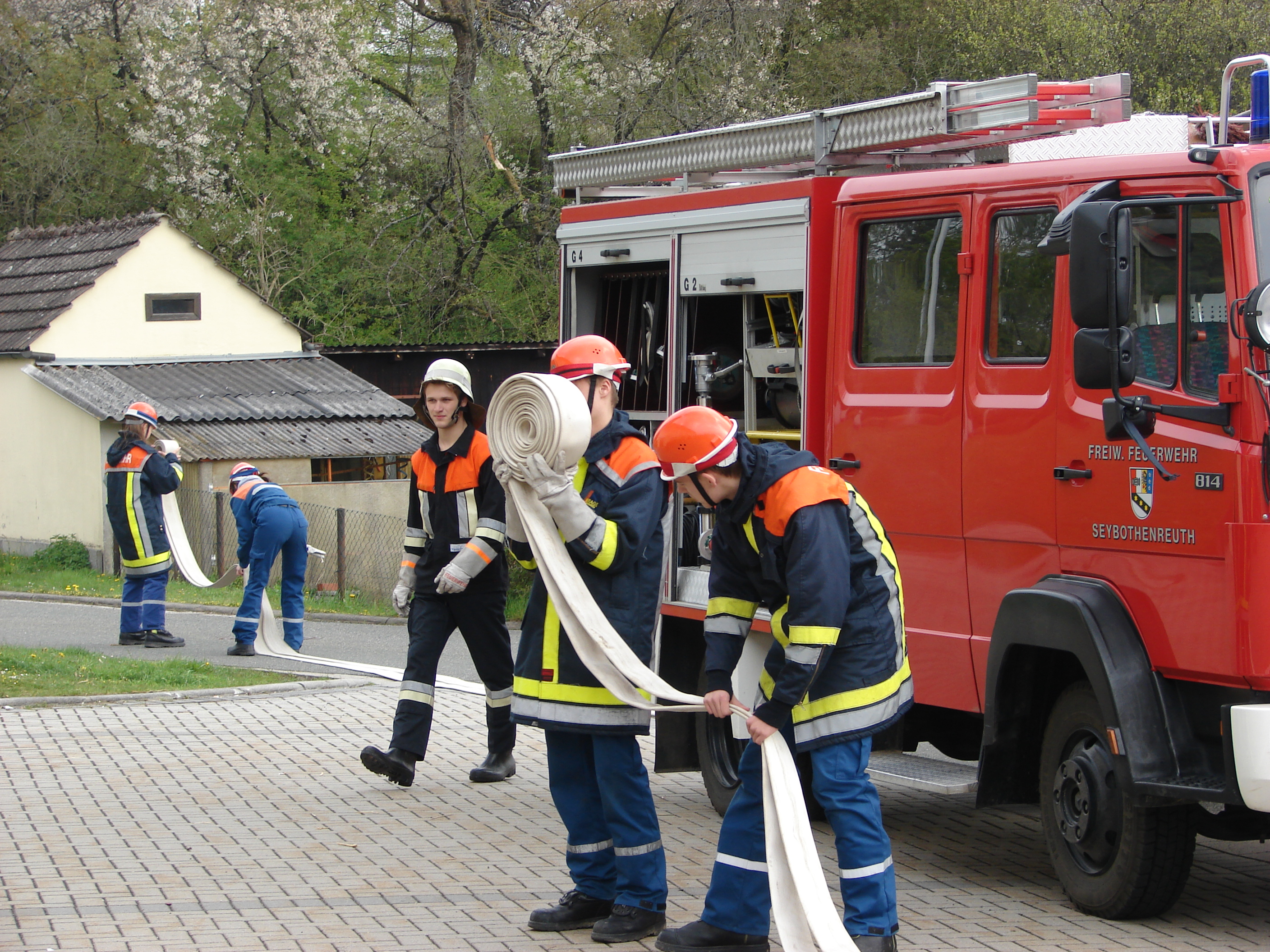 Seit Oktober 2016 lief die Ausbildung an den Standorten Haag und Seybothenreuth in Abendschulungen und an mehreren Samstagen, bzw. auch am ganzen Wochenende. Hier wurde den angehenden Feuerwehrkräften in theoretischen und praktischen Unterrichtseinheiten der Umgang mit den Einsatzmitteln, wie zum Beispiel diverse Strahlrohren, unterschiedlichen Schlauchtypen, Matrial zur Absturzsicherung, Geräte zur einfachen technischen Hilfeleisttung usw. bei gebracht. Ein Abend nahm auch der Umgang mit besonders belastenden Einsätzen ein. Den jungen Einnsatzkräften wurden hier Möglichkeiten aufgezeigt, wie sie in Zukunft mit physische und psychische Belastungen umgehen können. In einer weiteren Schulungseinheit wurde das Verhalten bei Einsätzen und in der Öffentlichkeit gelehrt. Hier gehört nicht nur die richtige Kleiderordnung, sondern im mehr der richtige Umgang mit den sogenannten „Sozialen Medien“. Nicht alles was dort geschied ist auch legitim!