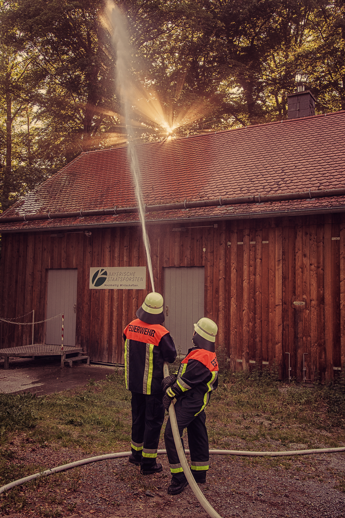 Ein angenommener Brand in der Küche der Eckersdorfer Gaststätte Waldhütte bildete am Abend des 19. Juni 2017 die Ausgangslage für eine anspruchsvolle Einsatzübung von Feuerwehr und Rettungsdienst. Insgesamt 95 Kräfte aus Neustädtlein, Oberwaiz, Heinersreuth, Altenplos, Eckersdorf und Donndorf sowie das Bayerische Rote Kreuz aus Mistelgau nahmen an der von Kreisbrandmeister Daniel Ermer ausgearbeiteten Übung teil. Hauptaugenmerk galt der Rettung von vermissten Personen unter schwerem Atemschutz, der Brandbekämpfung sowie dem Aufbau einer Löschwasserversorgung. Hierzu wurde insbesondere ein Pendelverkehr mit wasserführenden Fahrzeugen eingerichtet. Ein herzliches Dankeschön gilt dem Team der Waldhütte, das die Teilnehmer bei der abschließenden Nachbesprechung verpflegte.