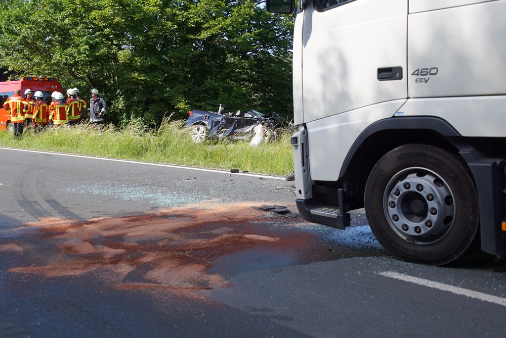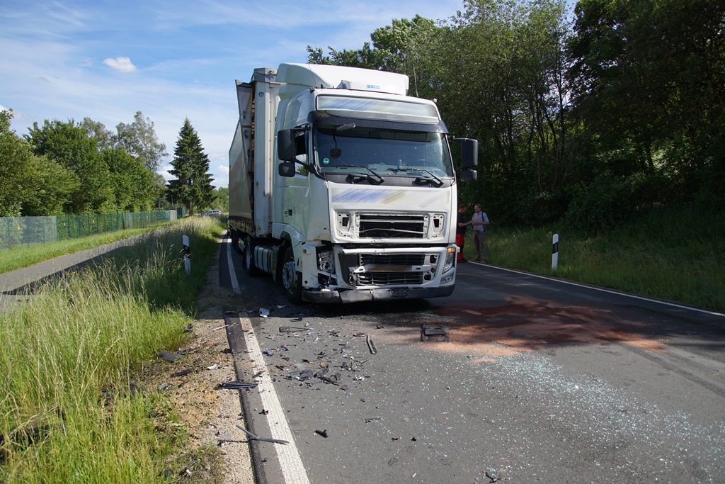 Mit dem Alarmstichwort „Verkehrsunfall – Person eingeklemmt“ wurden am Nachmittag des 12. Juni 2017 die Feuerwehren Hainbronn und Pegnitz auf die B 2 Richtung Bayreuth alarmiert. Bereits auf der Anfahrt der Einsatzkräfte konnte jedoch schon Entwarnung gegeben werden, dass sich keine Person mehr in den beteiligten Fahrzeugen befindet. Ein PKW war frontal mit einem entgegenkommenden LKW zusammen gestoßen. Die Feuerwehren unterstützten vor Ort den Rettungsdienst, kümmerten sich um die Verkehrsabsicherung und nahmen ausgelaufene Betriebsstoffe auf.
