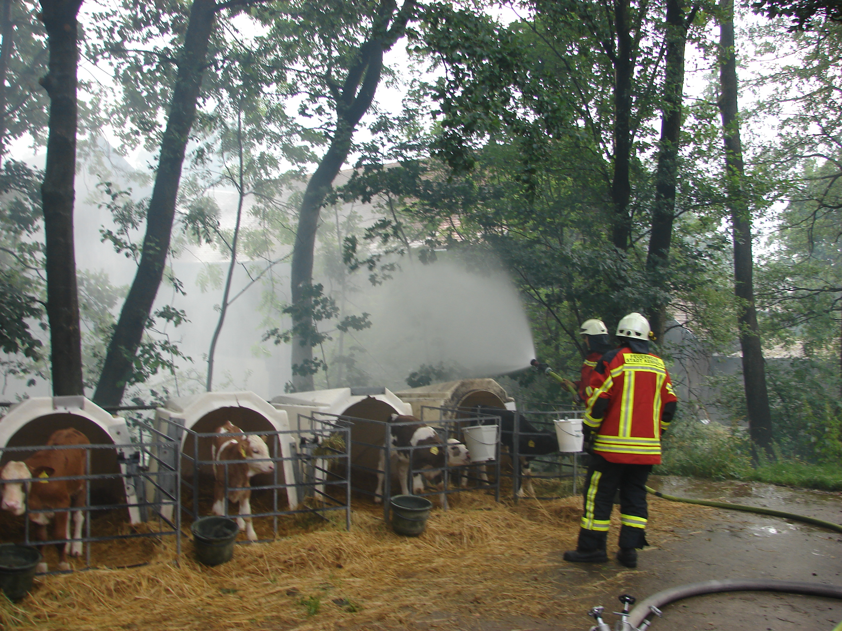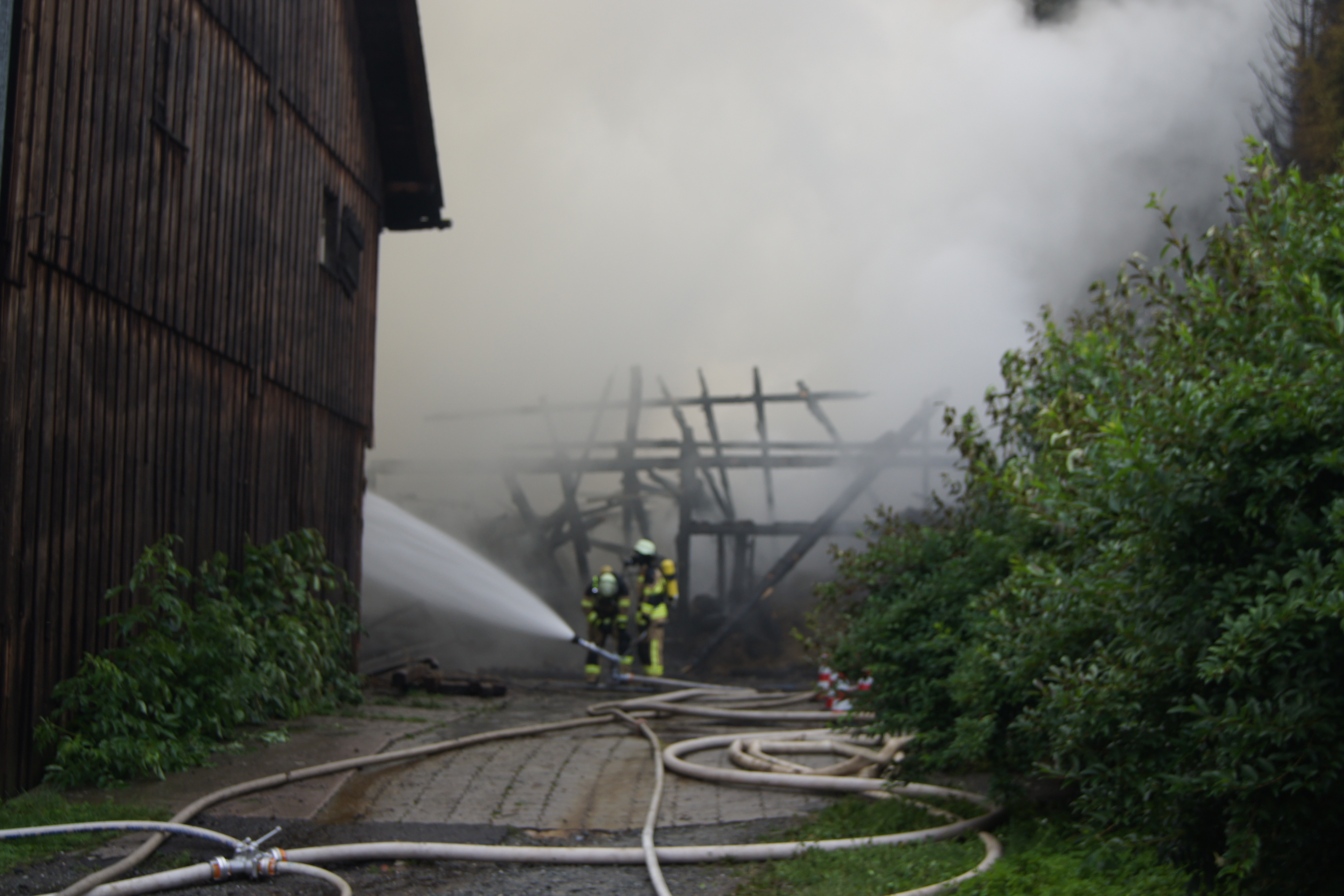 Nach rund zwei Stunden konnte „Feuer aus – Nachlöscharbeiten“ vermeldet werden, die sich jedoch bis in den Nachmittag erstreckten. Mittels eines Baggers wurde das Brandgut auseinander gezogen und abgelöscht. Obwohl der betroffene Landwirt nach Brandausbruch noch selbst das Tor des brennenden Gebäudes öffnete und sich so einige Tiere aus den Flammen retten konnten, kam für fünf Tiere leider jede Hilfe zu spät.