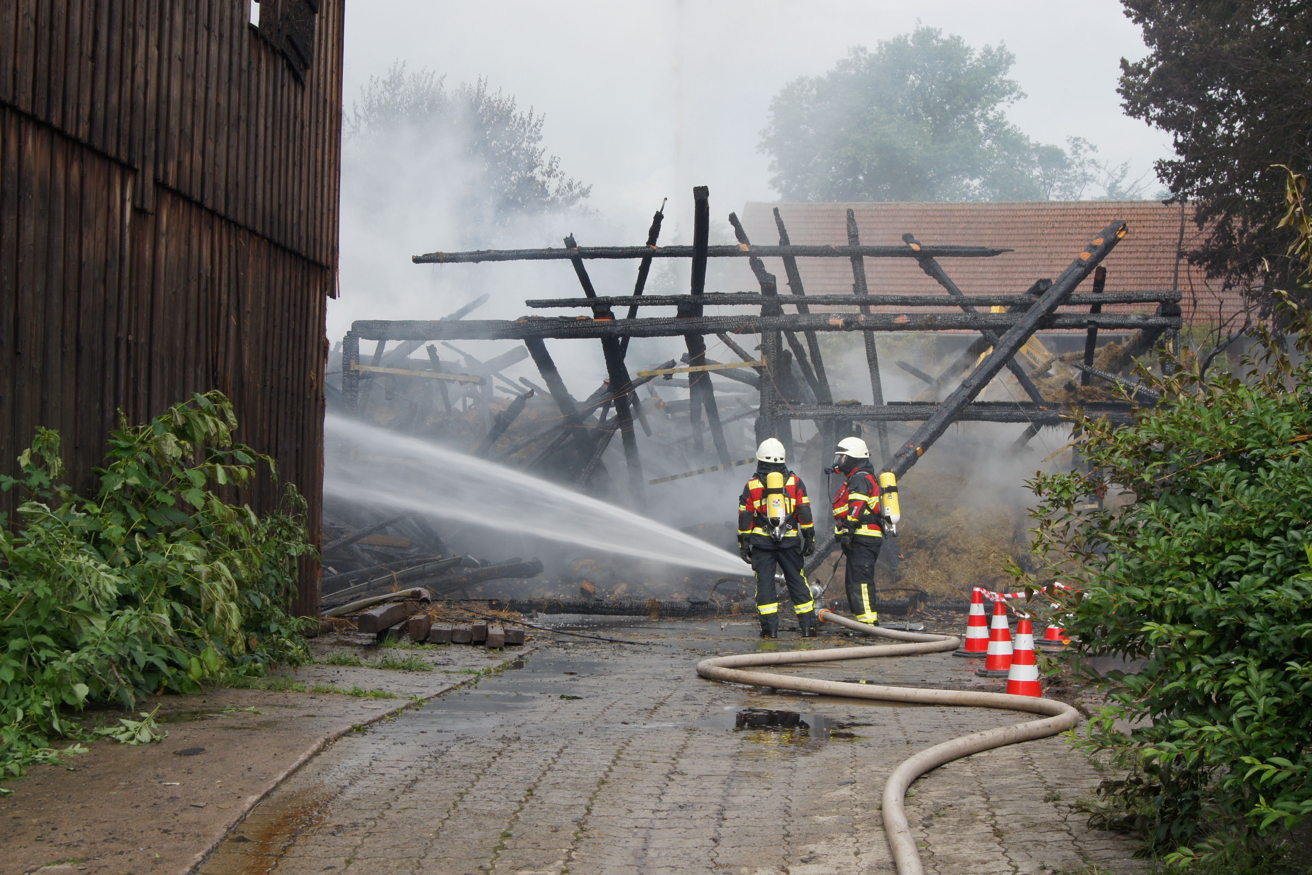 Während den mehrstündigen Löscharbeiten, die einsatztechnisch in sechs Abschnitte eingeteilt waren, wurde klar, dass das Unglück durchaus weiteren Schaden hätte anrichten können. In mehrere Bäume hatten Blitze eingeschlagen, herumfliegende Holzkohlen wurden von der Feuerwehr in weiteren Anwesen gefunden und mit Kleingerät abgelöscht, um weiteren Schaden zu verhindern.