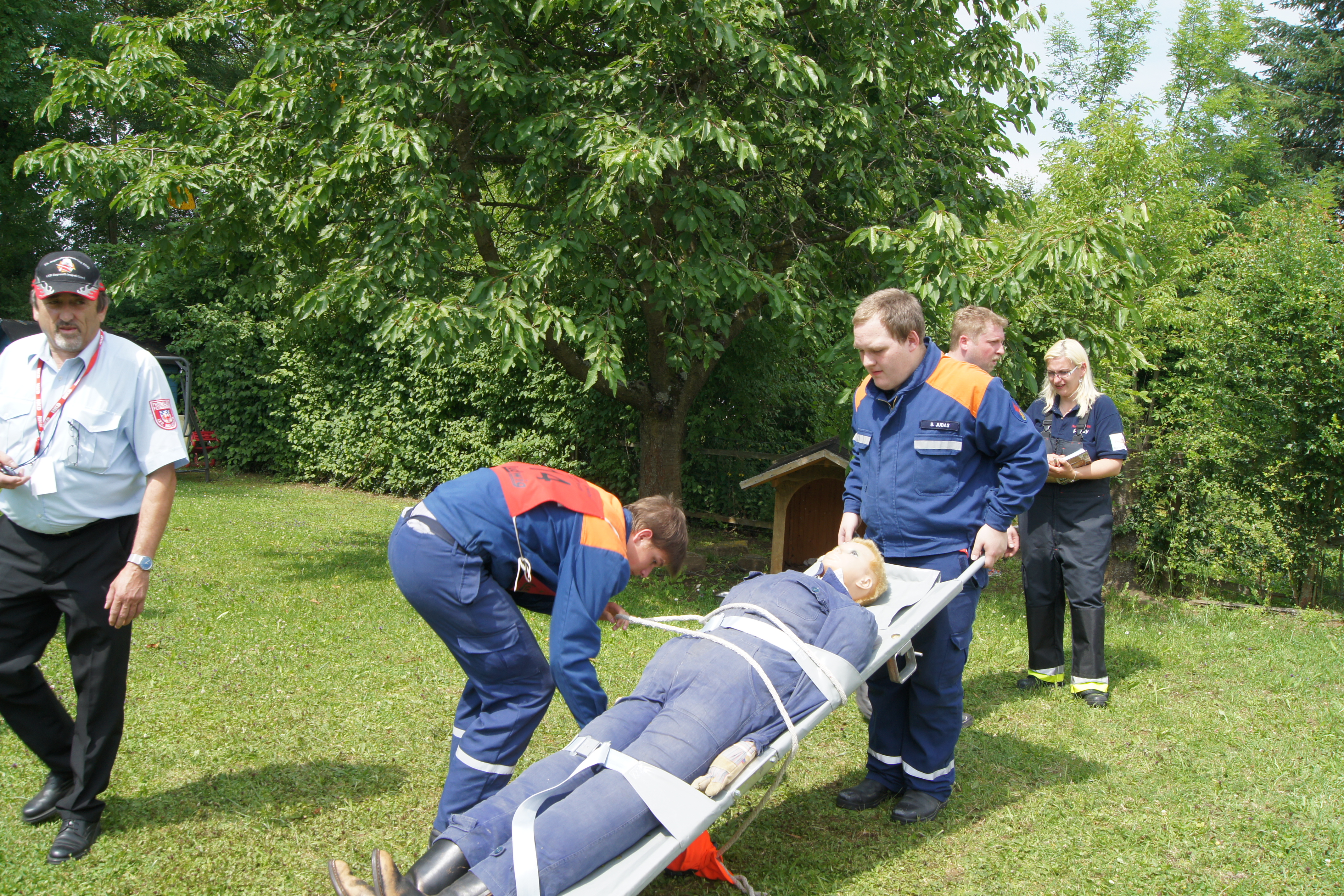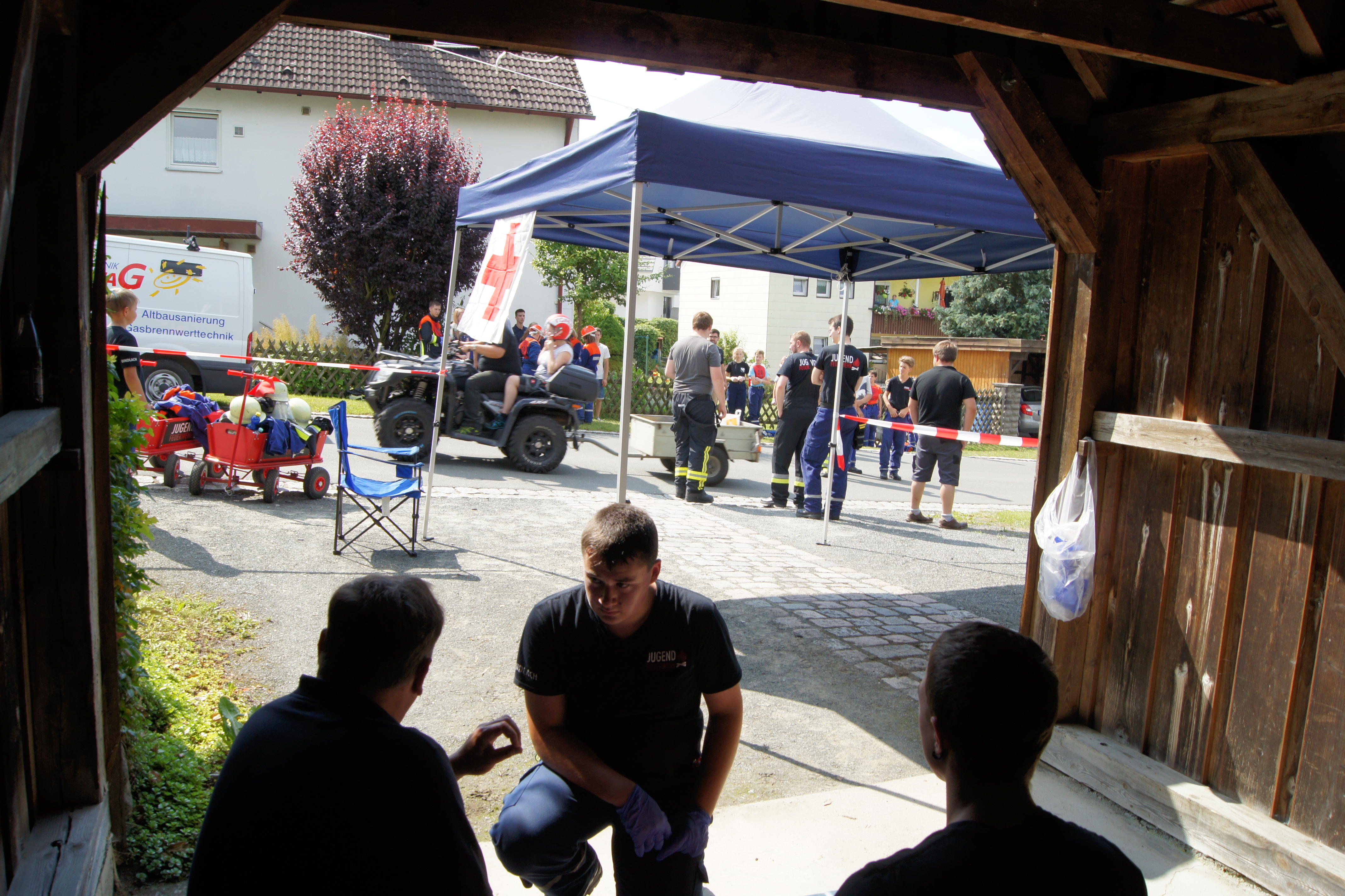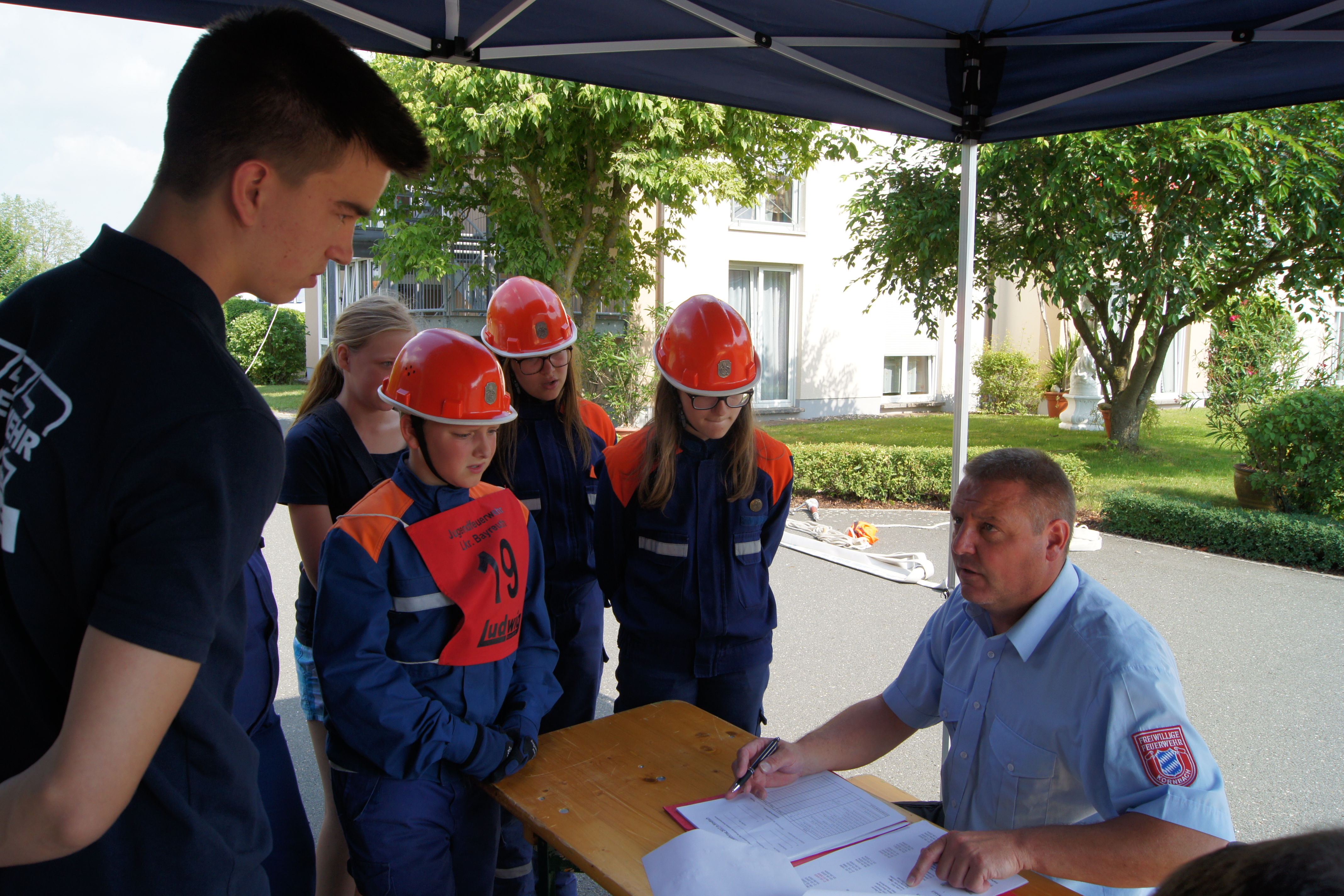 Kreisbrandmeister a. D. und Urgestein der Bindlacher Wehr, Karlheinz Jung, fungierte als „Starter“ für die 25 Staffeln, die sich ab 9 Uhr im 5-Minuten-Takt auf die rund sechs Kilometer lange Strecke begaben. Zu absolvieren waren sieben Übungsstationen: Gerätetransport, Erste-Hilfe-Maßnahmen, Löschangriff, Knoten und Stiche, Gefahrgut und Hinweiszeichen, Theoretische Prüfung und Kartenkunde. Bei bestem Wetter ging der Rundkurs durch Wohngebiete und herrliche Natur.
