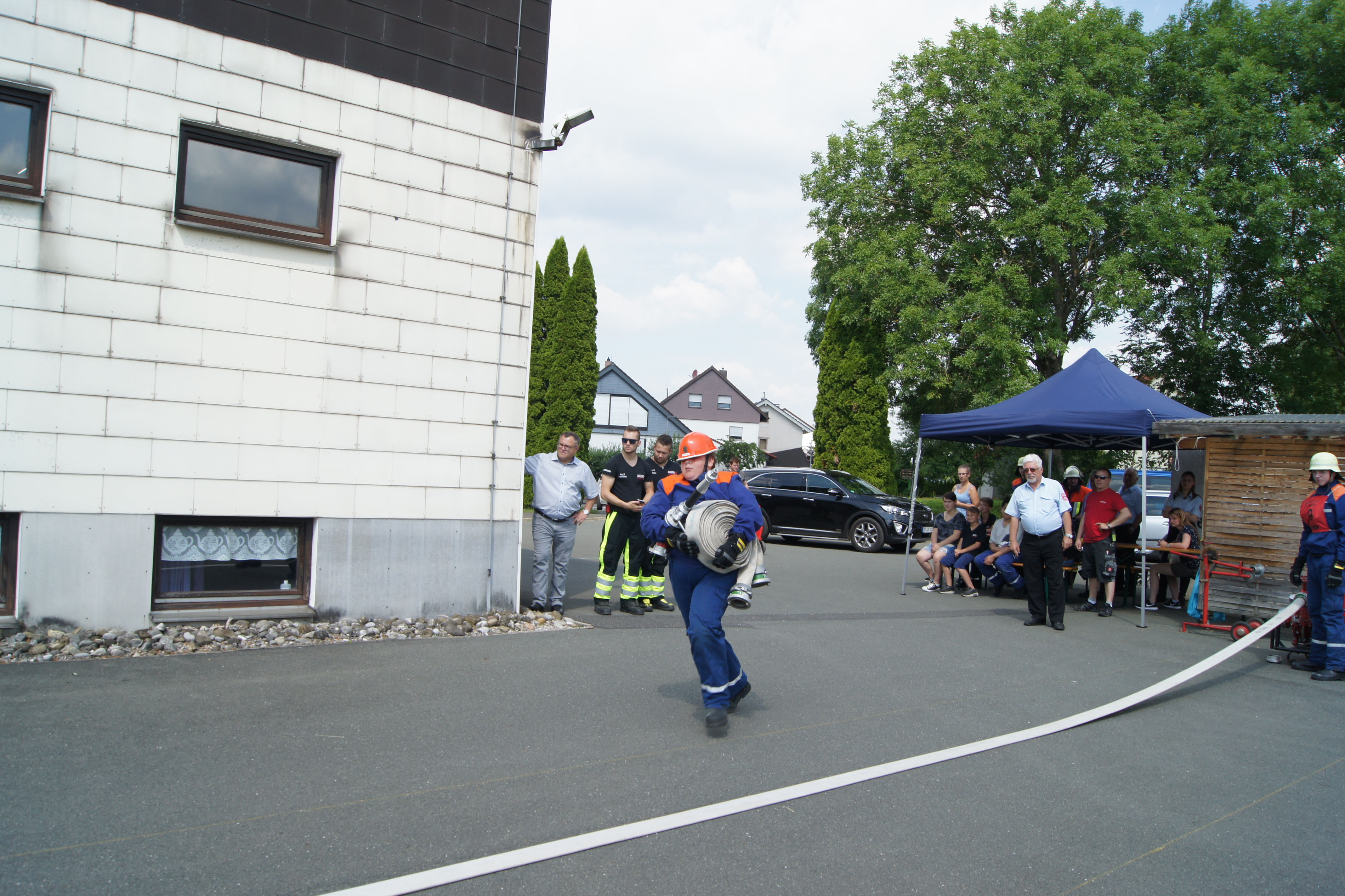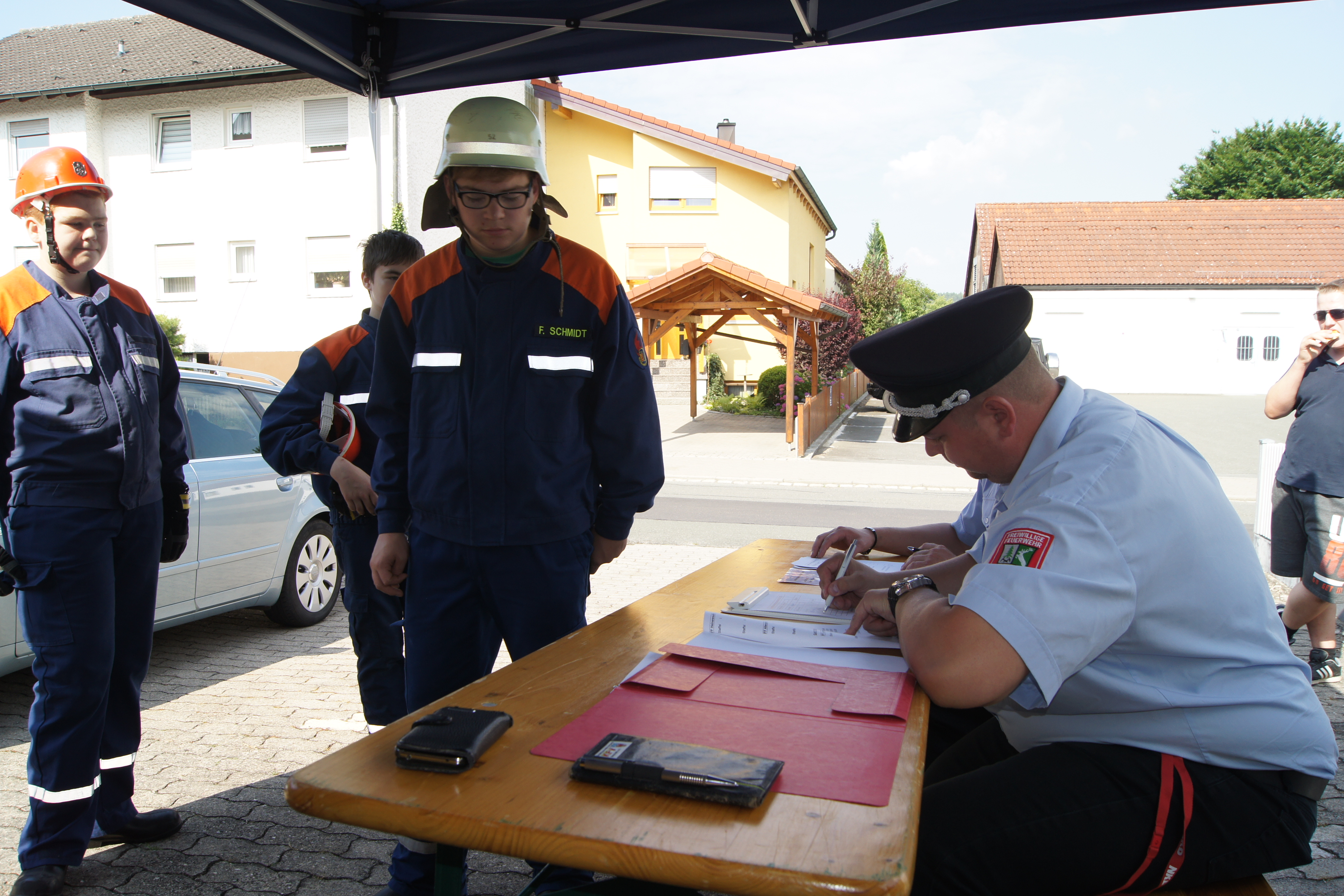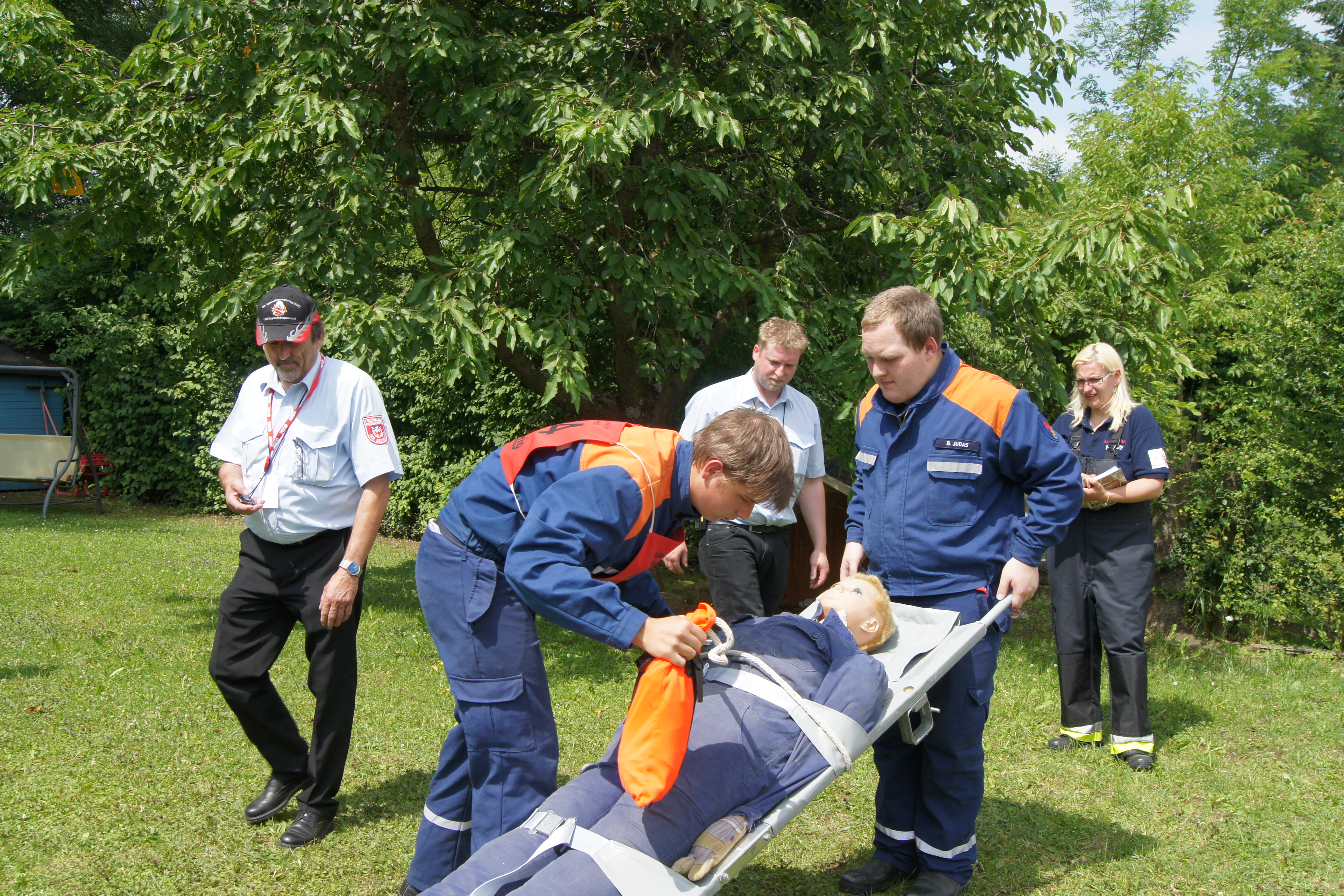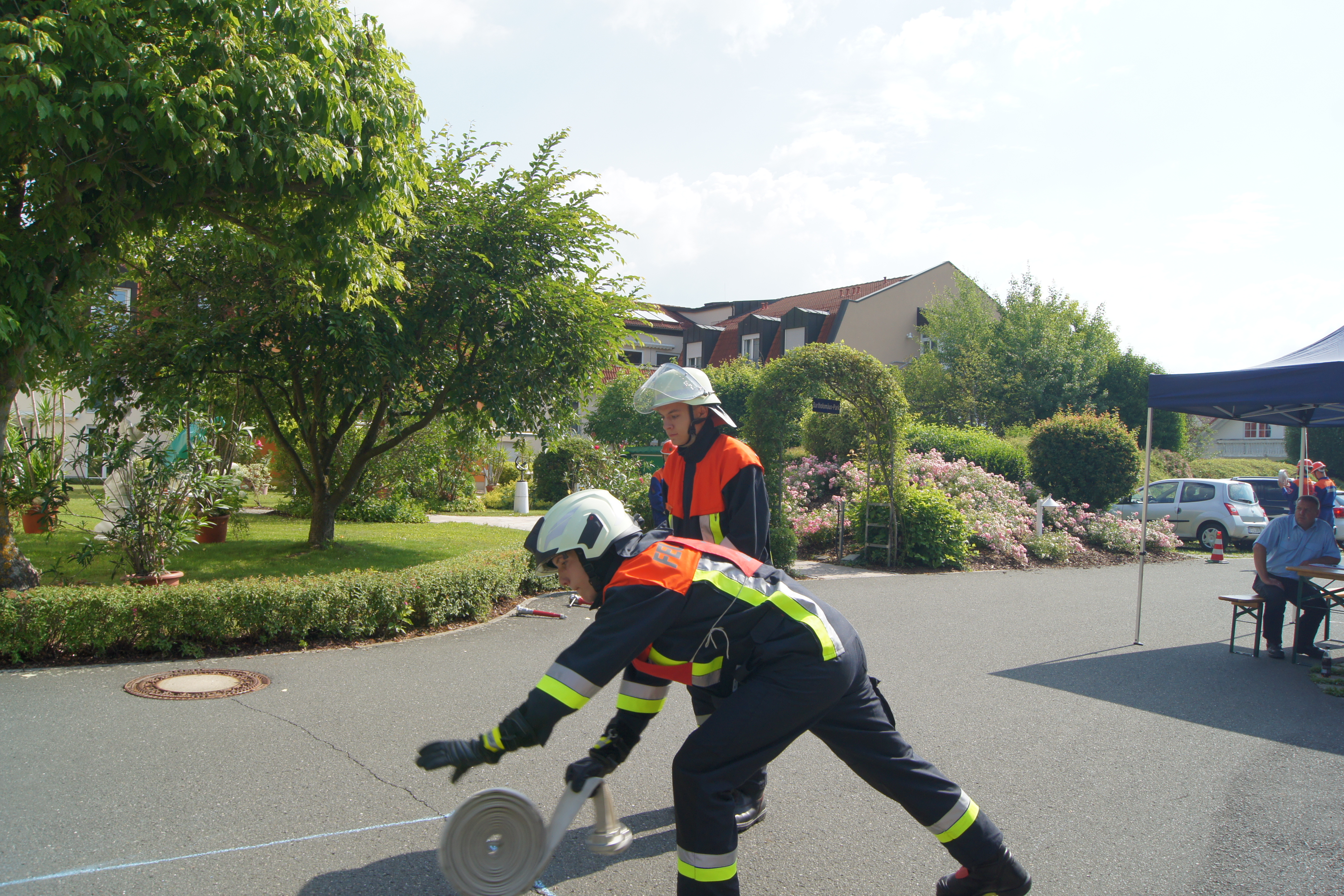 Kreisbrandmeister a. D. und Urgestein der Bindlacher Wehr, Karlheinz Jung, fungierte als „Starter“ für die 25 Staffeln, die sich ab 9 Uhr im 5-Minuten-Takt auf die rund sechs Kilometer lange Strecke begaben. Zu absolvieren waren sieben Übungsstationen: Gerätetransport, Erste-Hilfe-Maßnahmen, Löschangriff, Knoten und Stiche, Gefahrgut und Hinweiszeichen, Theoretische Prüfung und Kartenkunde. Bei bestem Wetter ging der Rundkurs durch Wohngebiete und herrliche Natur.