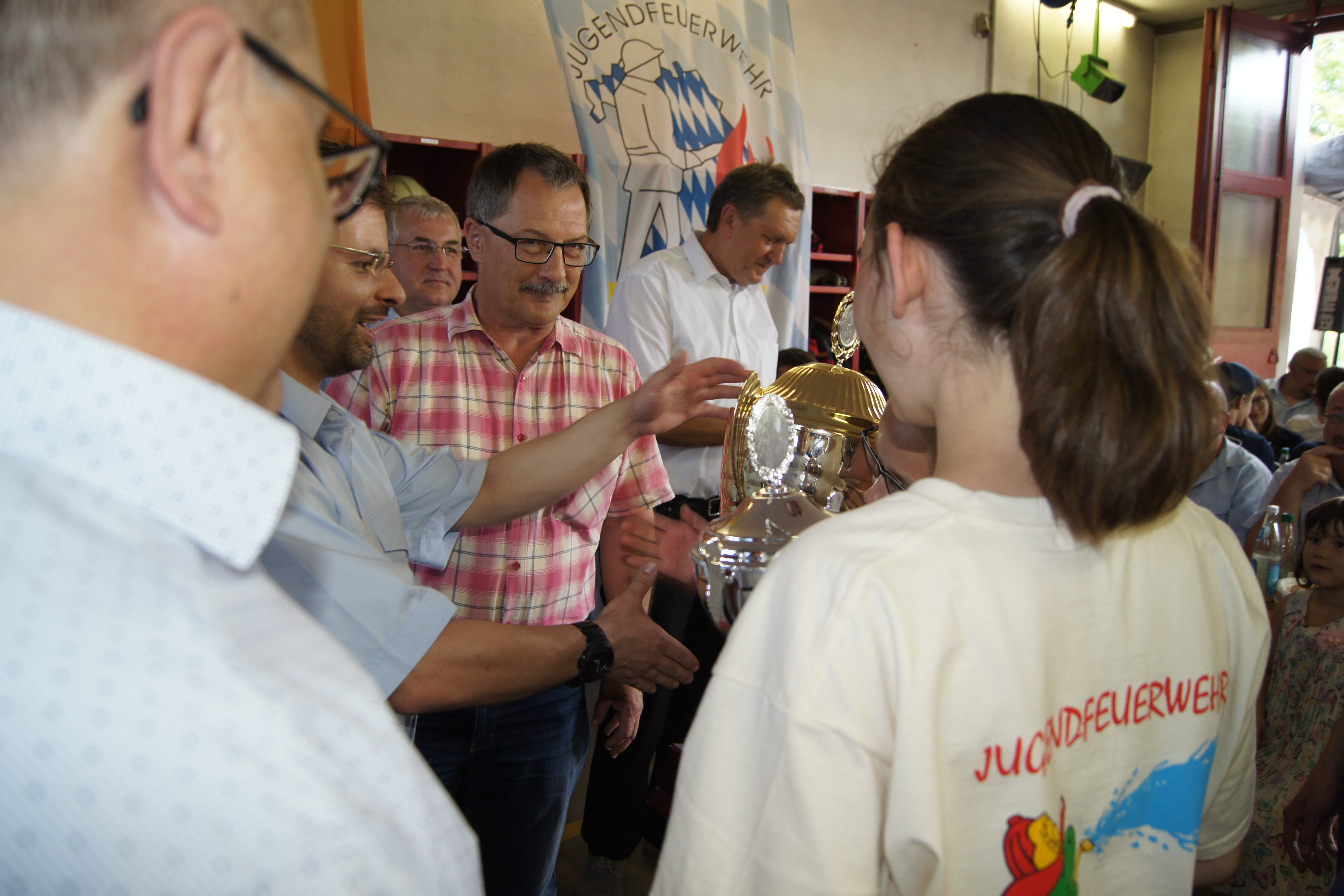 Am Ende ging es natürlich um die Punkte und Pokale, wenngleich Kreisbrandinspektor Winfried Prokisch ausrief: „dabei sein ist Alles – Ihr alle seid Gewinner!“ Den ersten Platz schließlich belegte die Gruppe der Feuerwehr Wasserknoden II, die sich somit für den Bezirksentscheid qualifiziert hat. Gefolgt wurde sie auf Platz 2 von der gastgebenden Feuerwehr Bindlach I und Heinersreuth I, die von ihren Führungskräften und Bürgermeistern gebührend gefeiert wurden.