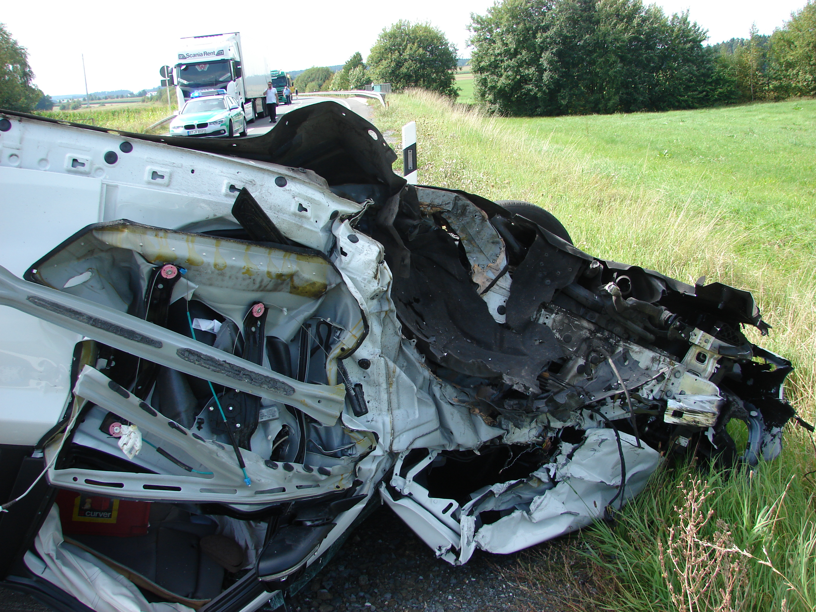 Zu einem schweren Verkehrsunfall kam es am Mittwoch, den 30. August 2017 gegen 14 Uhr auf der B 22 bei Speichersdorf. Die Leitstelle Bayreuth/Kulmbach alarmierte die Feuerwehren aus Speichersdorf und Kirchenlaibach kurz nach 14 Uhr mit dem Alarmstichwort: Verkehrsunfall auf der B 22 zwischen den beiden Anschlussstellen Speichersdorf – Personen eingeklemmt, Fahrzeug beginnt zu brennen.