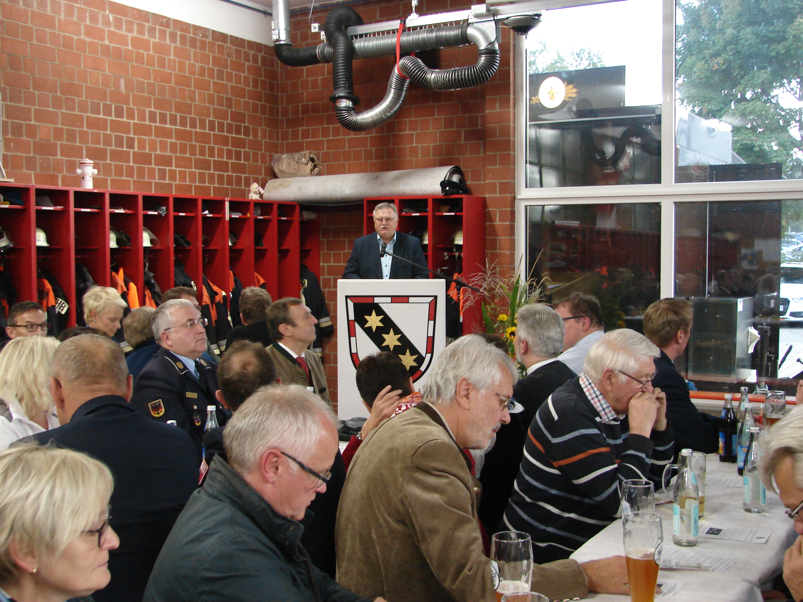Kommandant Roland Steininger ging in seiner Rede auf das Bautagebuch ein. 2013 wurde über den Neubau oder die Sanierung im Gemeinderat beraten. Nach weislicher Beratung kam man zum Entschluss der Sanierung und des Anbaus. Die Baumaßnahmen wurden in drei Bauabschnitten eingeteilt. Der Abschnitt ein war der Anbau für die Container und die Errichtung des Waschplatzes. Im nächsten Stepp wurden die Tore und Fenster erneuert, die Absauganlage eingebaut. Der letzte Bauabschnitt betraf den Schulungsraum und ein Erweiterungsbau wurde errichtet. Alleine im Bauabschnitt drei wurden von den Kameradinnen und den Kameraden 1.400 Stunden Arbeitszeit eingebracht, zudem steuerte der Verein die beachtliche Summe von 15.000 Euro zu, damit vor allem die neue Küche finanziert werden konnte. Hierfür bedankte sich Bürgermeister Manfred Porsch, aber auch für die über 2.400 Arbeitsstunden, die in den letzten drei Jahren insgesamt freiwillig zu den normalen Feuerwehrdienst geleistet wurden. Stolz sei er auf seine Feuerwehren, besonders auf Roland Steininger und seinen Stellvertreter Florian Sehnke, die es immer wieder schafften, die Mannschaft zu motivieren. So wurde das Gerätehaus mit einer Summe von 1,2 Millionen Euro auf den neuesten Stand der Technik gebracht und dies auch noch unfallfrei.