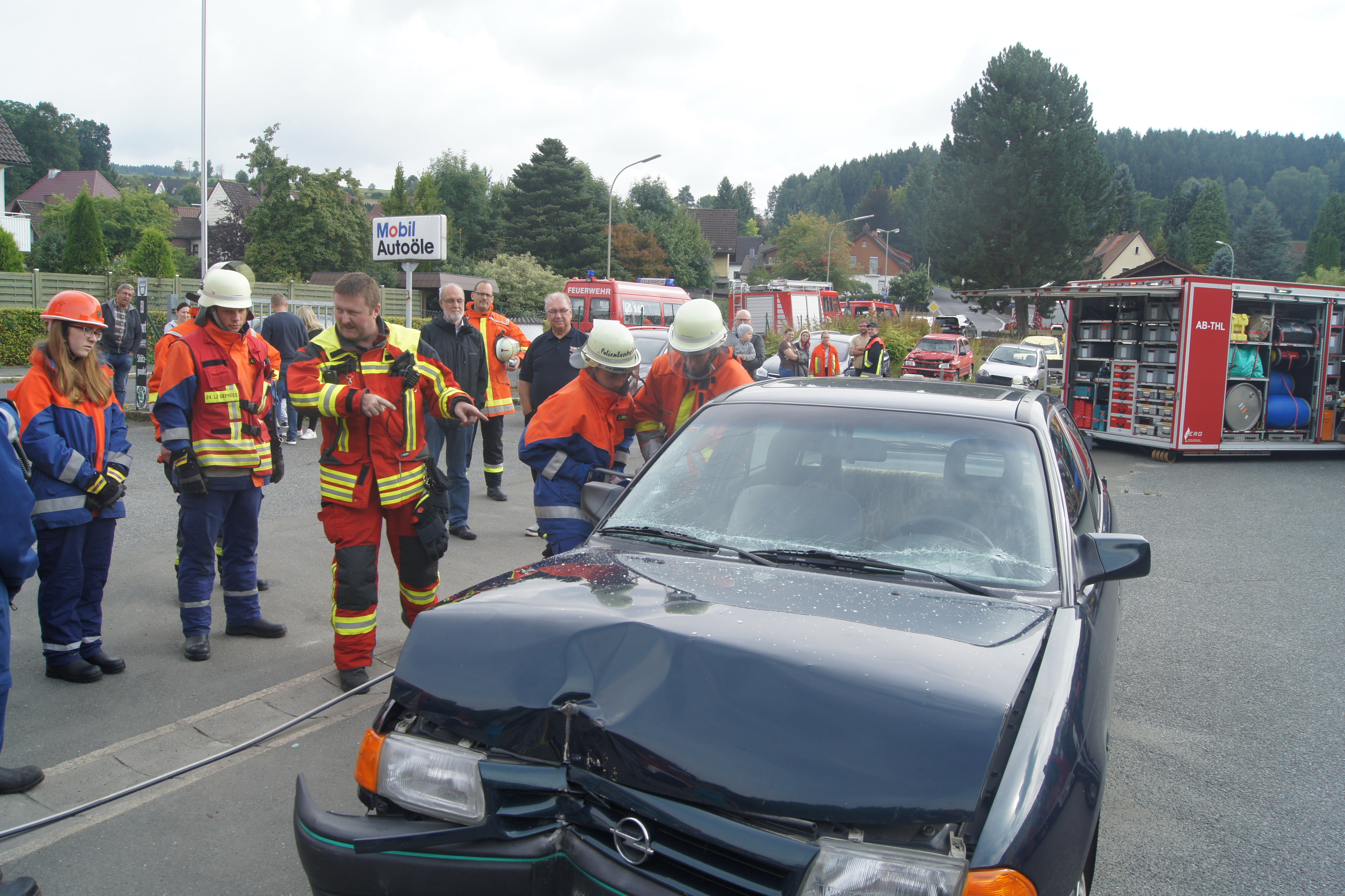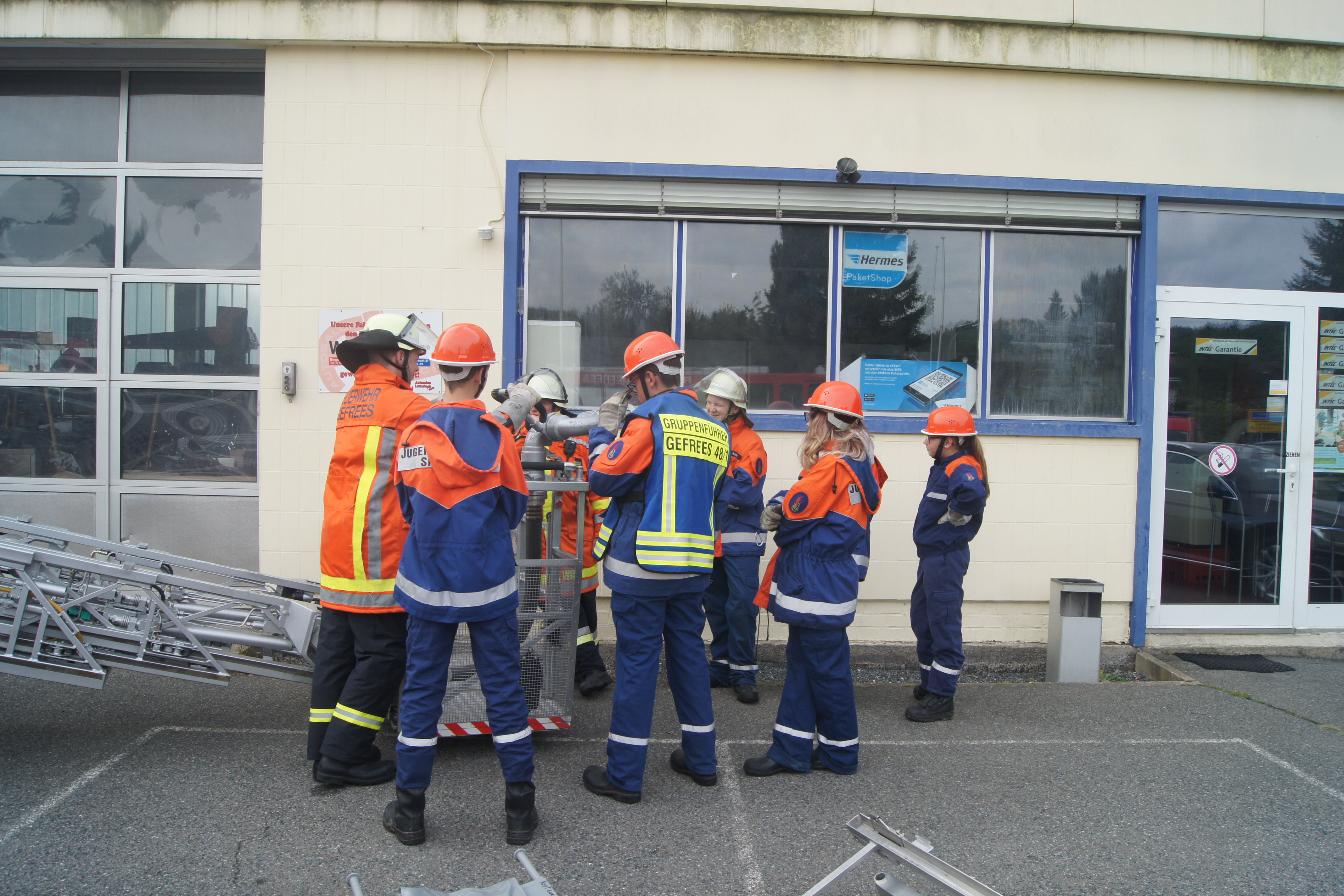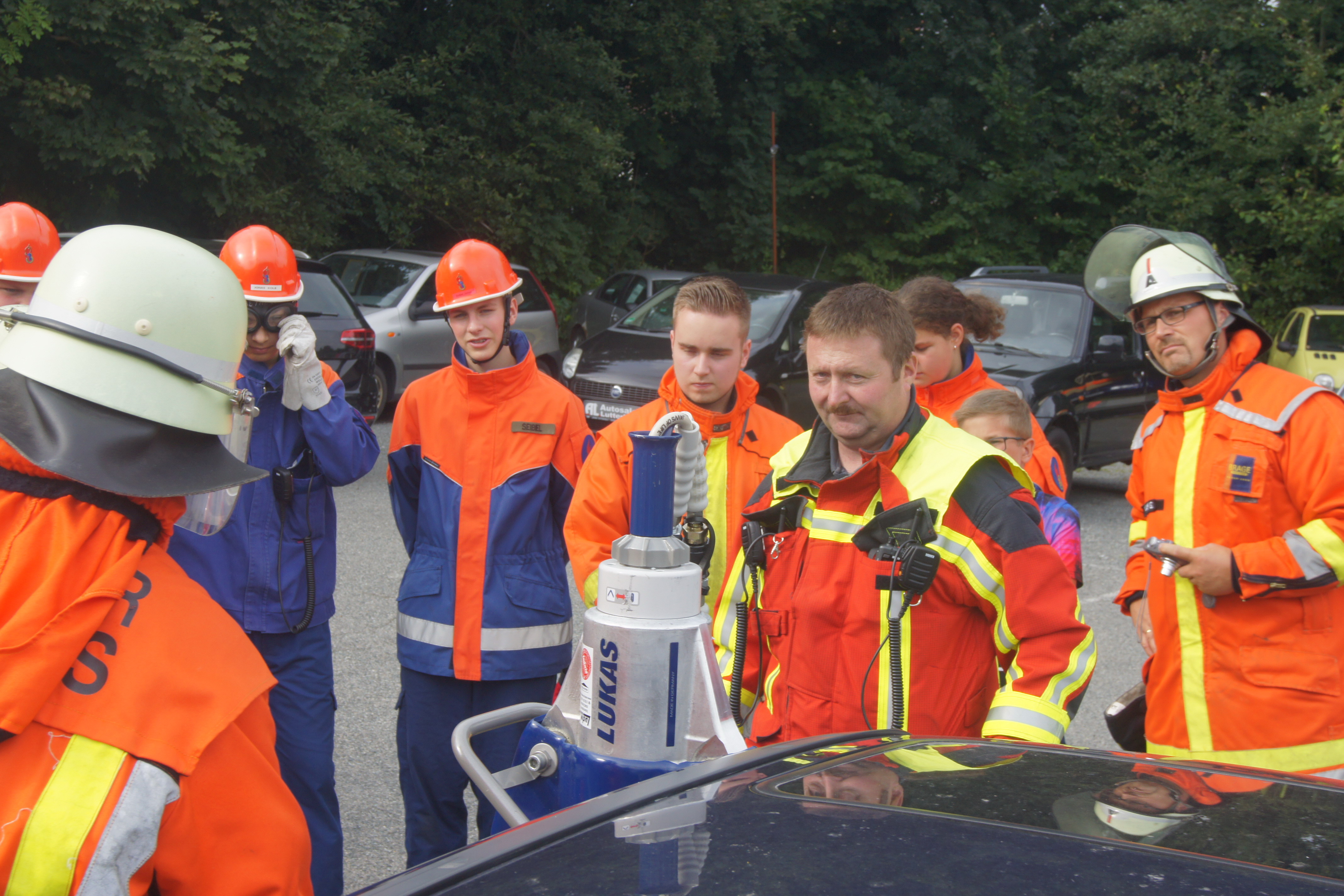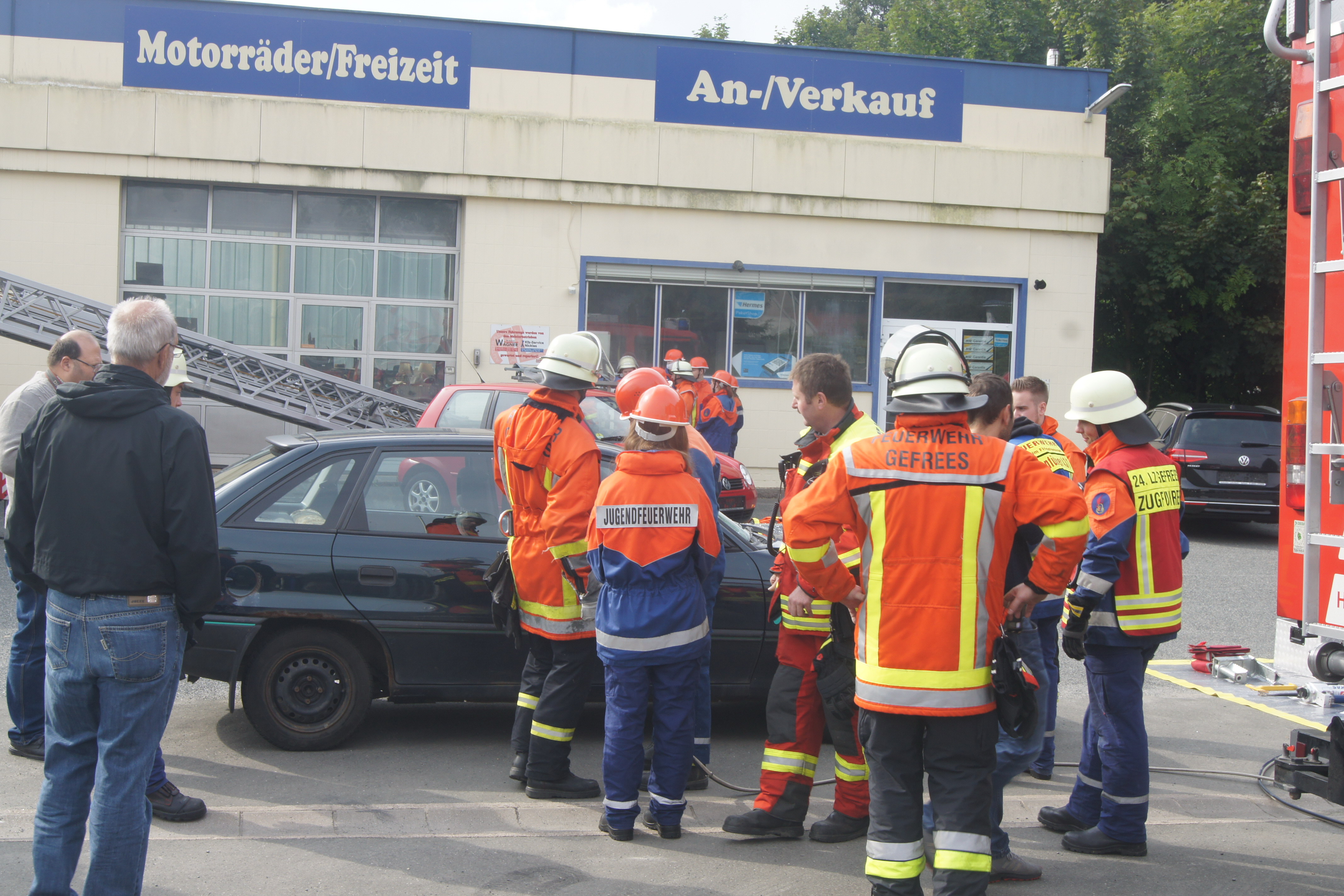 Die ersten „Einsätze“ waren die Erstversorgung einer unter einem großen Stein eingeklemmten Person sowie die Rettung einer Person mittels Drehleiter vom Dach der Stadthalle. Auf dem Gelände einer Autowerkstatt durften die Jugendretter bei einem angenommenen Verkehrsunfall selbst mit Rettungsschere und -spreizer Hand anlegen. Neben einem Fehlalarm wurde dann noch ein angenommener Scheunenbrand bekämpft und früh um 6 Uhr eine Katze von einem Baum geholt. Zu guter Letzt war man dann mit einem Gasaustritt beschäftigt.