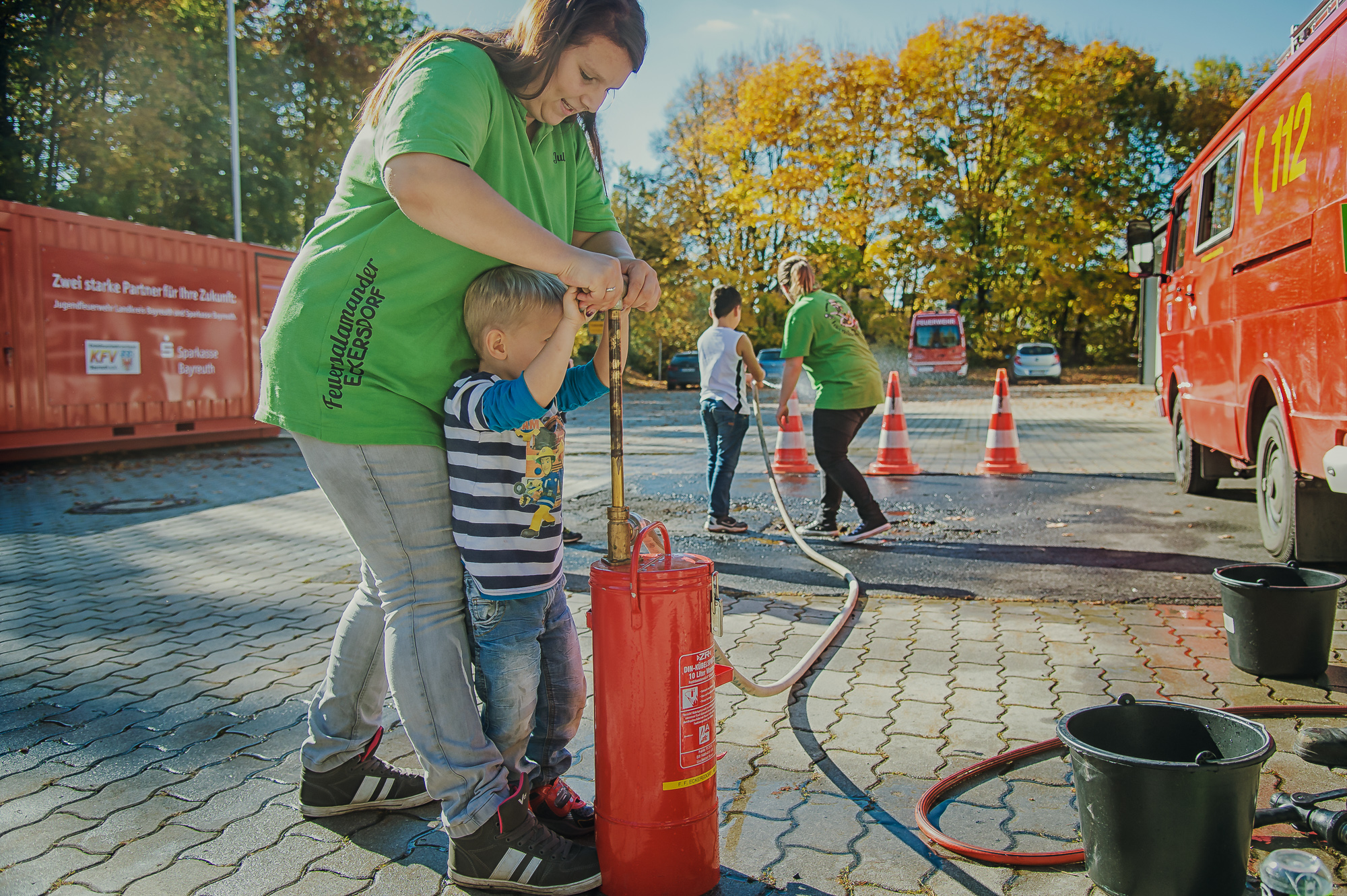 Fröhliches Kinderlachen, begeisterte Teilnehmer und ein hochmotiviertes Betreuerteam: Die Premierenübung der Kinderfeuerwehr Eckersdorf ist rundum geglückt.