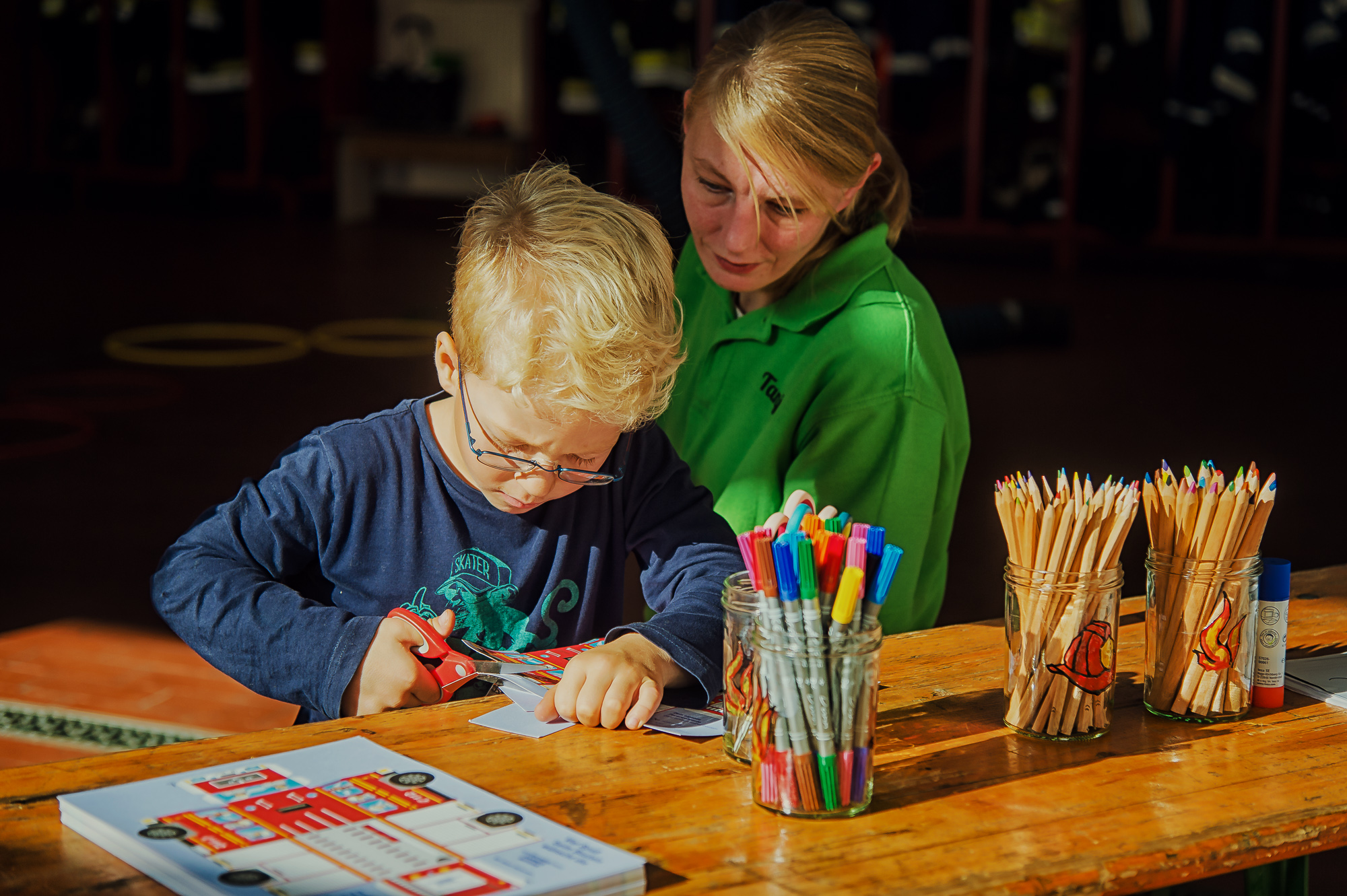 Nach einer umfangreichen Planungsphase und dem offiziellen Gründungsakt im Rahmen des 50jährigen Jugendfeuerwehrjubiläums Ende September war es am Samstag, den 14. Oktober 2017, endlich soweit: Die Kinderfeuerwehr Eckersdorf legte nicht nur einen schwungvollen Start hin, sondern überzeugte auf ganzer Linie. Die drei verantwortlichen Betreuerinnen, Melanie Klitsch, Tanja Hofmann und Julia Hübner hatten dabei mit Unterstützung der aktiven Wehr und des Vereins sämtliche Register gezogen, um den Kindern einen ebenso schönen wie umfangreichen Einblick in die Feuerwehr zu bieten. So war von einer Vorstellungsrunde über viele Bastel- und Mitmachstationen sowie allerhand Selbstgebackenem und einem gemeinsamen Abschlußspiel an alles gedacht worden, um den Nachwuchs zu faszinieren.