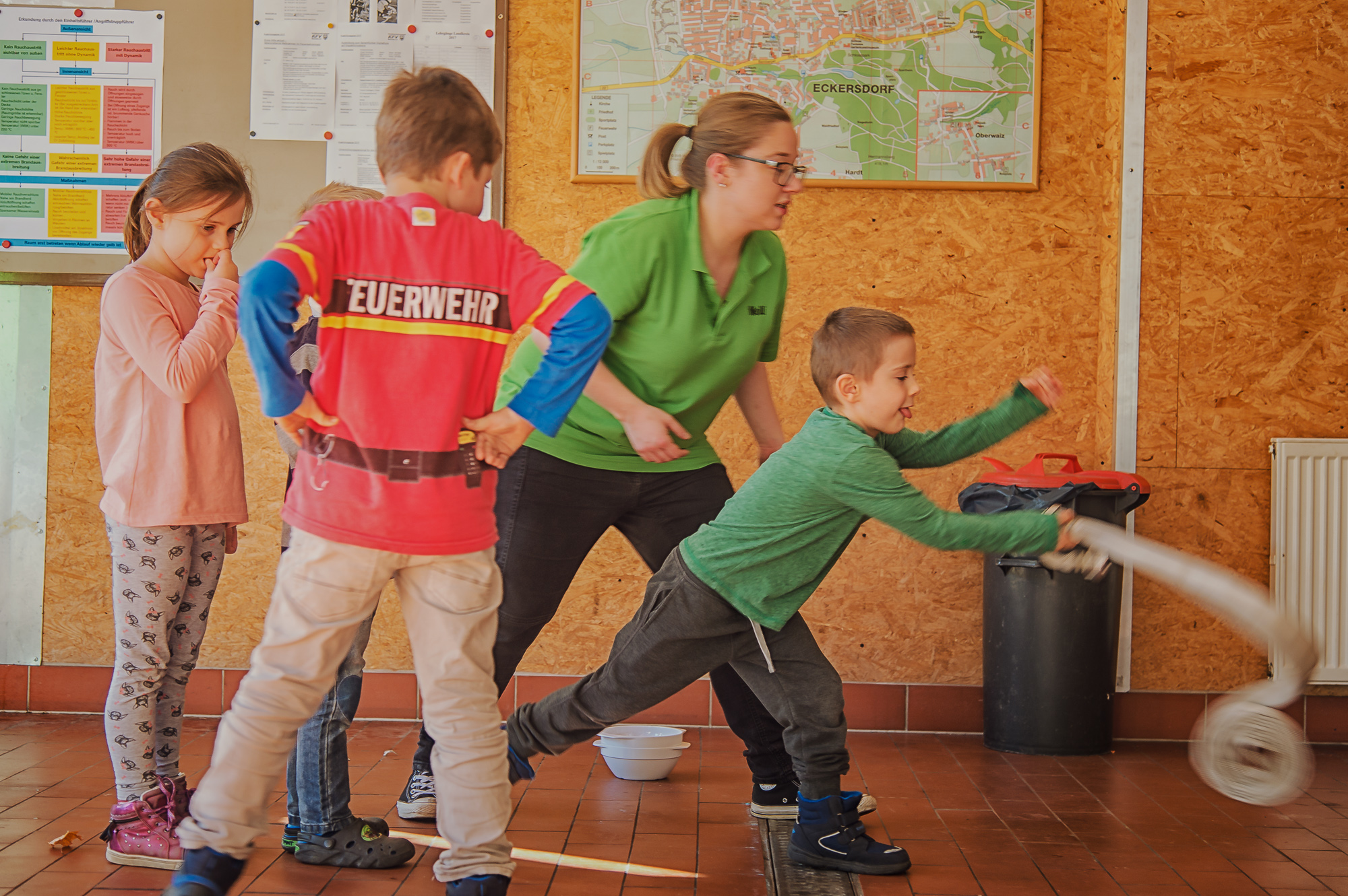 Fröhliches Kinderlachen, begeisterte Teilnehmer und ein hochmotiviertes Betreuerteam: Die Premierenübung der Kinderfeuerwehr Eckersdorf ist rundum geglückt.